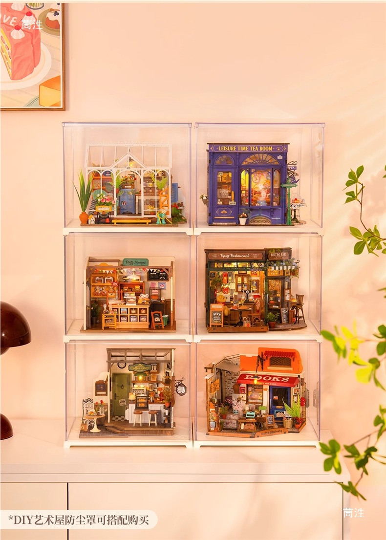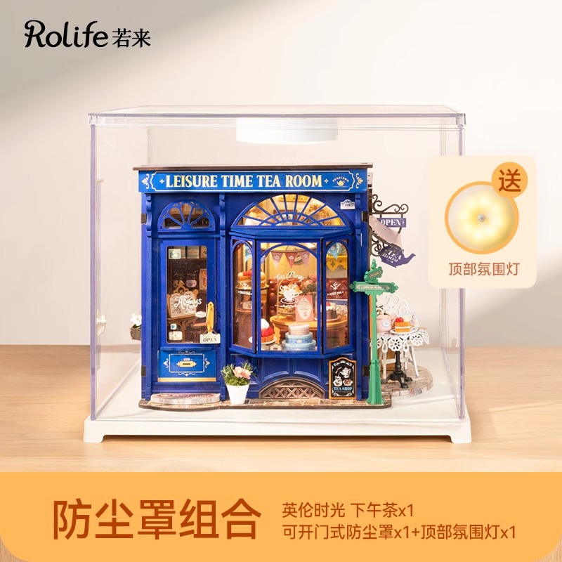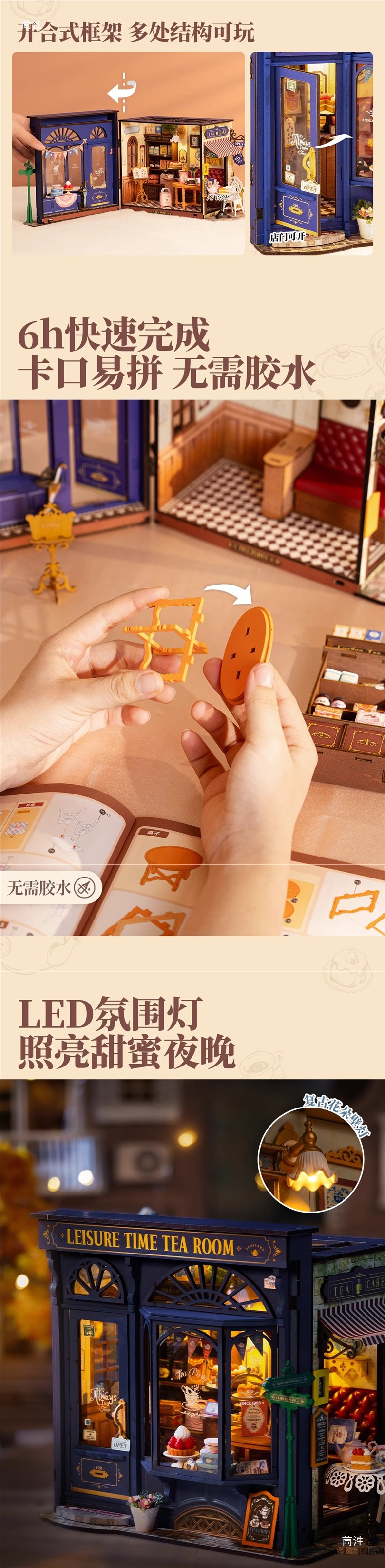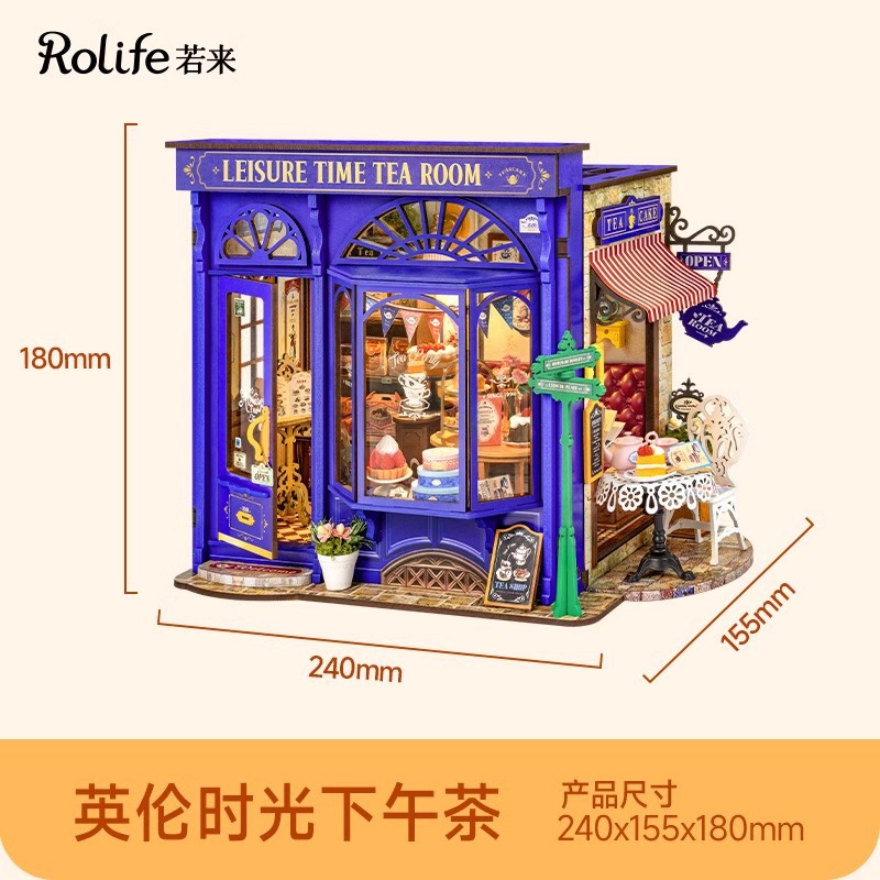 Ruolai 영국 시간 애프터눈 티 DIY 수제 오두막 나무 작은 집 모델 미니 장면 빌딩 블록 여성스토어 가기