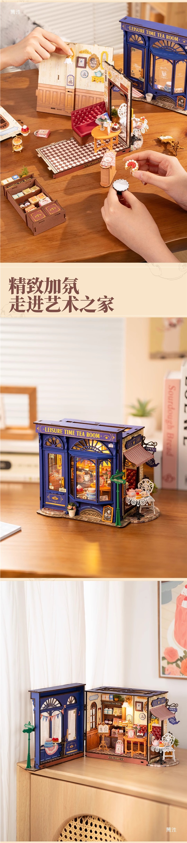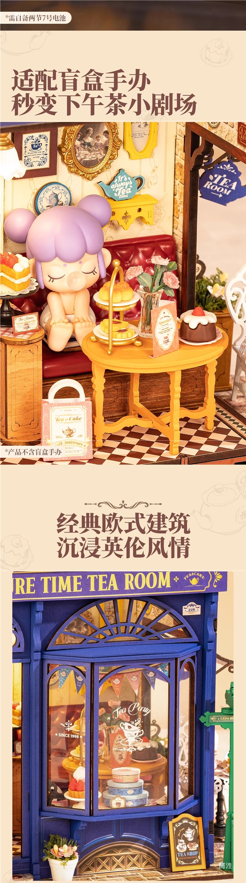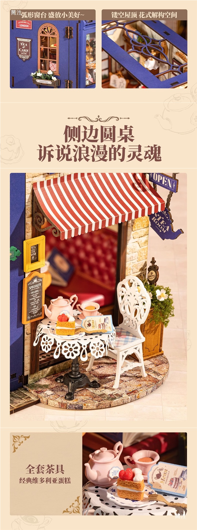 Ruolai 영국 시간 애프터눈 티 DIY 수제 오두막 나무 작은 집 모델 미니 장면 빌딩 블록 여성