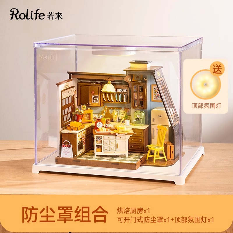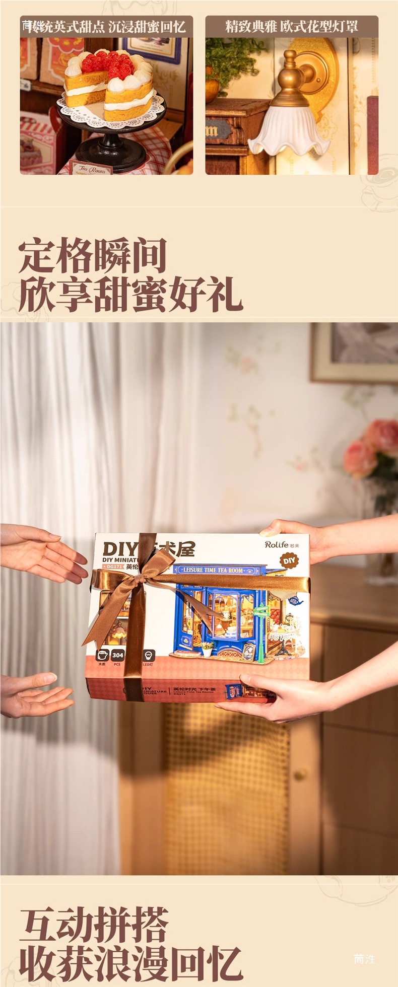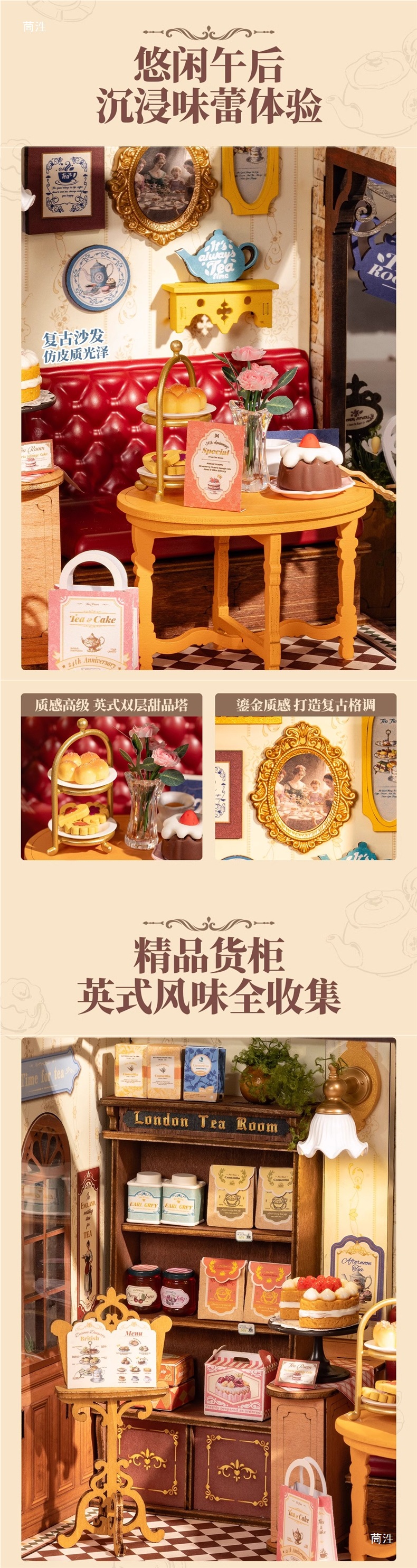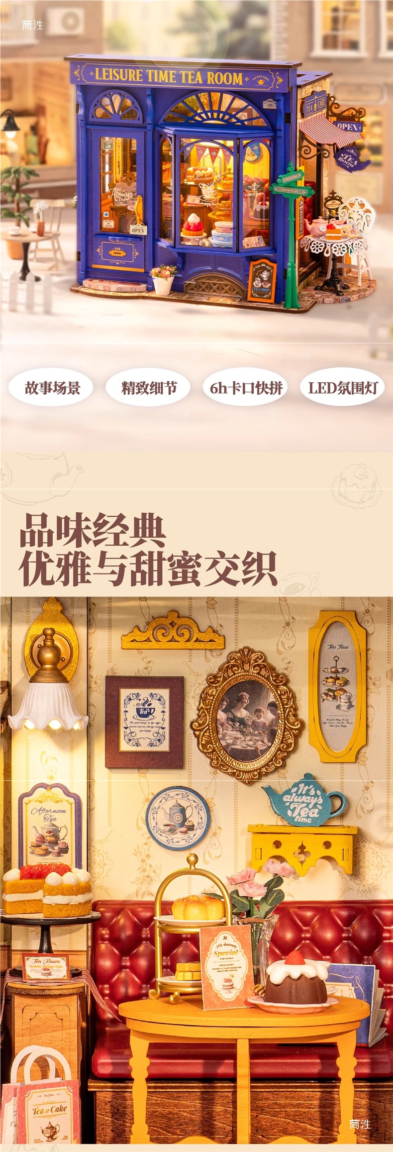 Ruolai 영국 시간 애프터눈 티 DIY 수제 오두막 나무 작은 집 모델 미니 장면 빌딩 블록 여성