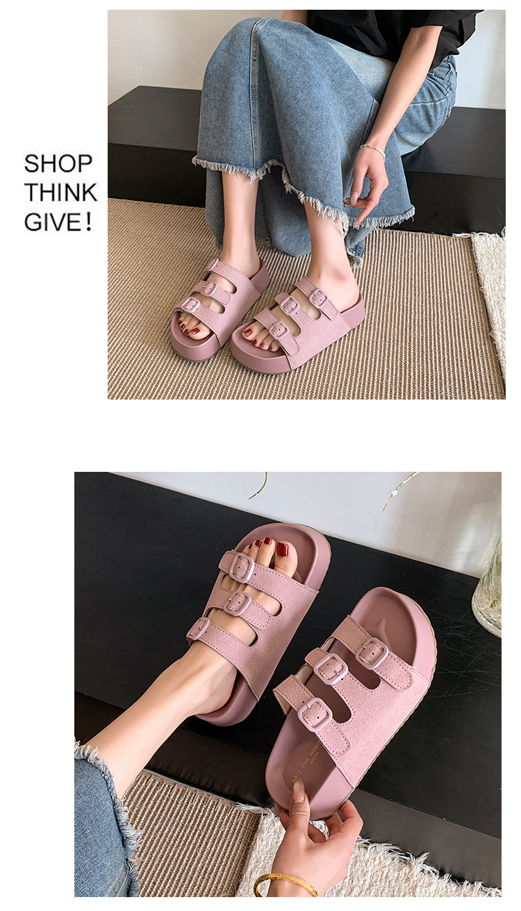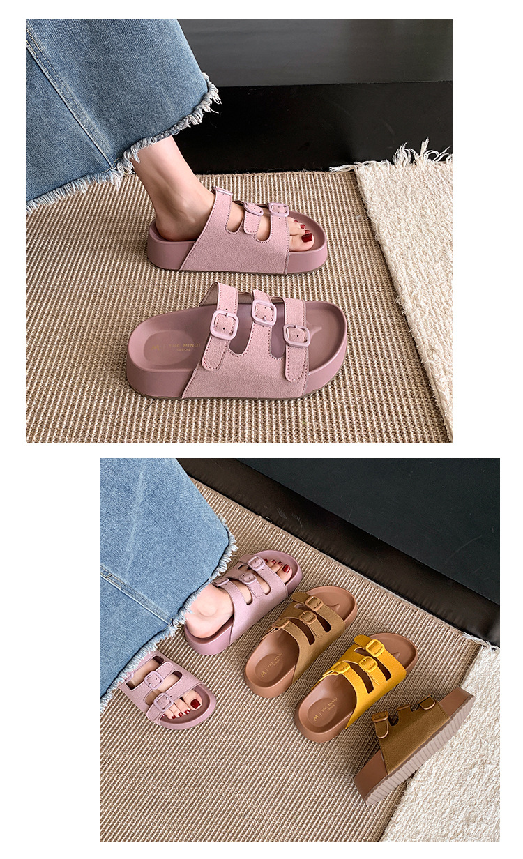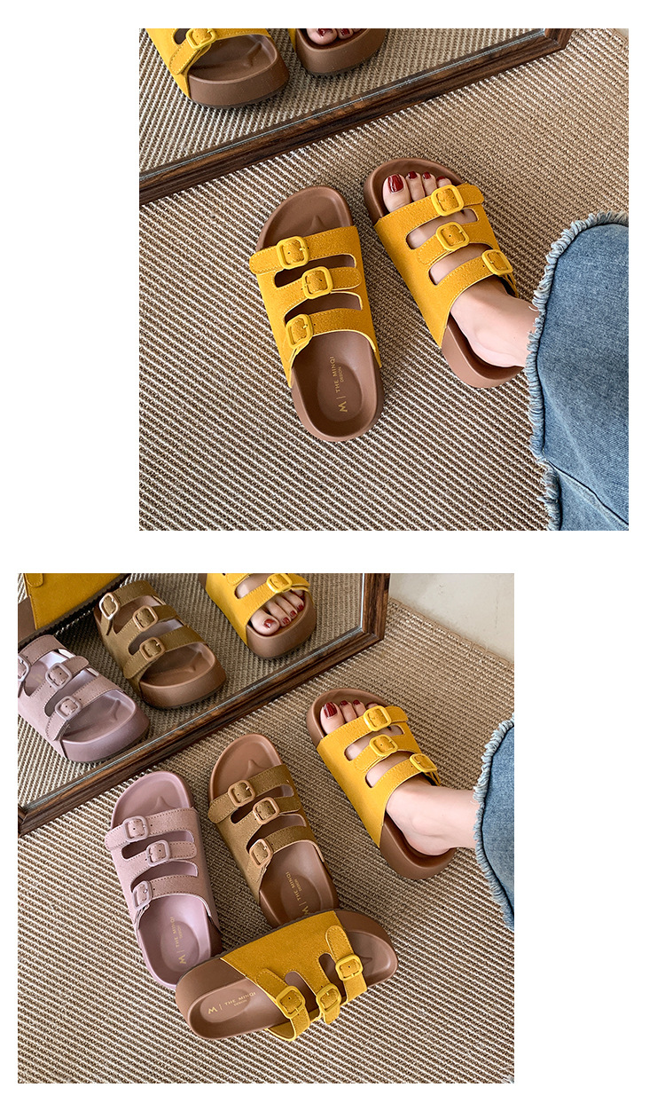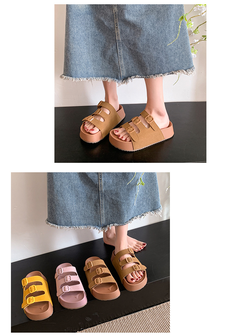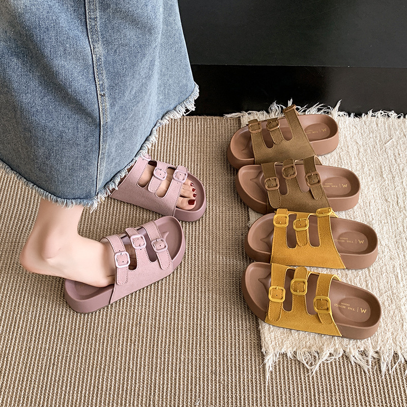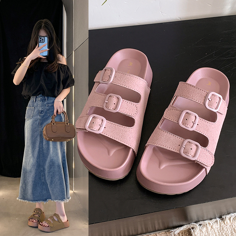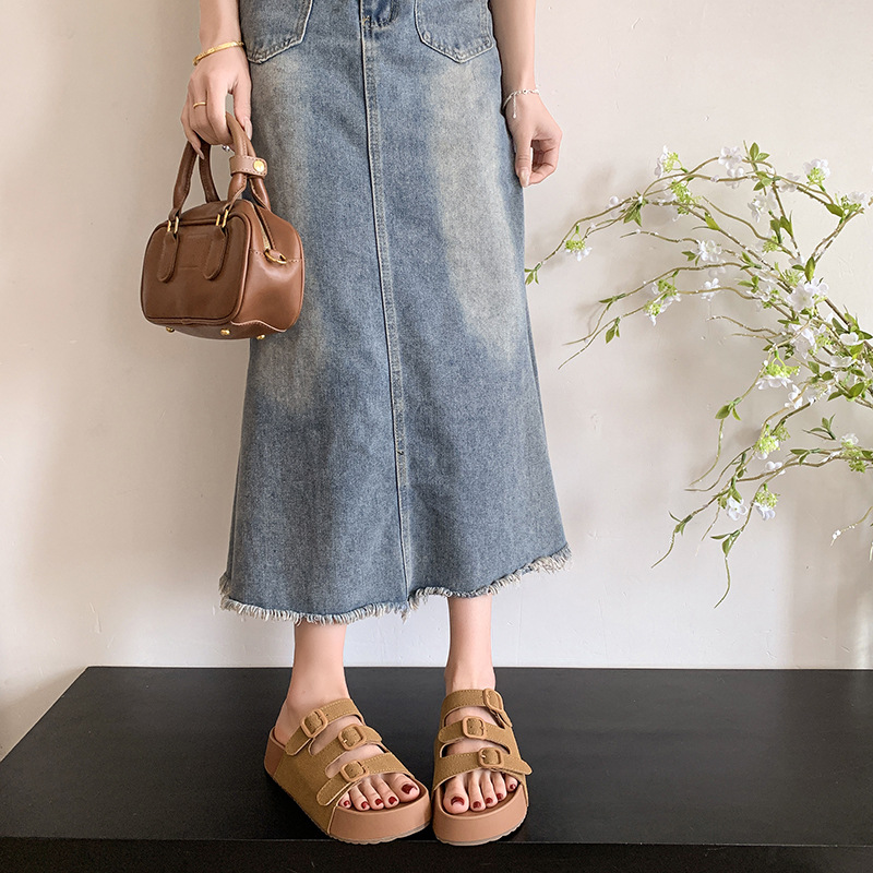 레트로 슈퍼 인기 슬리퍼 여성 여름 의상 2025 봄 새 스타일 샌들 두꺼운 솔 증가 해변 버켄 스톡 샌들스토어 가기