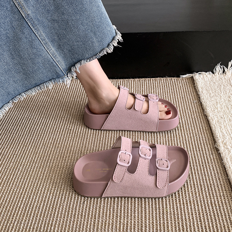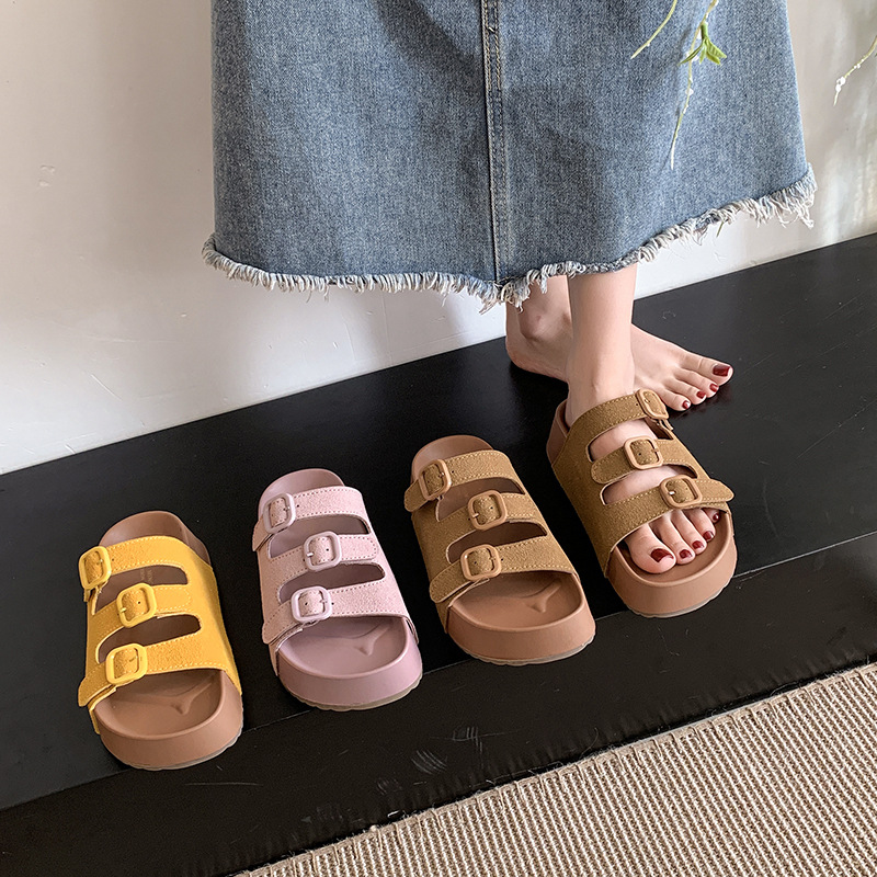 레트로 슈퍼 인기 슬리퍼 여성 여름 의상 2025 봄 새 스타일 샌들 두꺼운 솔 증가 해변 버켄 스톡 샌들