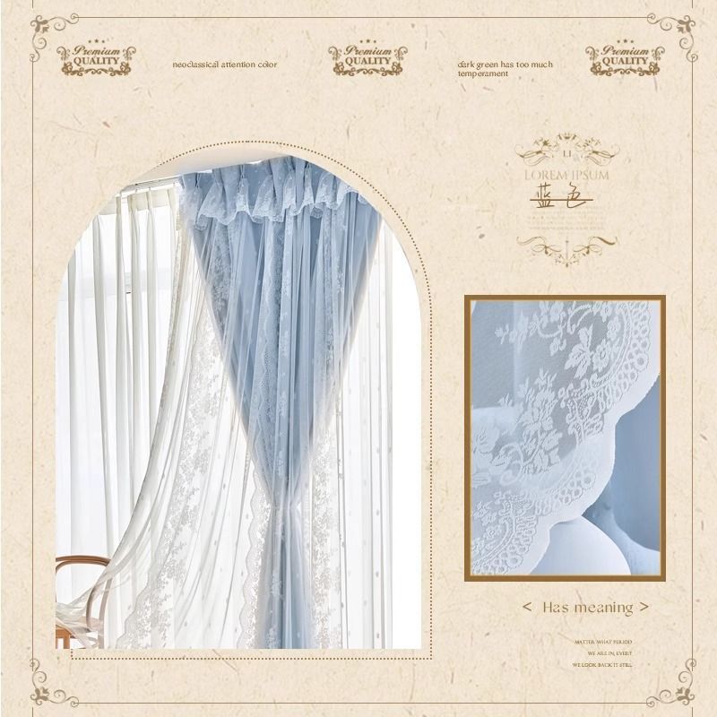 침실 커튼 음영 크림 스타일 패브릭 원사 통합 밀크 티 컬러 소녀 베이 창 바닥부터 천장까지 유럽 스타일 작은 신선한 더블 레이어 창스토어 가기
