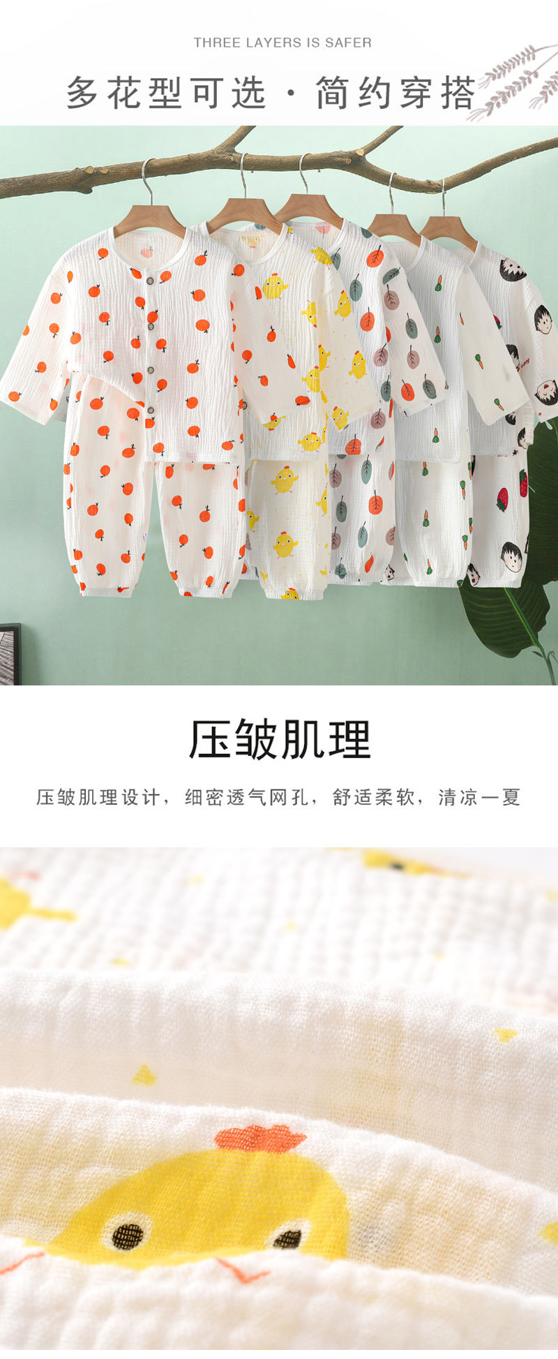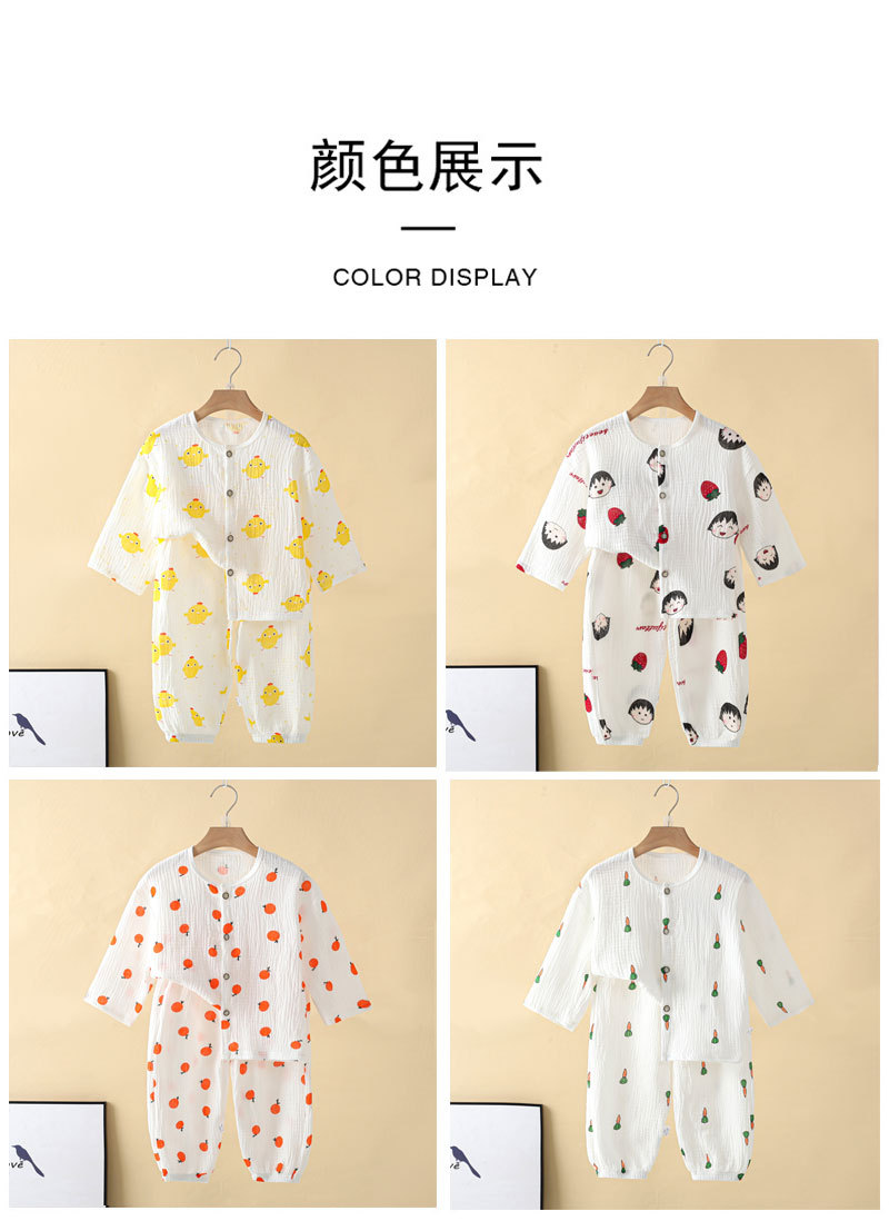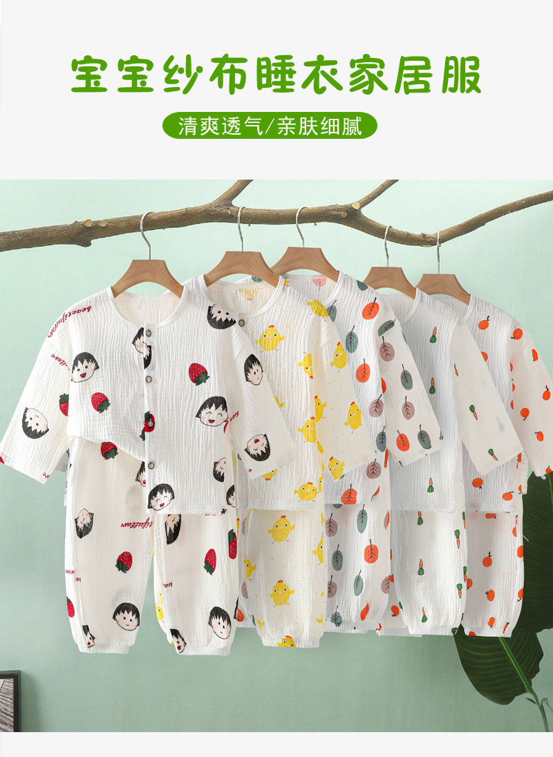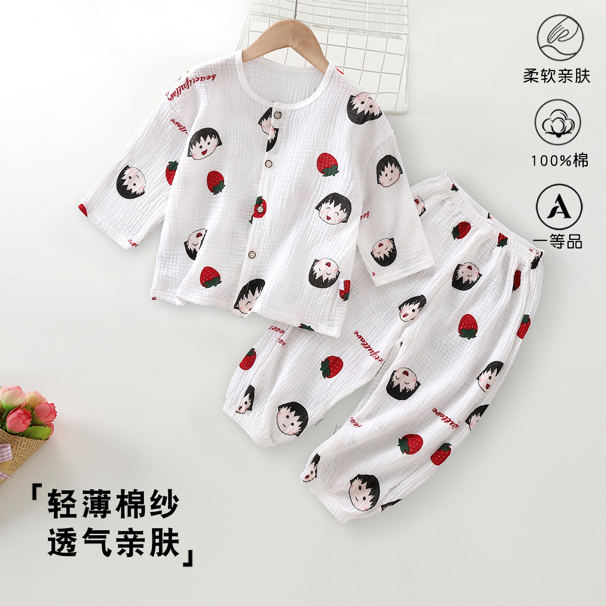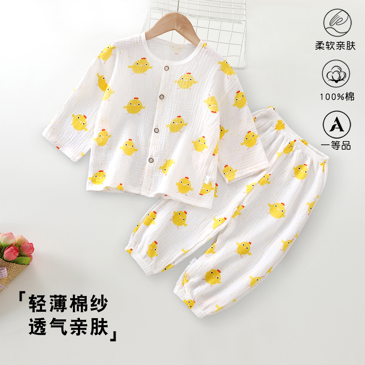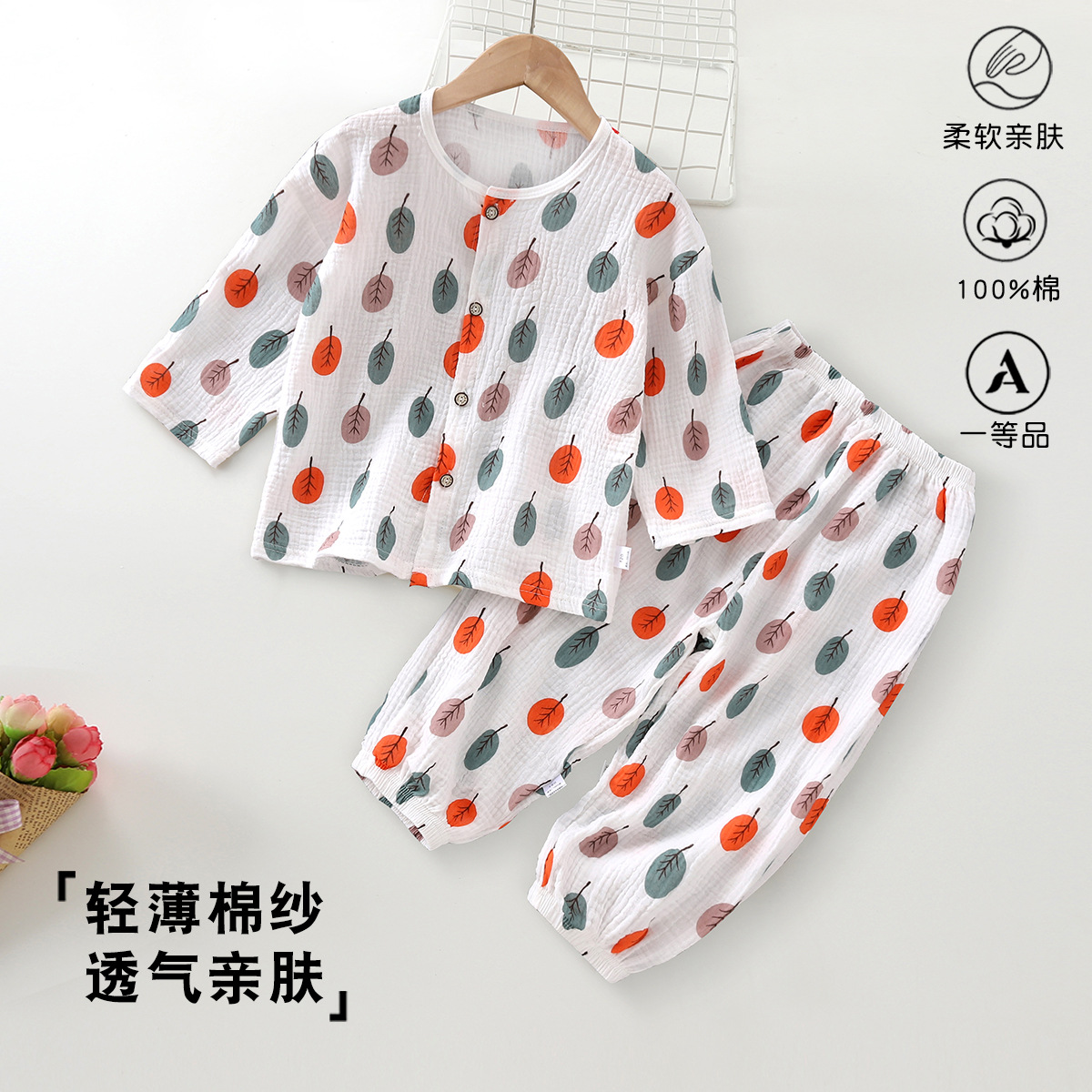 남학생과 여학생 세트 여름 잠옷 아기 에어컨 옷 이중층 거즈 순면 얇은 어린이 순면 홈 옷스토어 가기