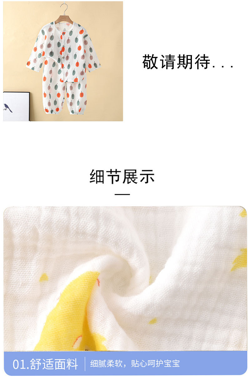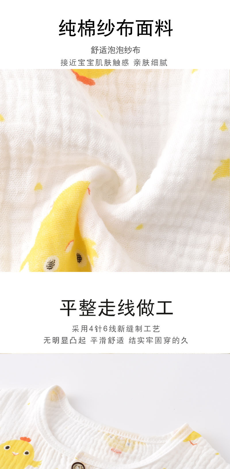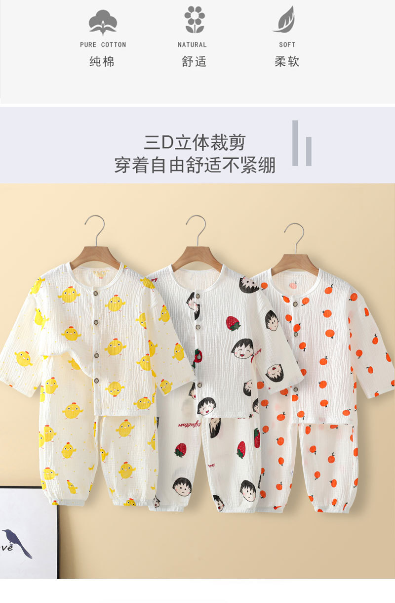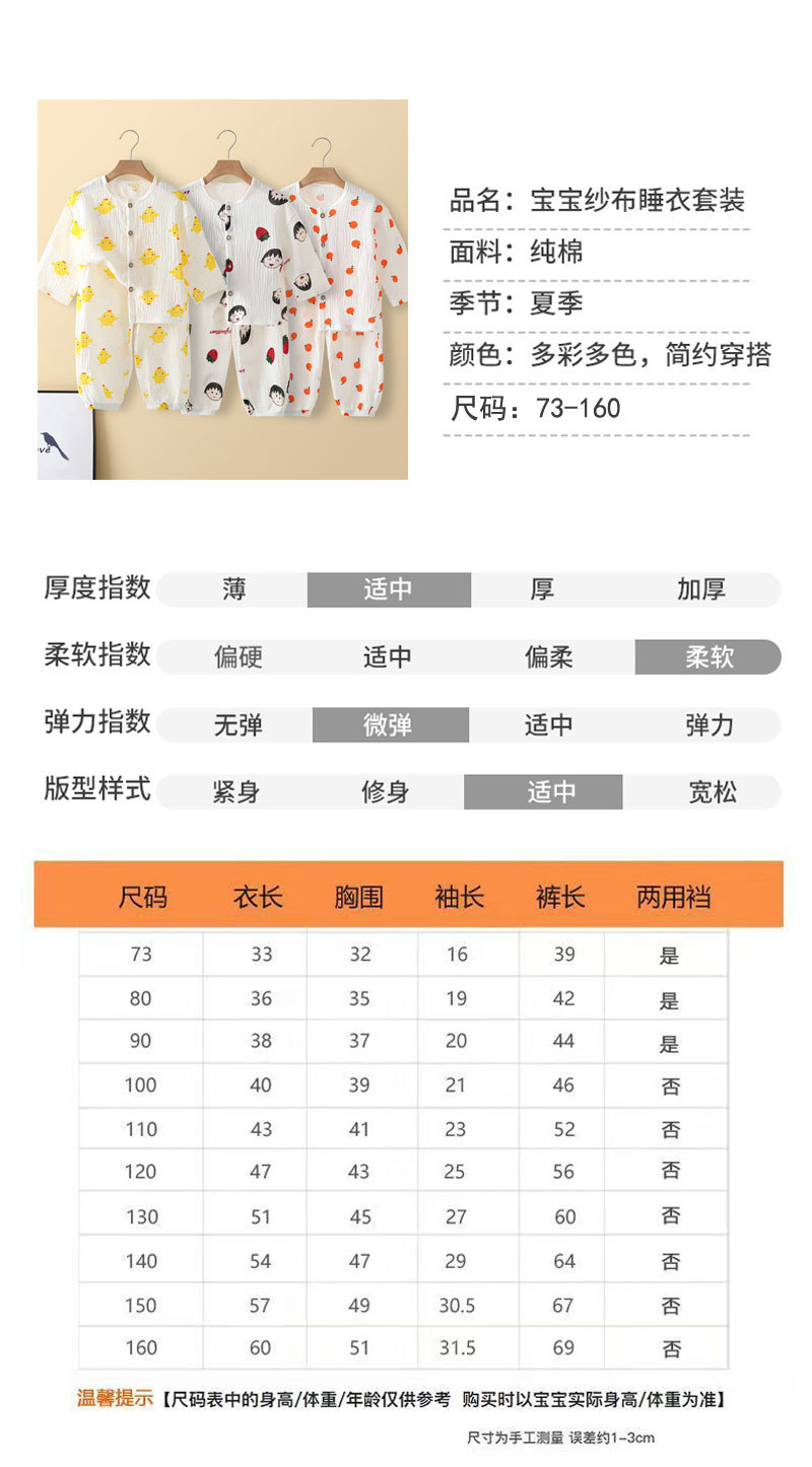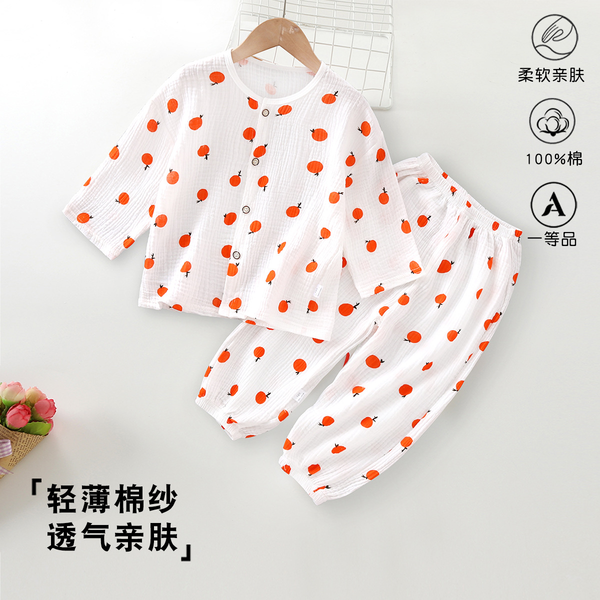 남학생과 여학생 세트 여름 잠옷 아기 에어컨 옷 이중층 거즈 순면 얇은 어린이 순면 홈 옷스토어 가기