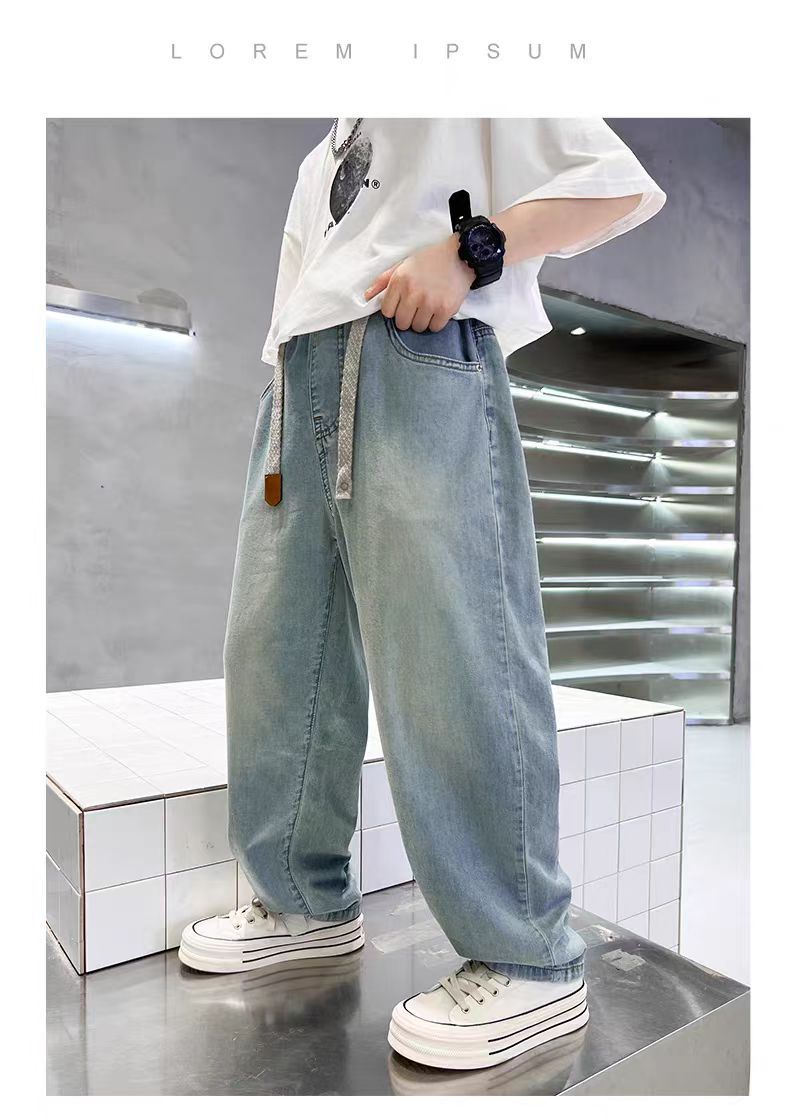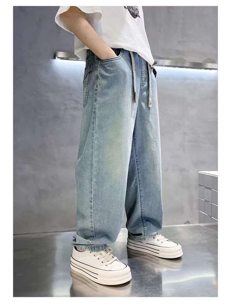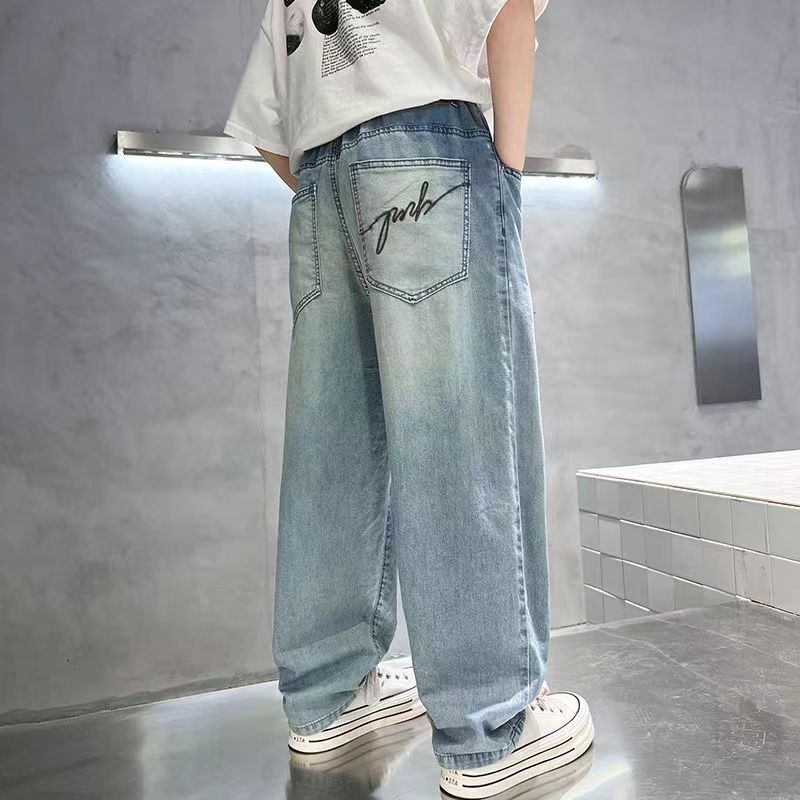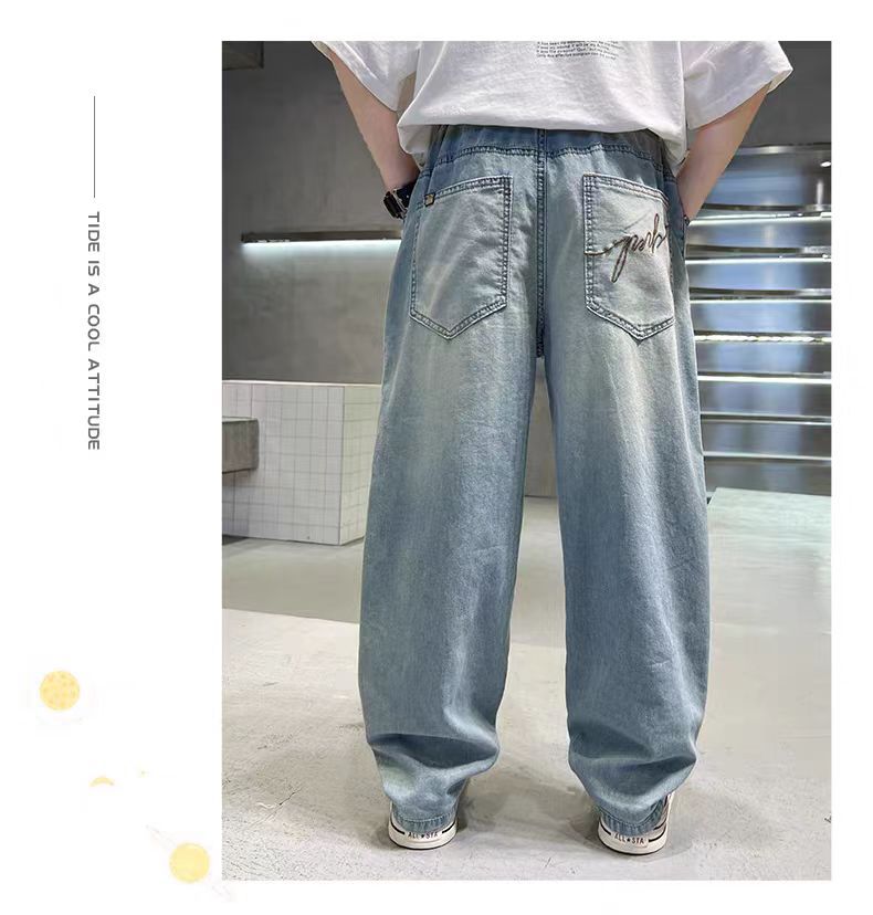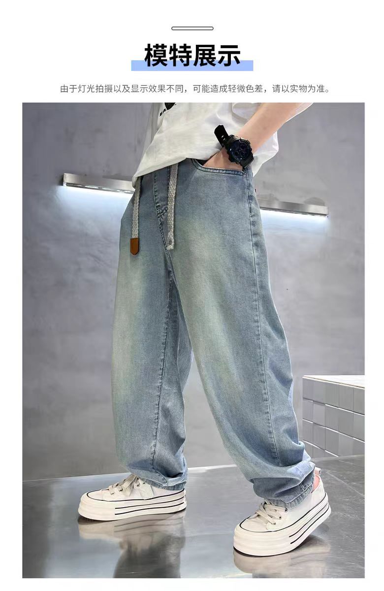 소년 텐셀 청바지 부드러운 여름 2025 새로운 어린이 모기 방지 바지 중대형 어린이 유행 여름 바지 가벼운 느낌스토어 가기