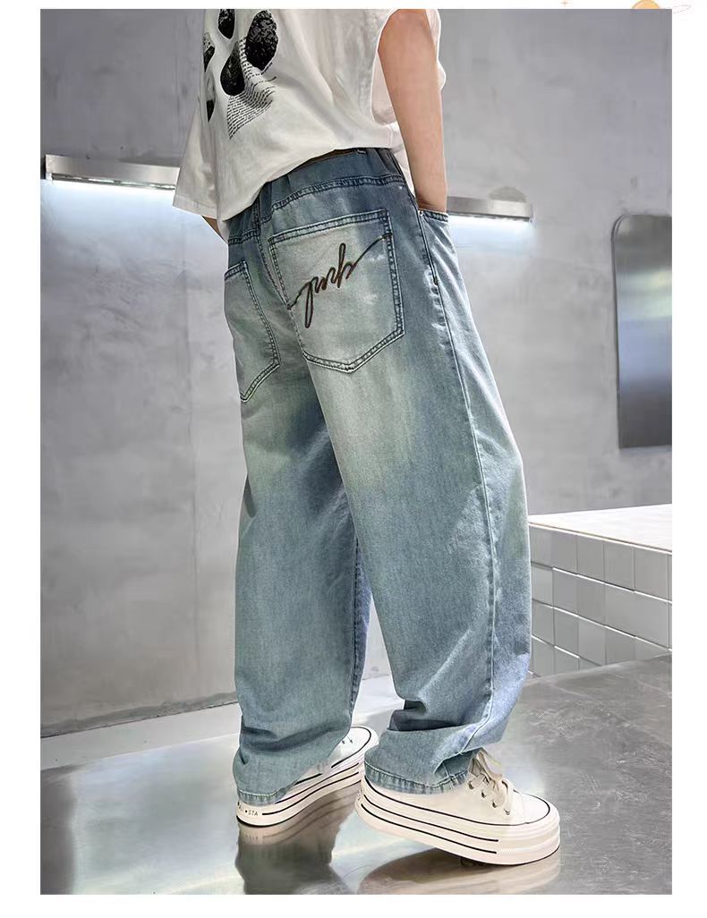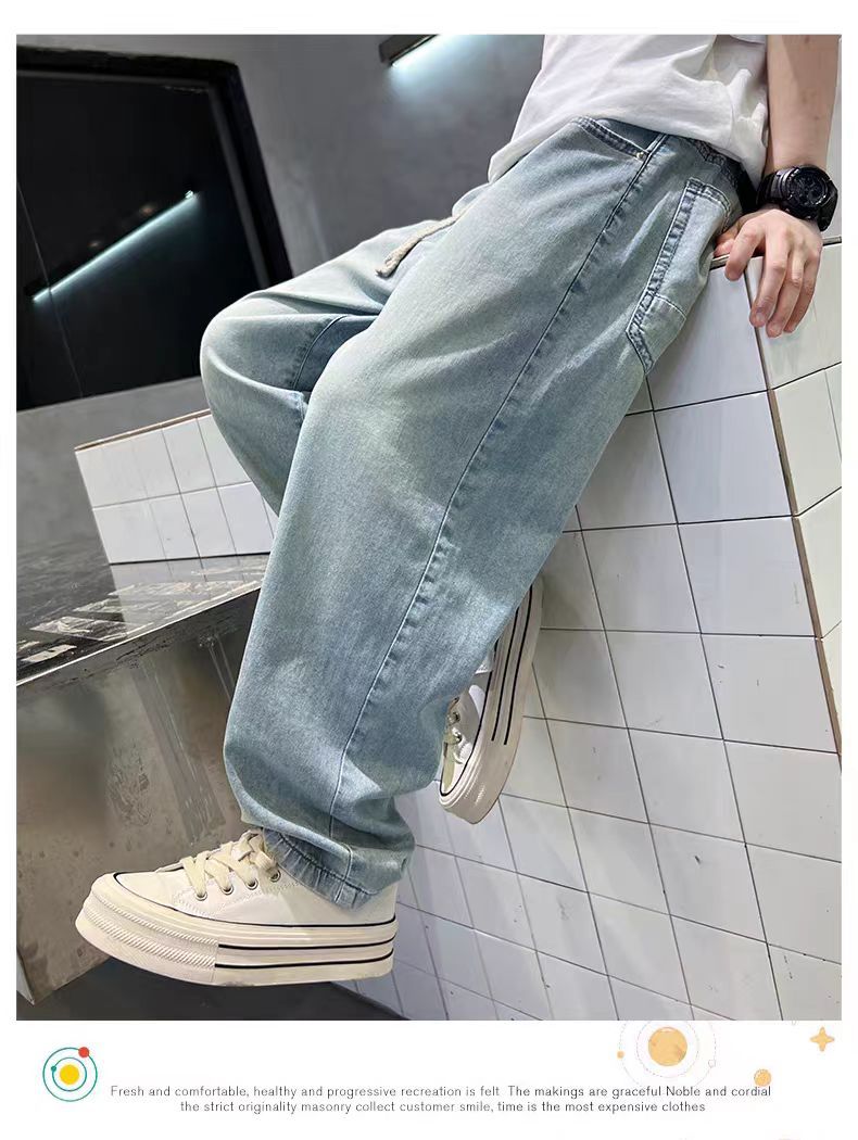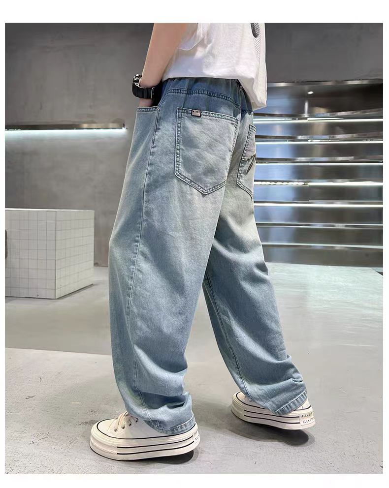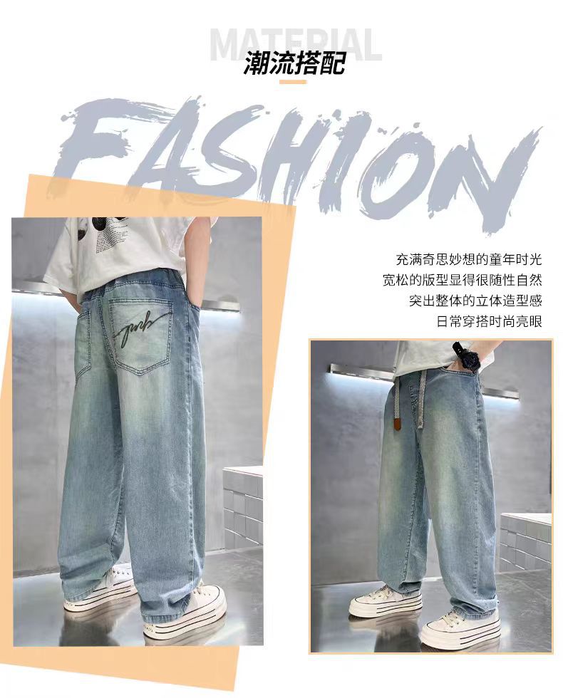 소년 텐셀 청바지 부드러운 여름 2025 새로운 어린이 모기 방지 바지 중대형 어린이 유행 여름 바지 가벼운 느낌스토어 가기