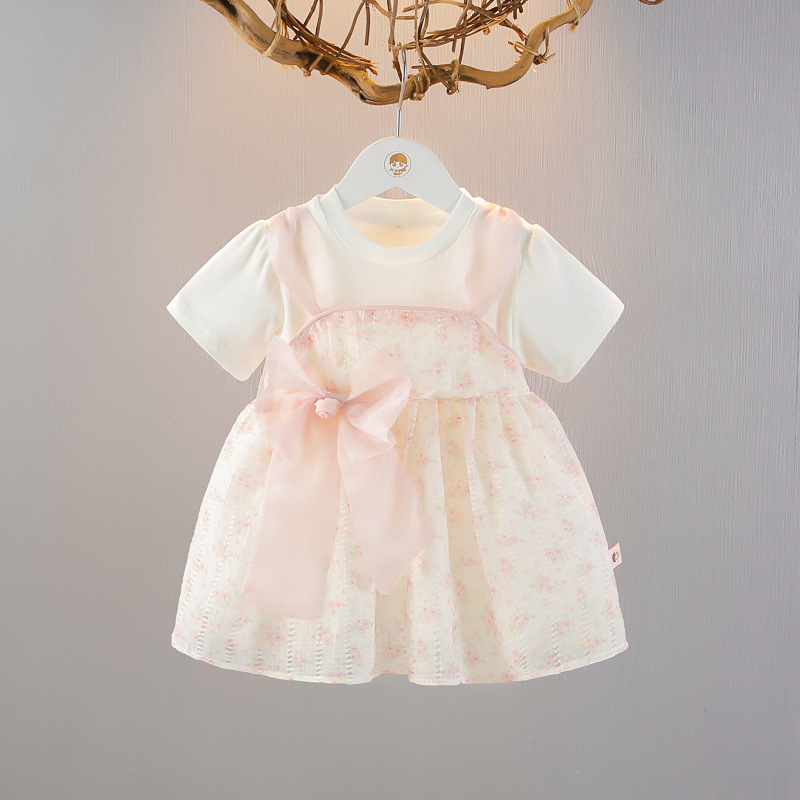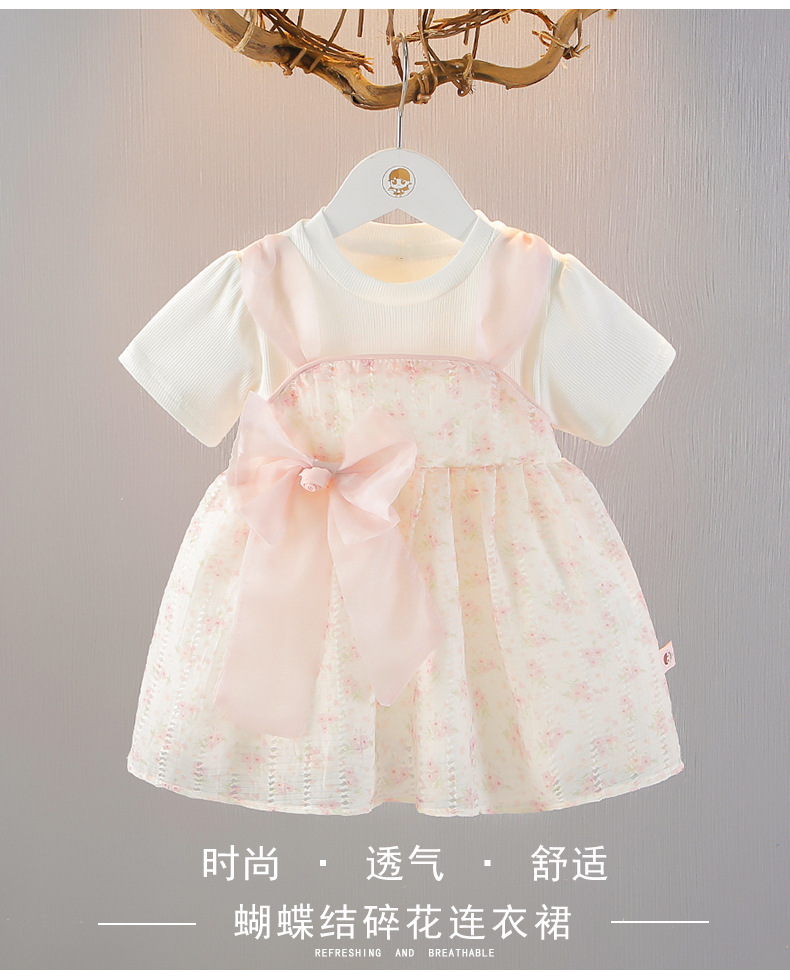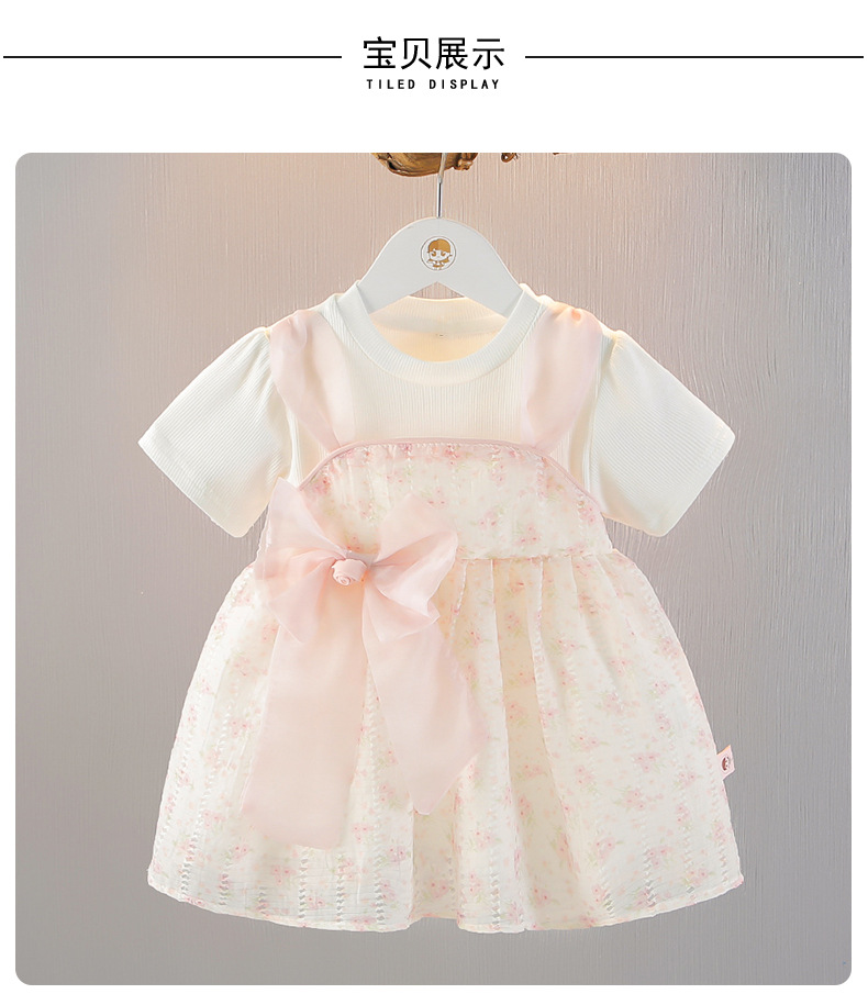 소녀 원피스 2025 년 여름 새로운 스타일 어린이 공주 원피스 작은 소녀 아기 소녀 반팔 달콤한 베일 원피스스토어 가기
