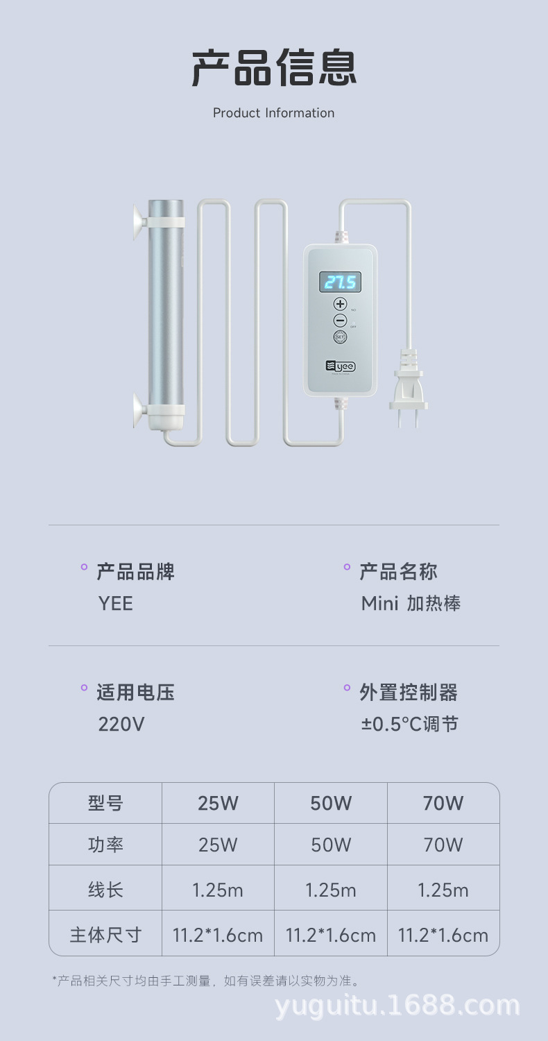 물고기 탱크 가열 막대 자동 항온 미니 디지털 디스플레이 거북이 가열 막대 낮은 수위가 있는 작은 수족관스토어 가기