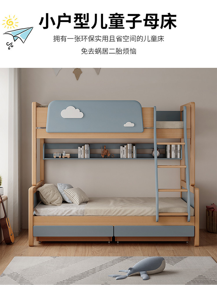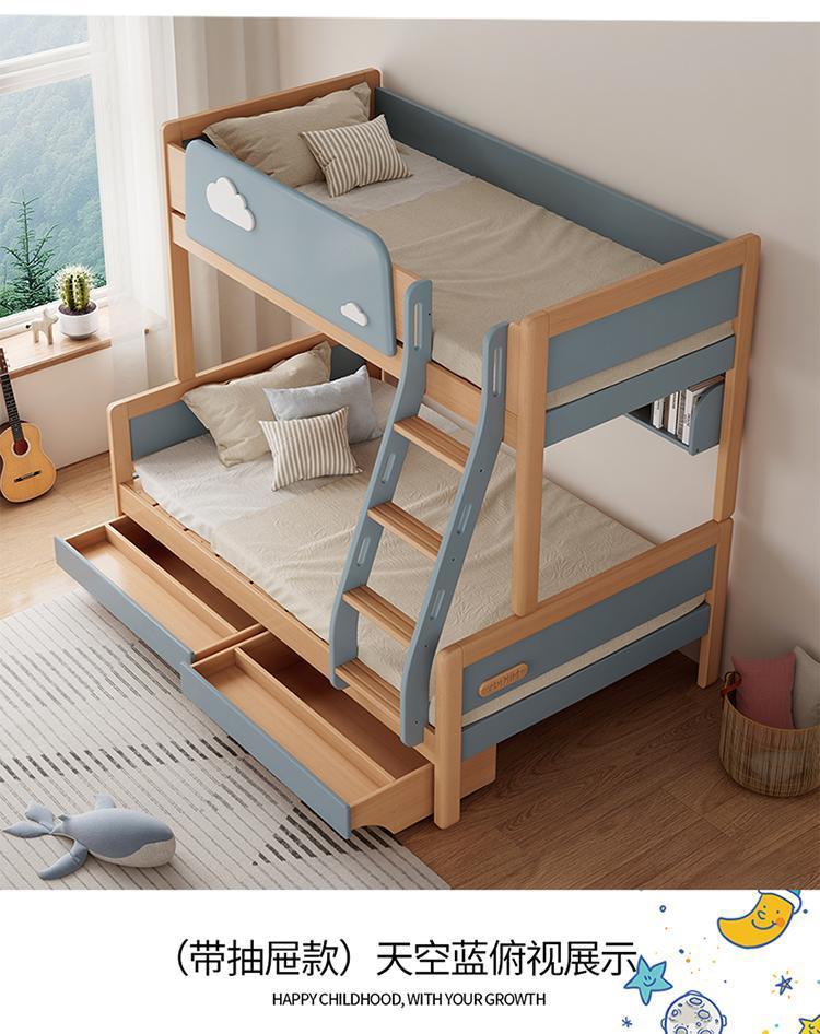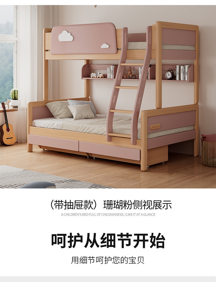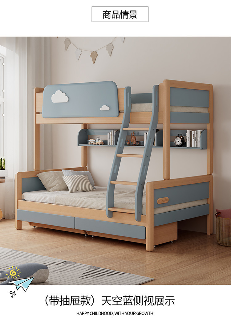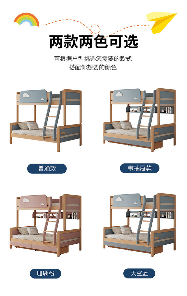 원목 어린이 침대 이층 침대, 현대적인 심플한 블루 핑크 소년 소녀용 높낮이 침대, 소형 침대스토어 가기