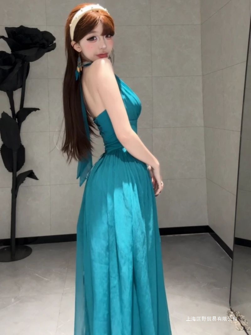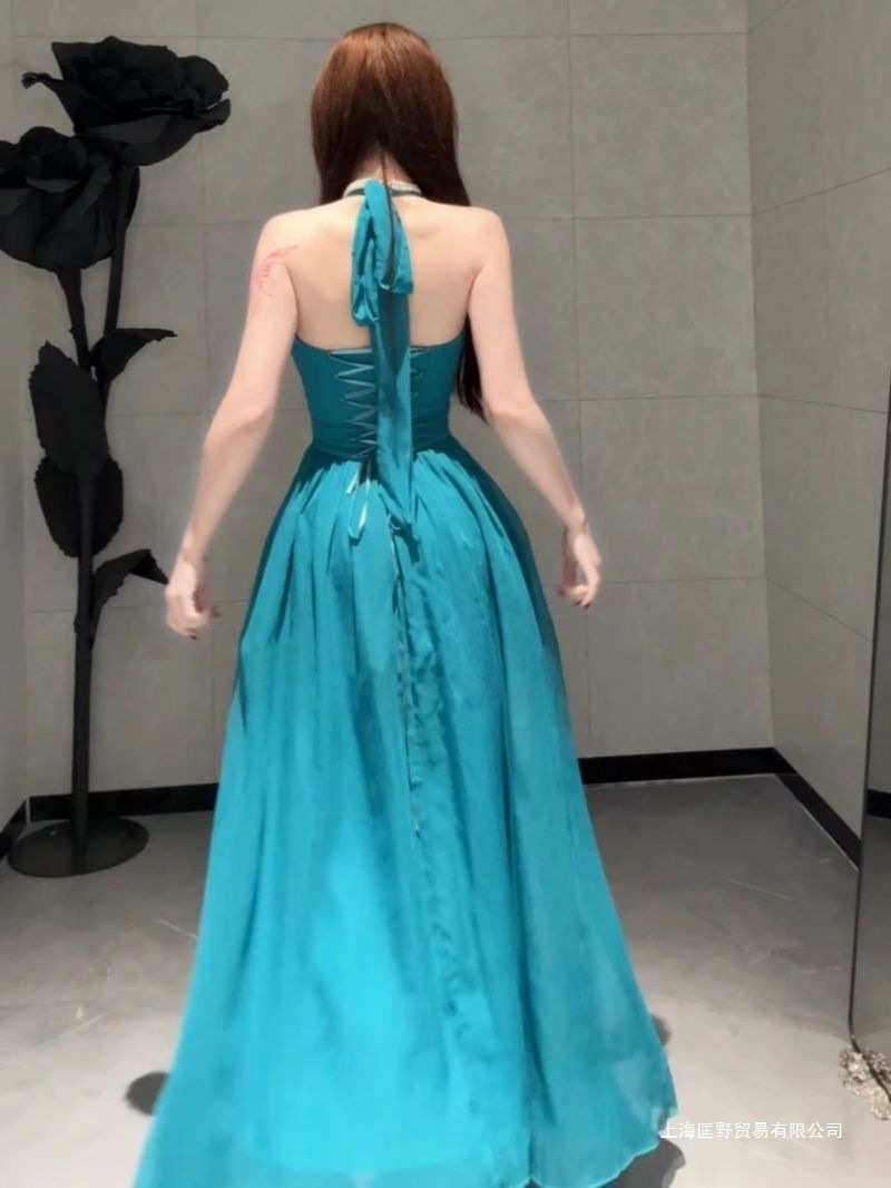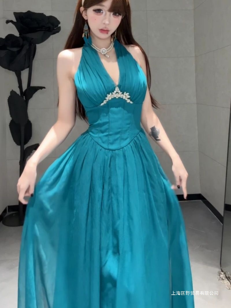프랑스 스타일 샤넬 스타일 유행 다이아몬드 박힌 높은 허리 슬림 민소매 원피스 여성의 2025 여름 새로운 순수 스타일 긴 원피스스토어 가기