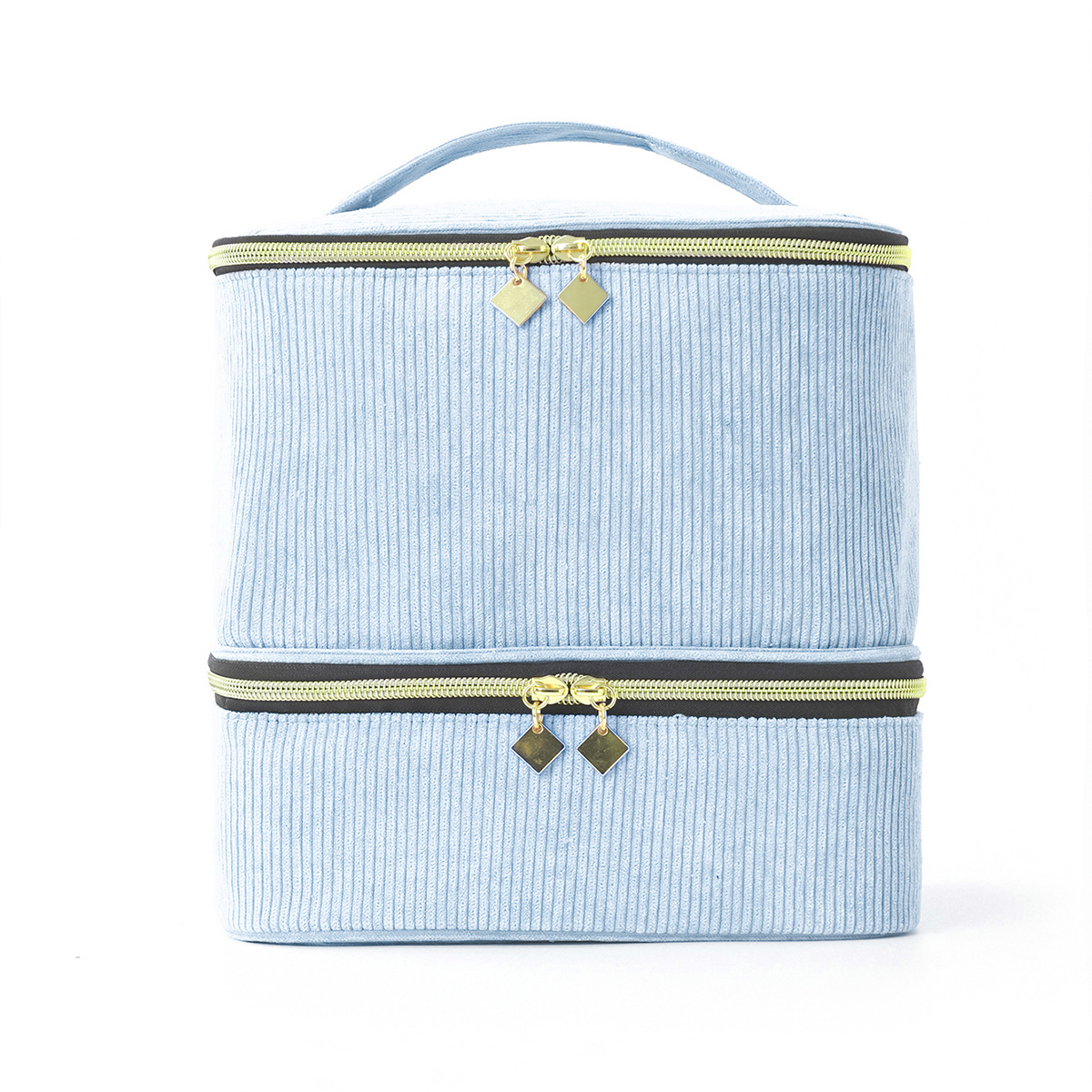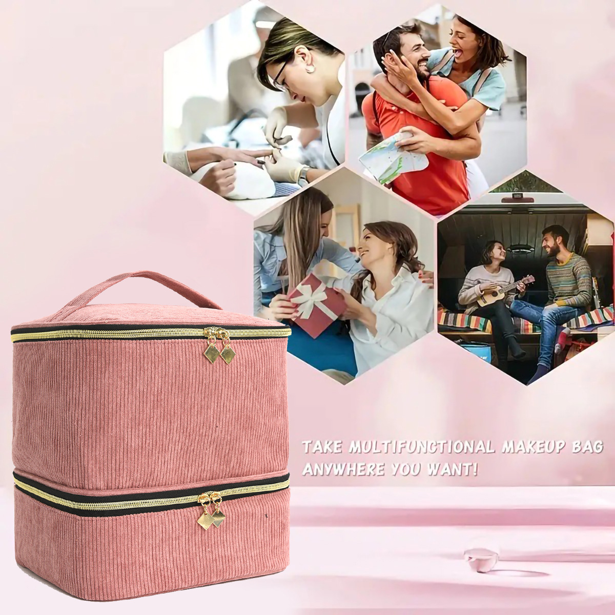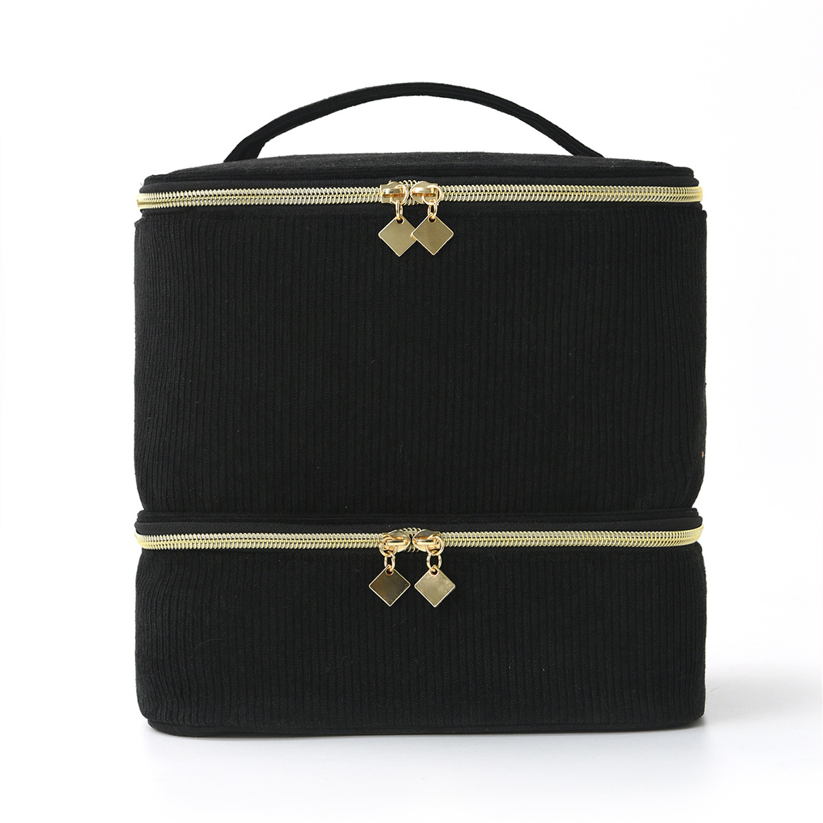 Feihong 크로스-보더 더블 레이어 화장품 가방 높은 가치 매니큐어 저장 가방 대용량 코듀로이 휴대용 화장품 가방스토어 가기