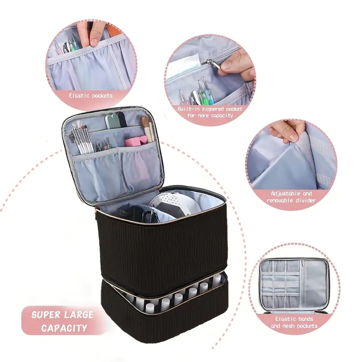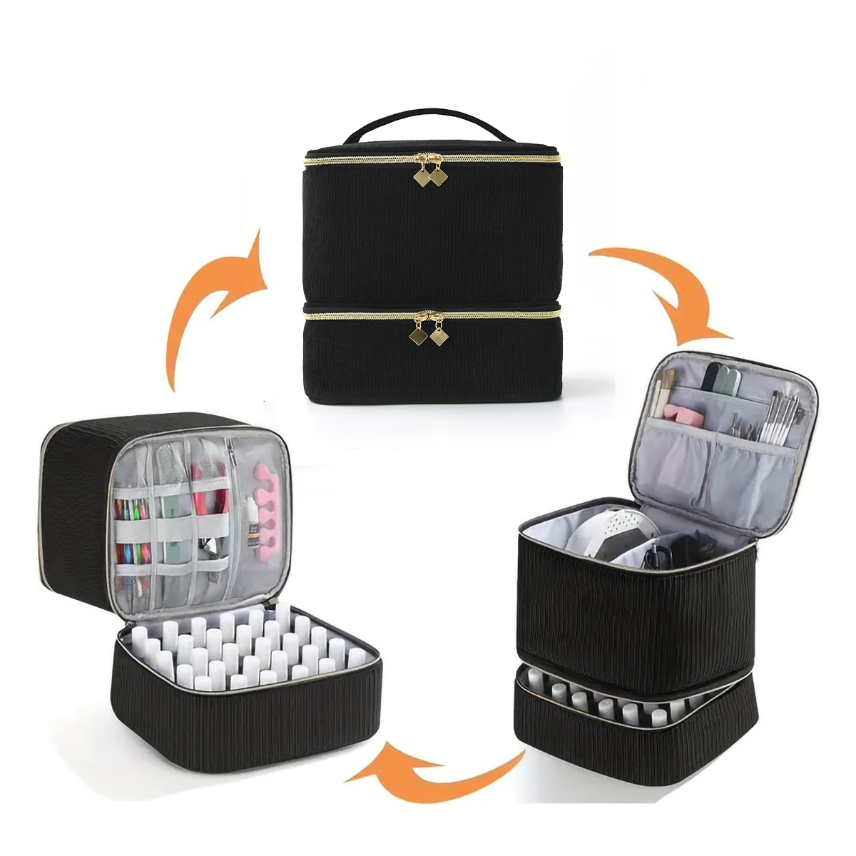 Feihong 크로스-보더 더블 레이어 화장품 가방 높은 가치 매니큐어 저장 가방 대용량 코듀로이 휴대용 화장품 가방