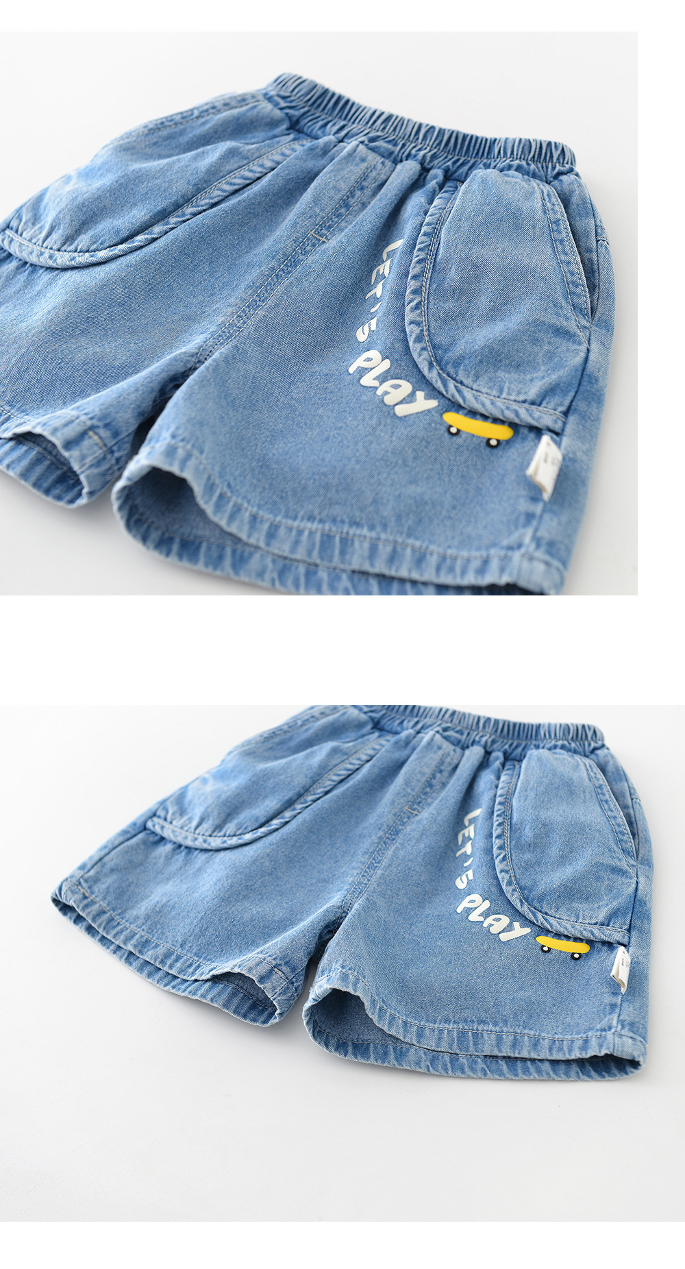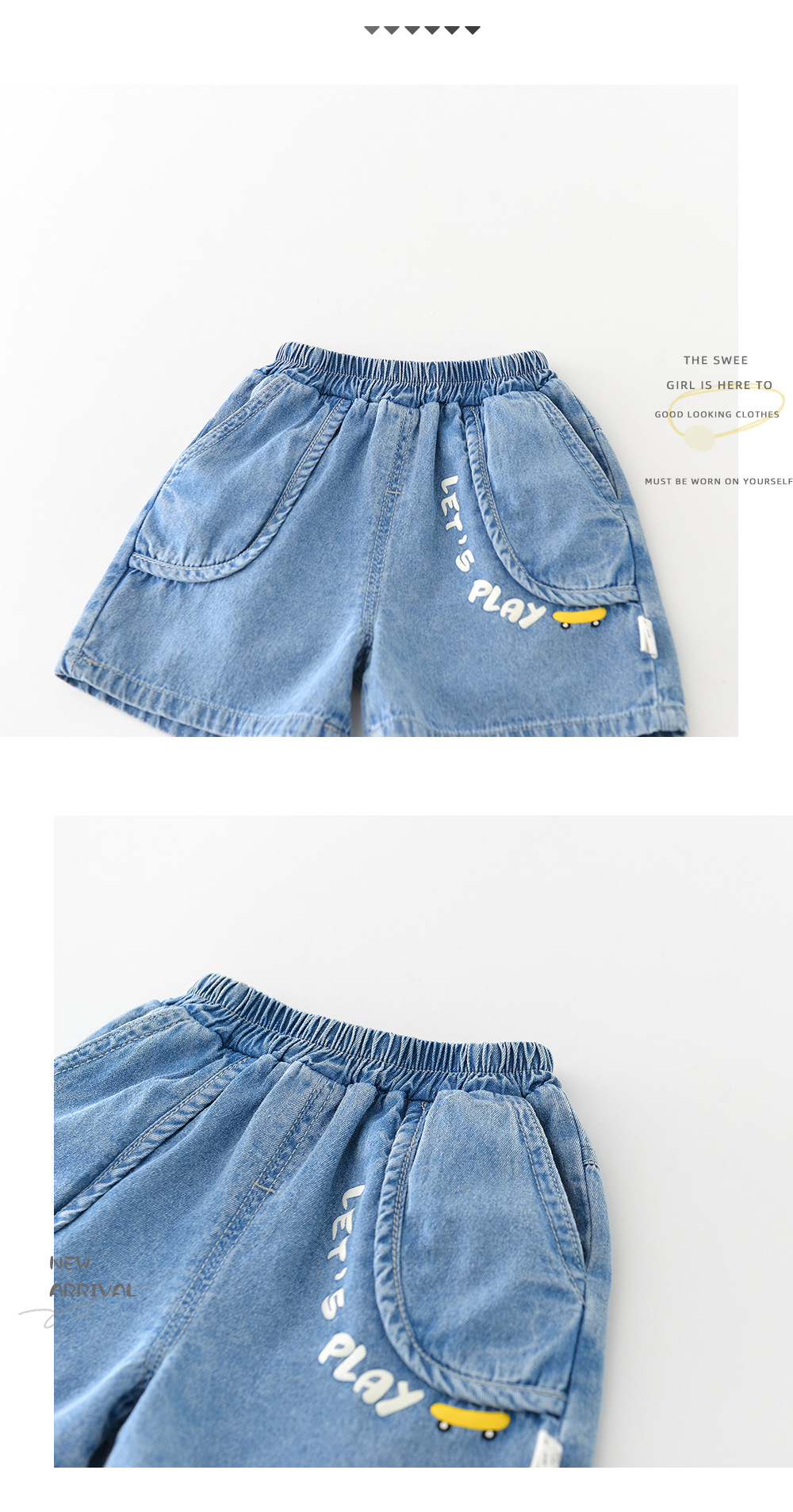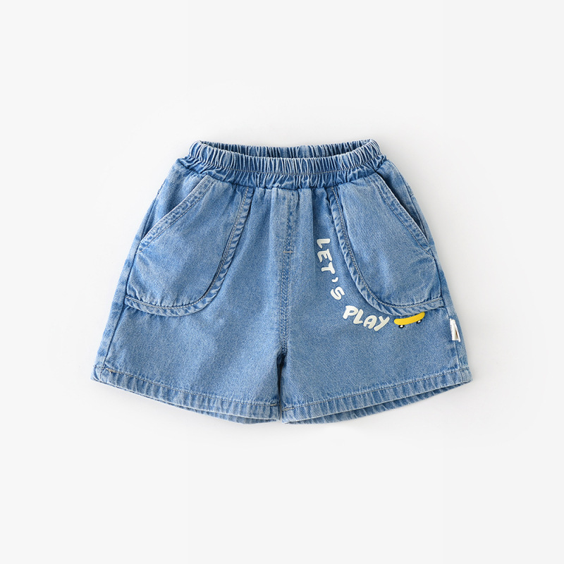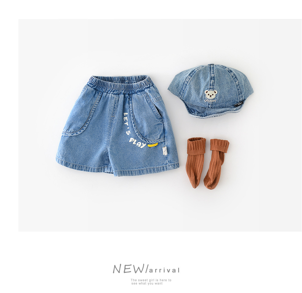 2025 년 여름 새로운 한국식 어린이 대형 포켓 데님 반바지 아기와 유아 인쇄 편지 중간 허리 바지 52163