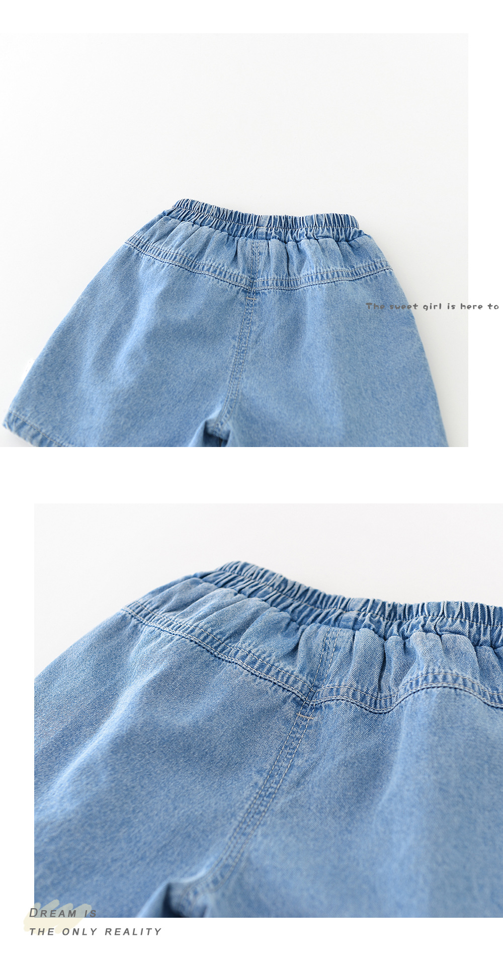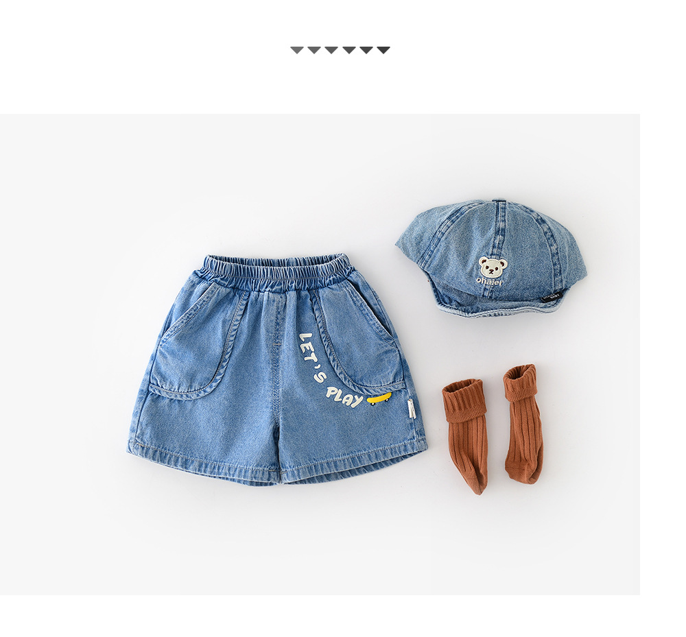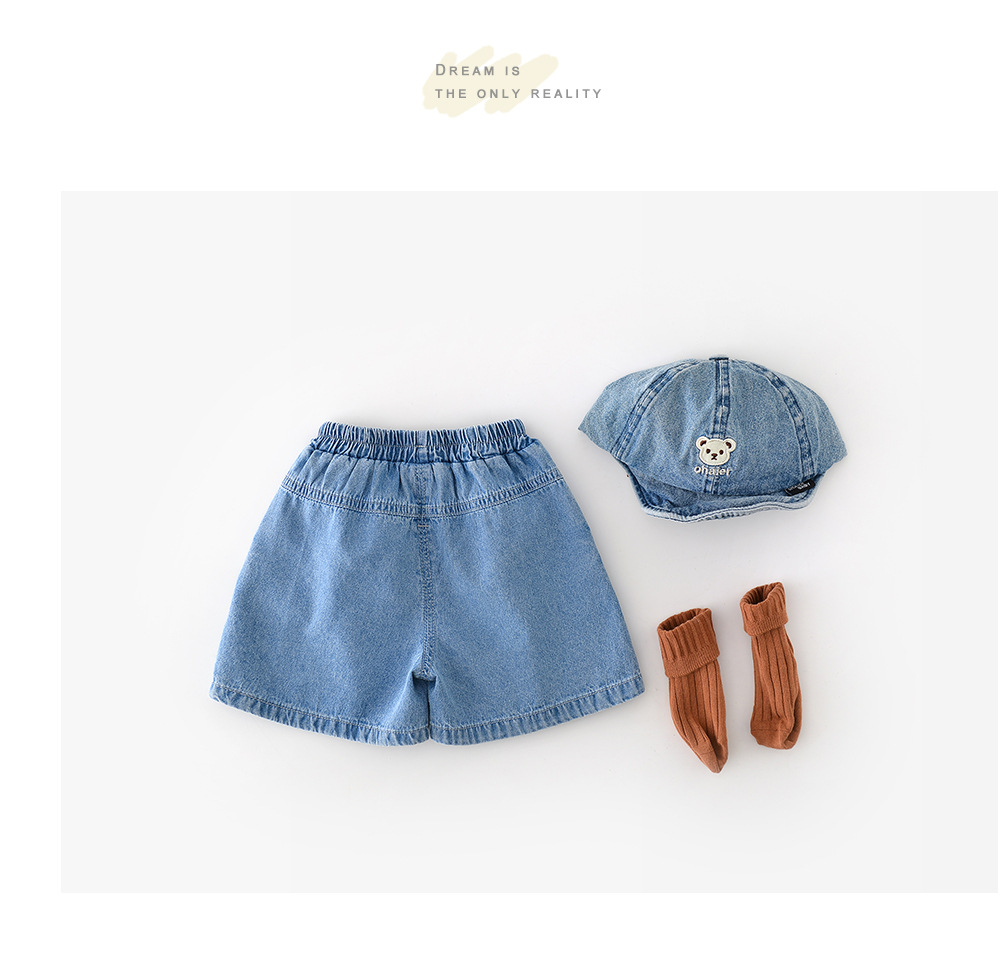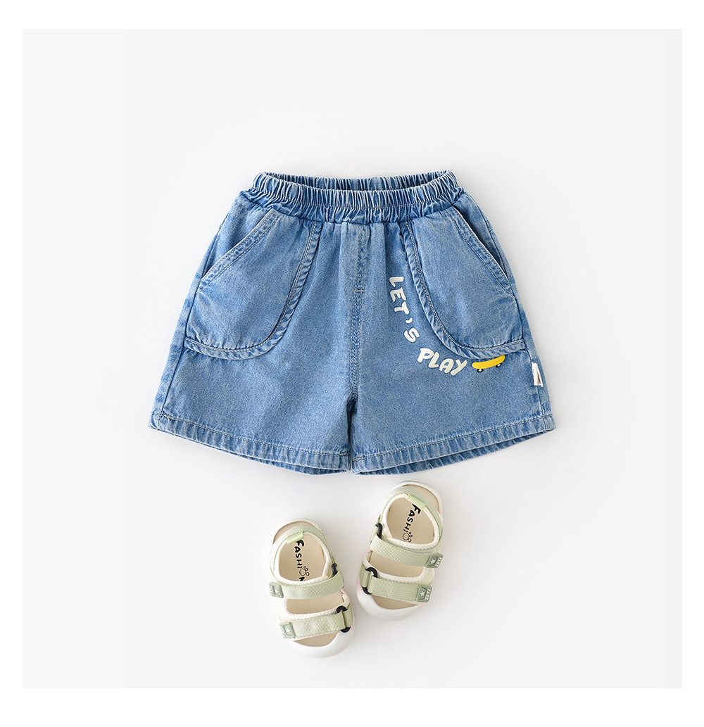 2025 년 여름 새로운 한국식 어린이 대형 포켓 데님 반바지 아기와 유아 인쇄 편지 중간 허리 바지 52163