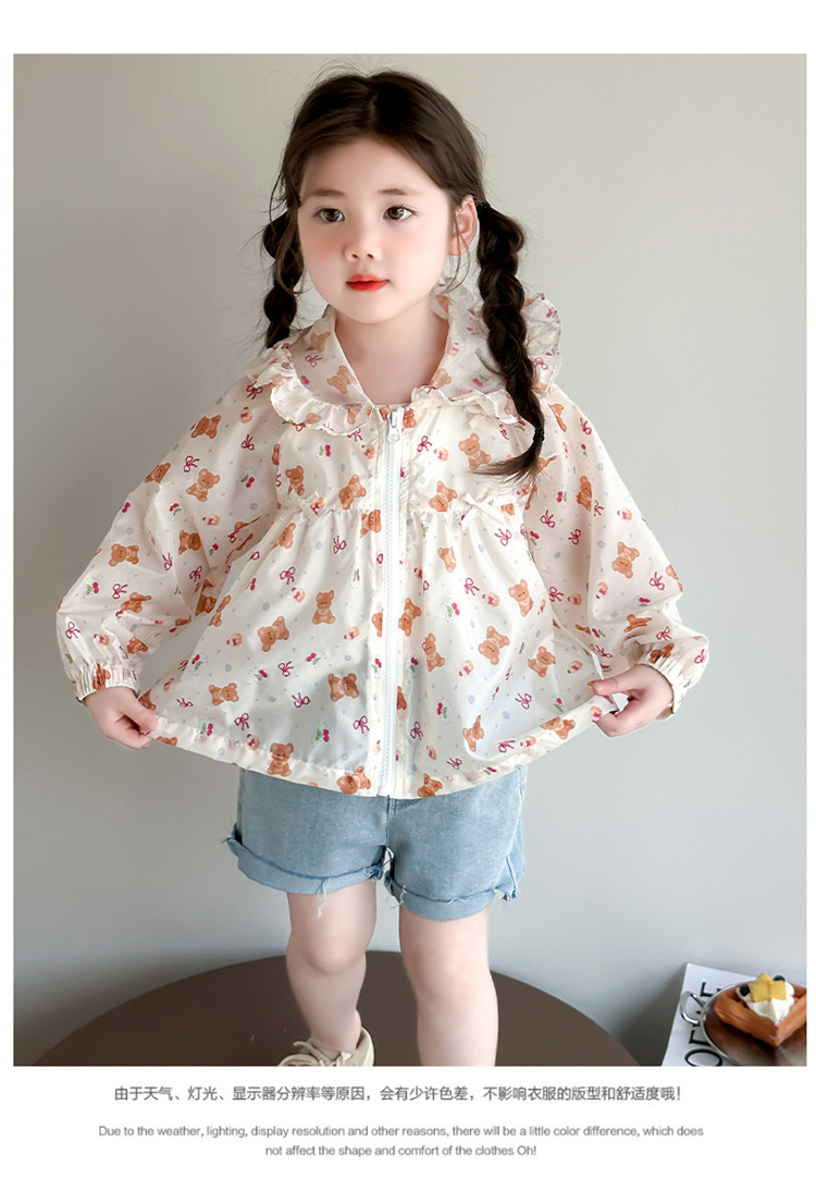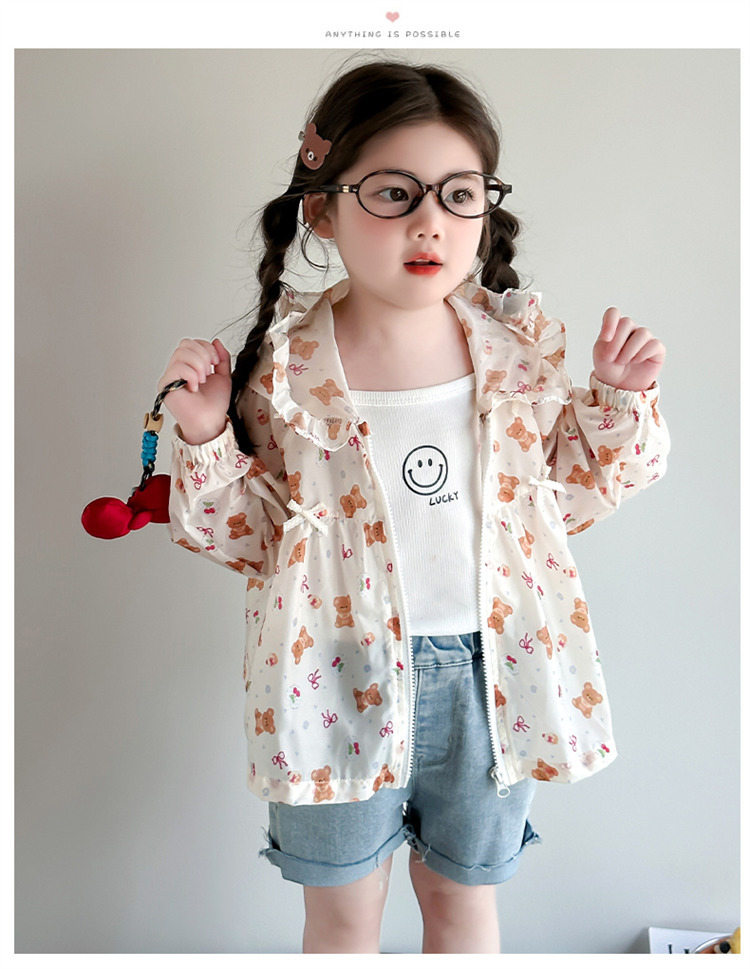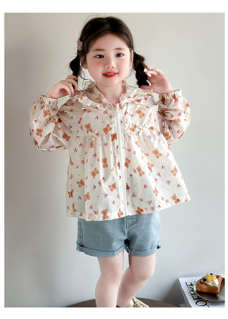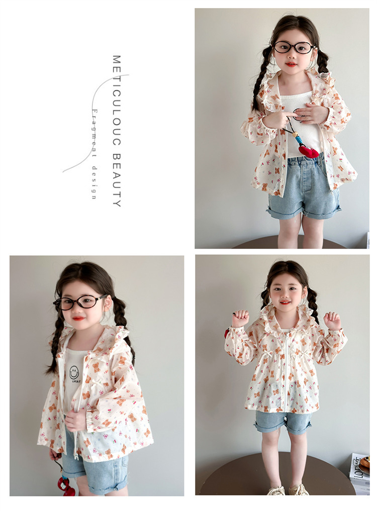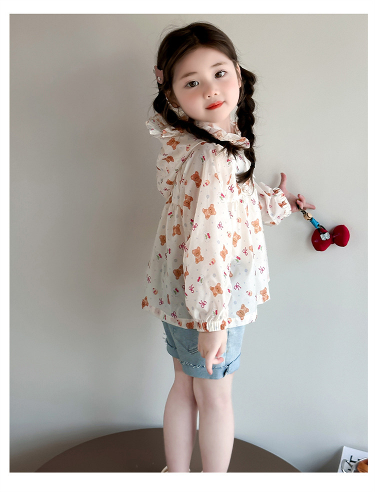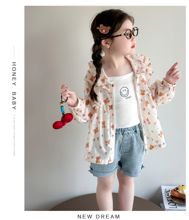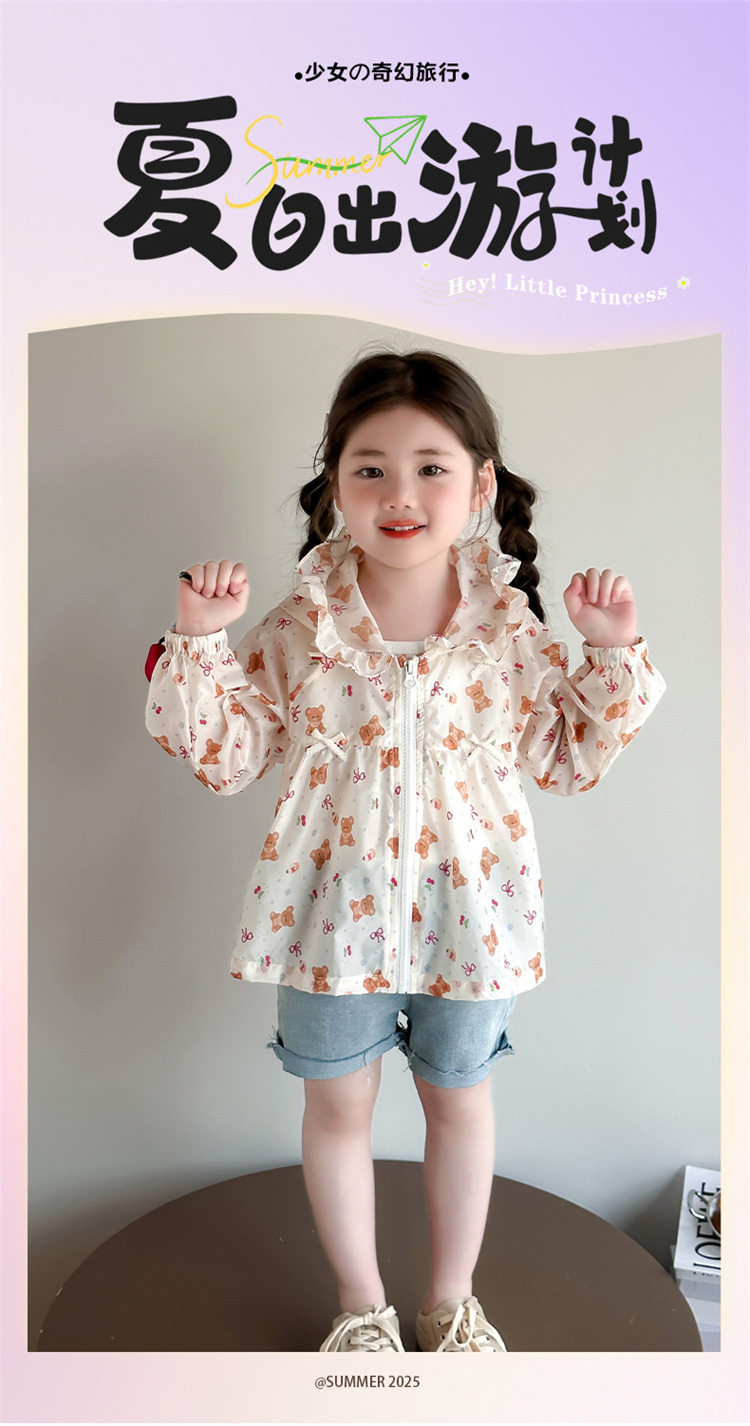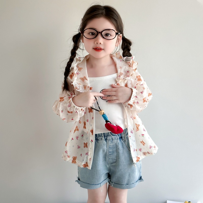 여자 곰 활 태양 보호 의류 2025 여름 새로운 패션 소녀 세련된 최고 어린이 여름 옷스토어 가기
