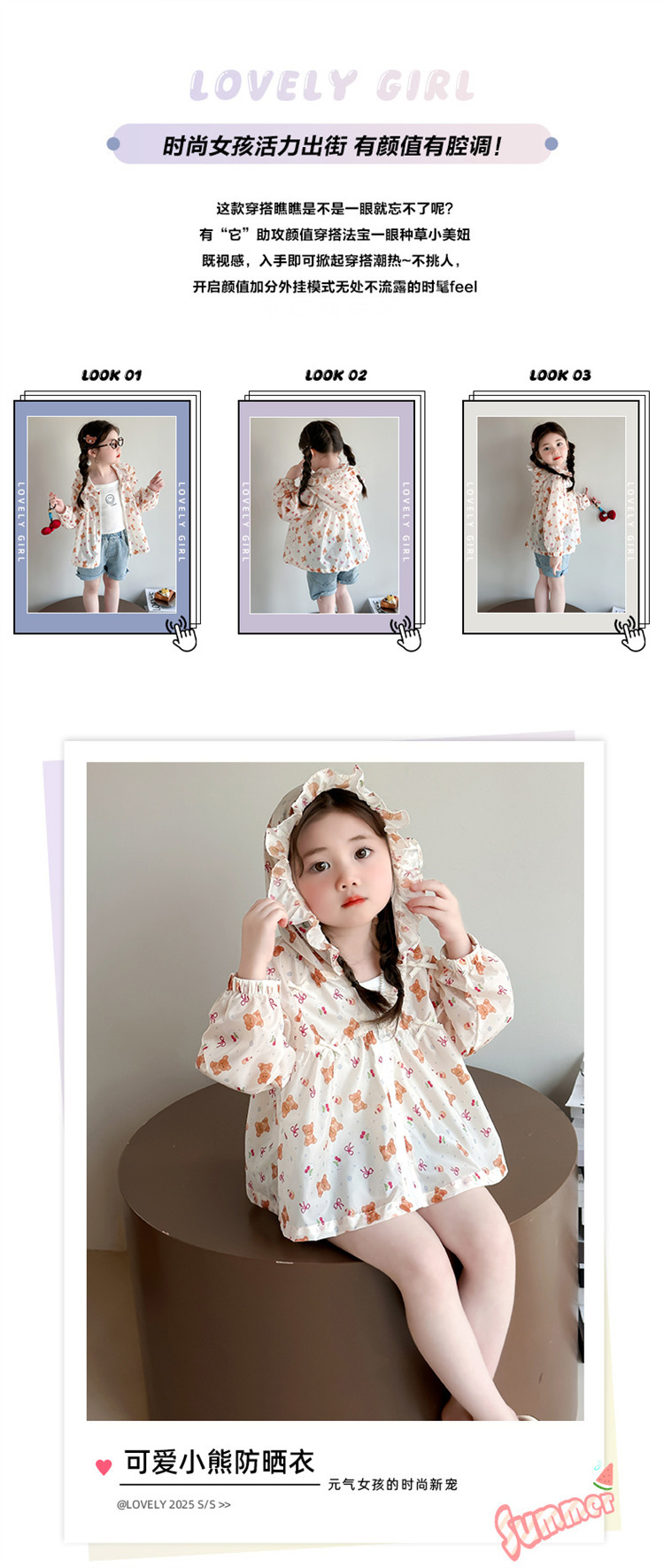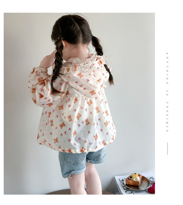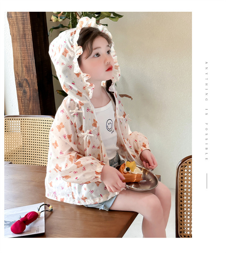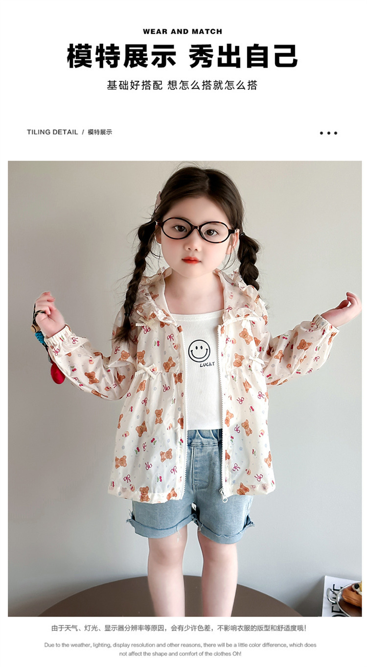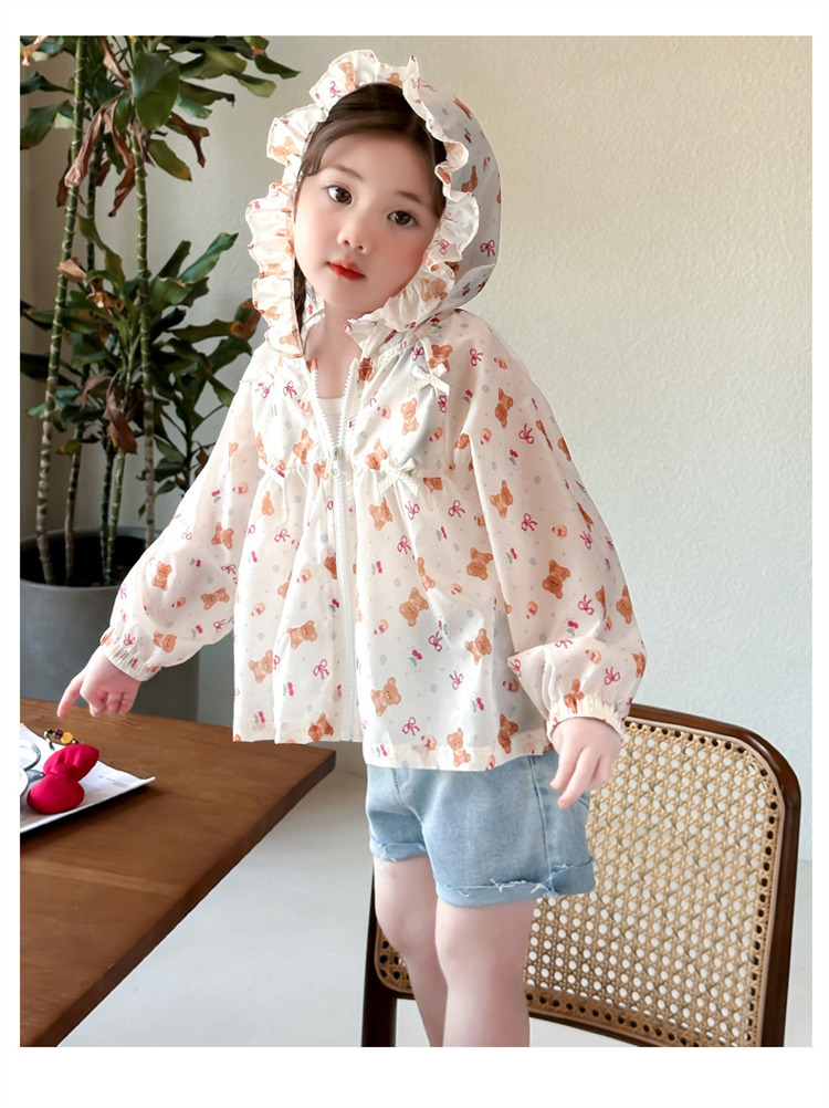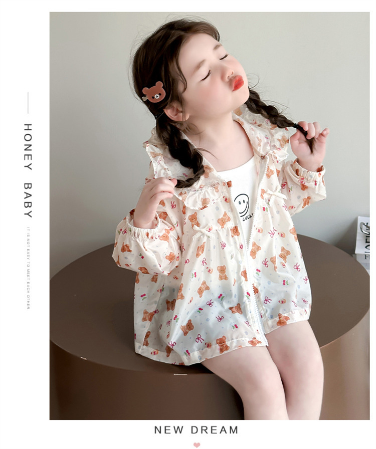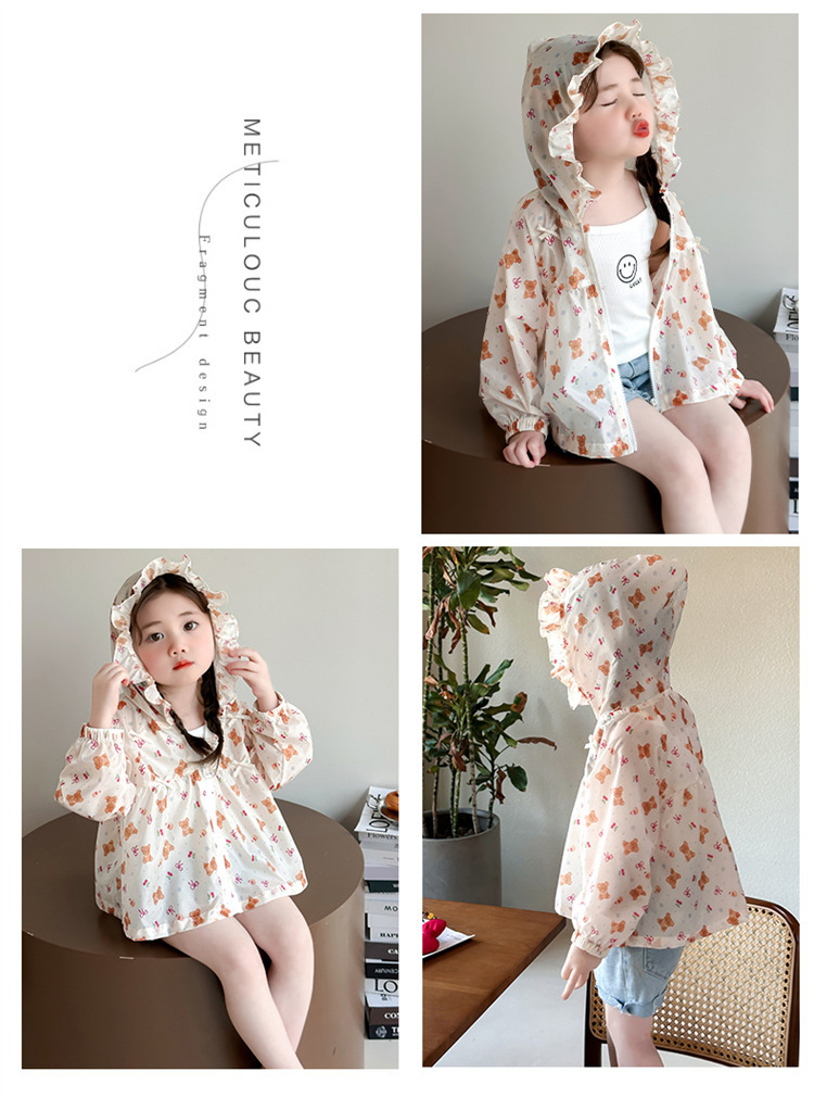 여자 곰 활 태양 보호 의류 2025 여름 새로운 패션 소녀 세련된 최고 어린이 여름 옷스토어 가기