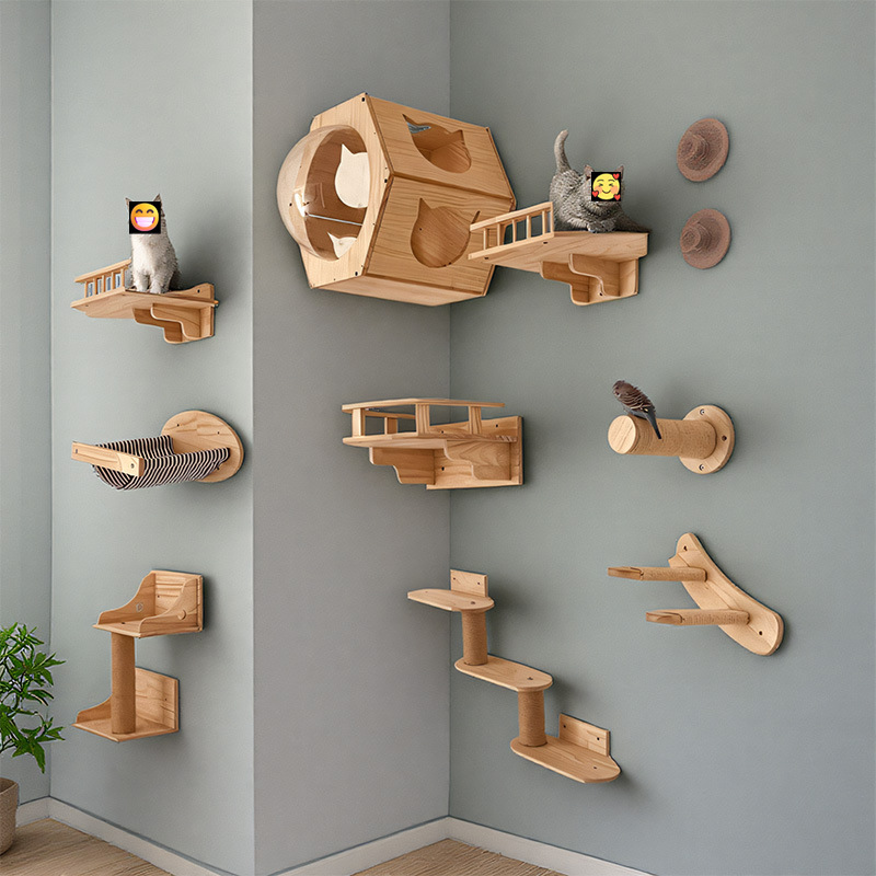 벽걸이형 고양이 클라이밍 프레임, 원목 벽걸이형 고양이 둥지, 고양이 트리, 일체형 고양이 프레임, 우주 캡슐 점프 플랫폼, 고양이 스크래치 컬럼, 럭셔리스토어 가기