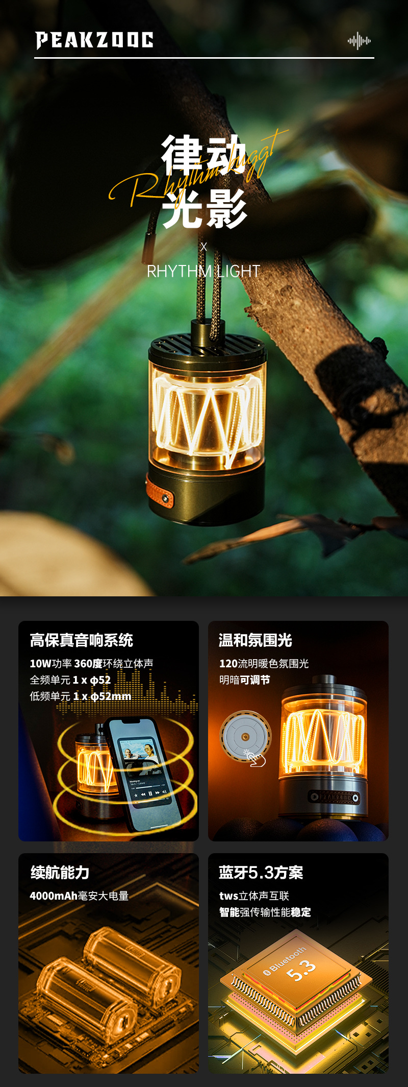 리듬 빛과 그림자 야외 분위기 조명 블루투스 오디오 휴대용 금속 무선 서브 우퍼 하트 비트 웨이트 캠핑스토어 가기