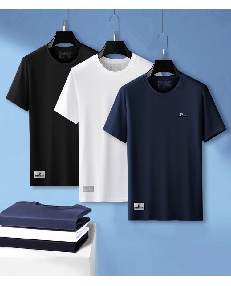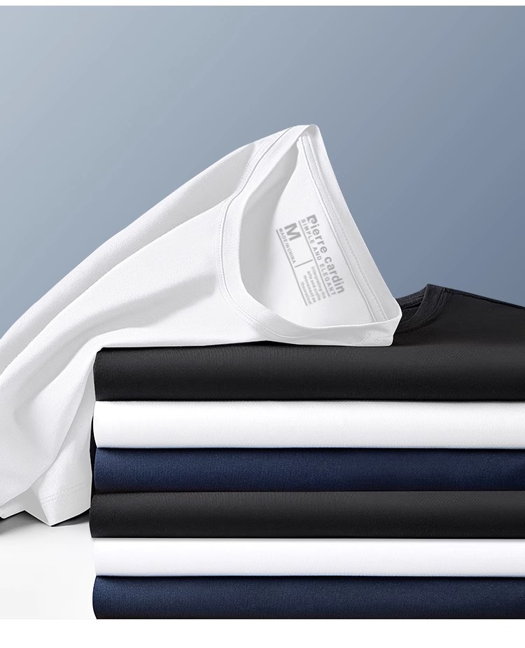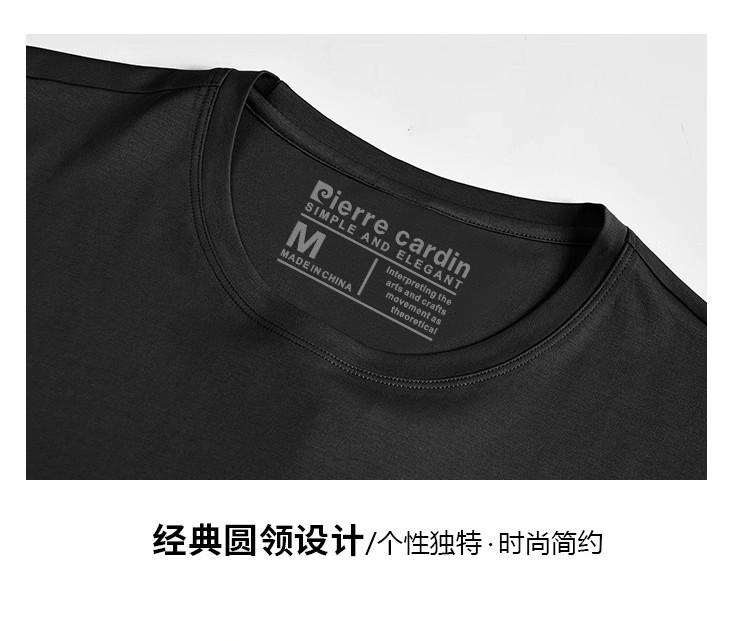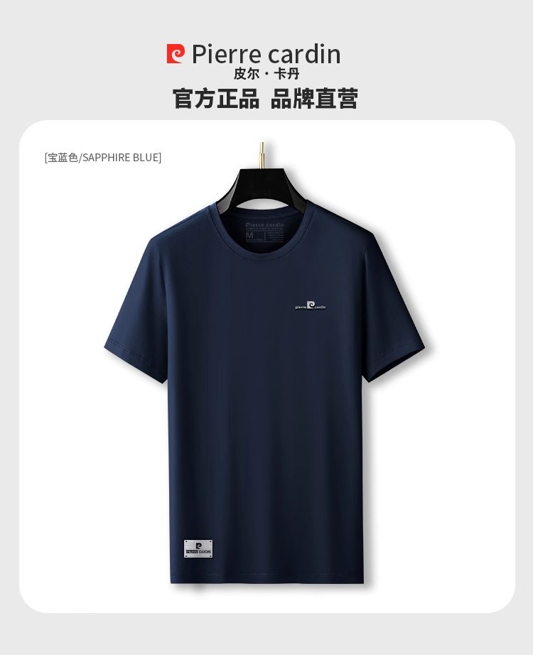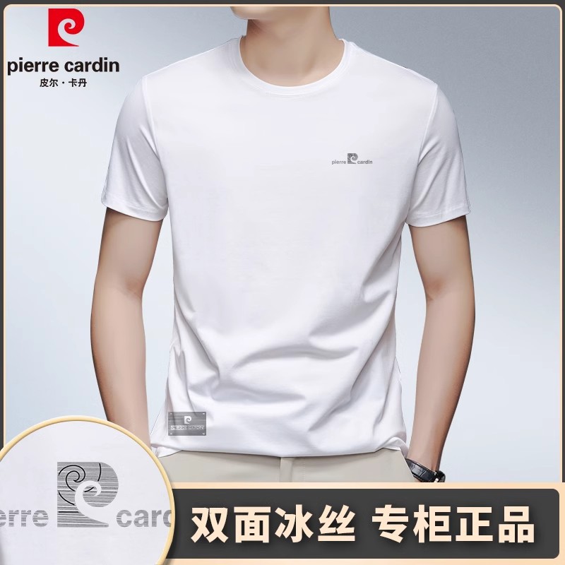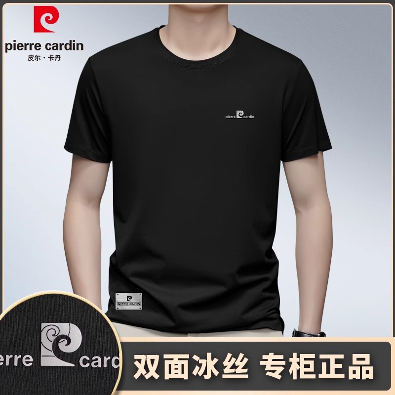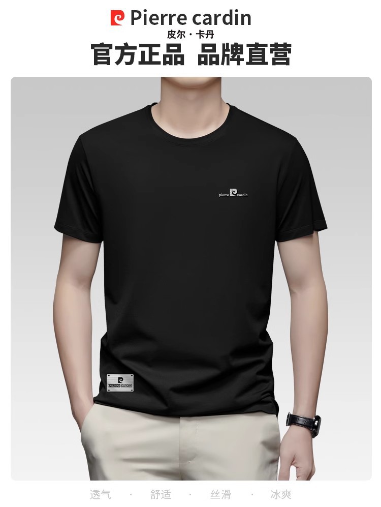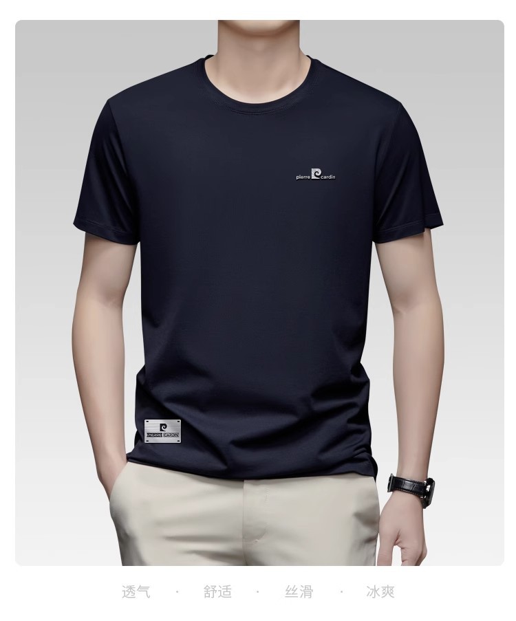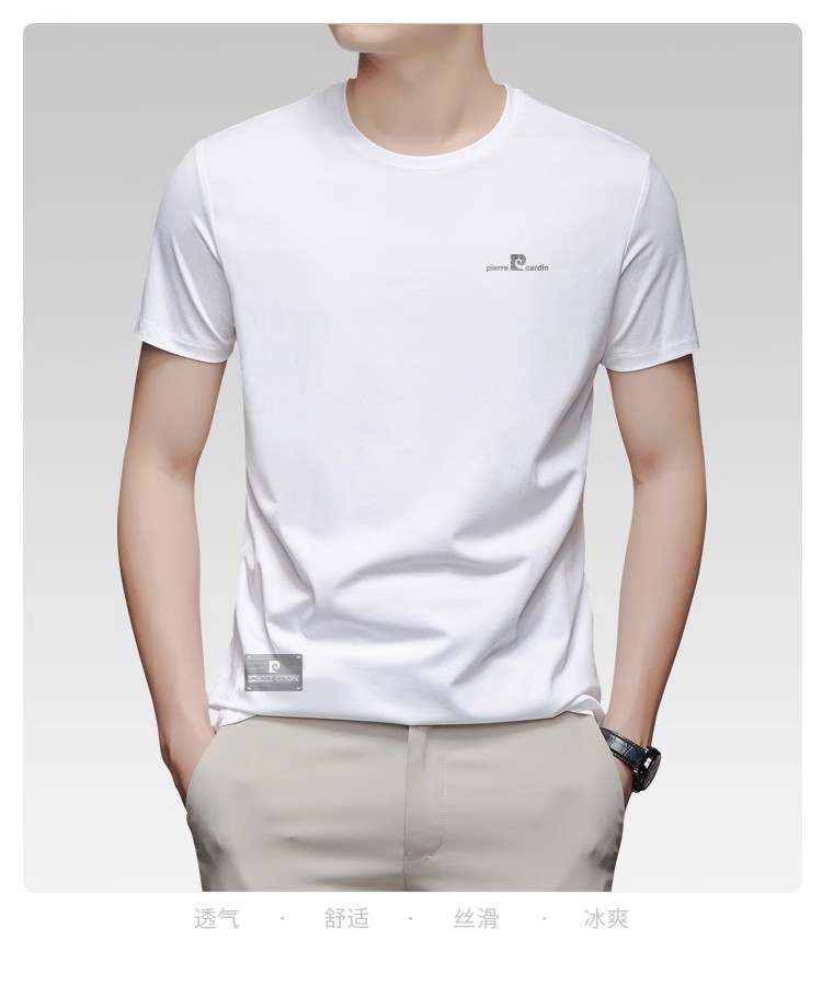 [태그 포함] 피에르 카딘 남자 여름 아이스 실크 모달 라운드 넥 반팔 티셔츠 남자 캐주얼 베이스 셔츠