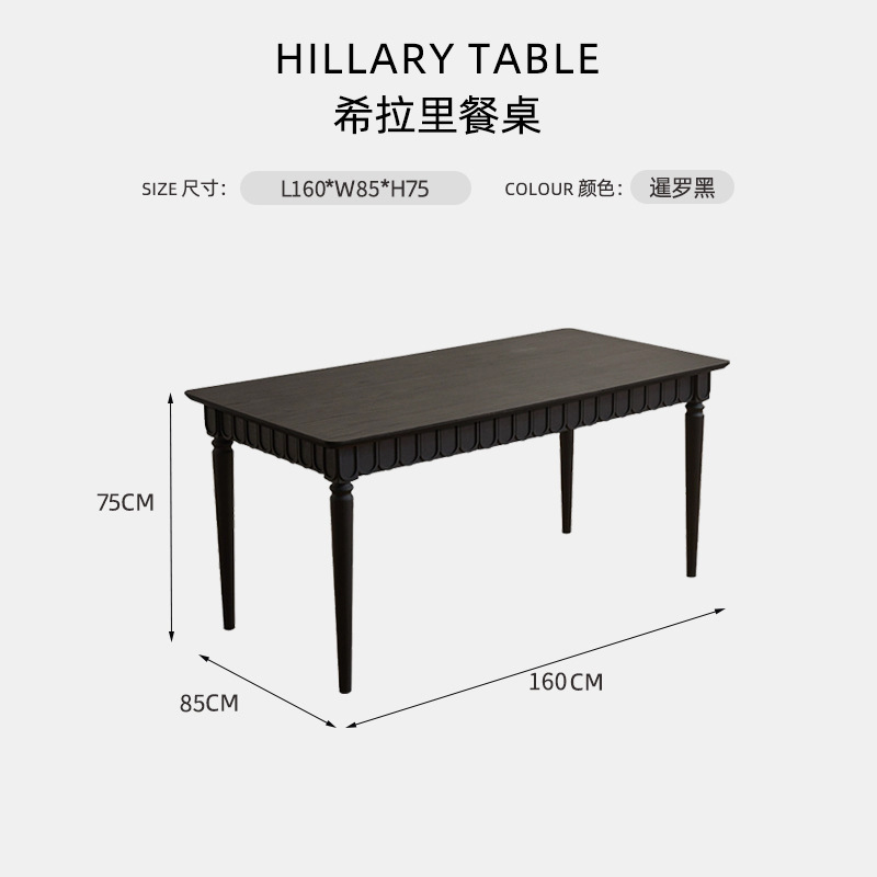 • 힐러리 빈티지 블랙 다이닝 테이블 1.6m