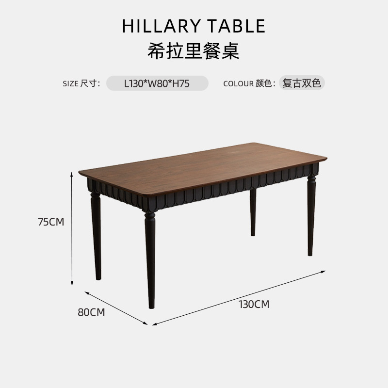 • 힐러리 빈티지 블랙 다이닝 테이블 1.3m