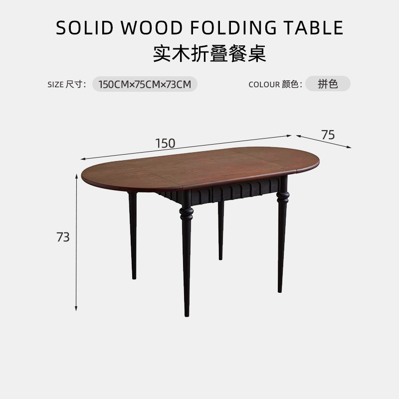 프랑스 스타일 솔리드 우드 빈티지 식탁 블랙 플레이트 테이블 홈 타원형 작은 아파트 미국 접이식 긴 테이블 중간 고대 식탁스토어 가기