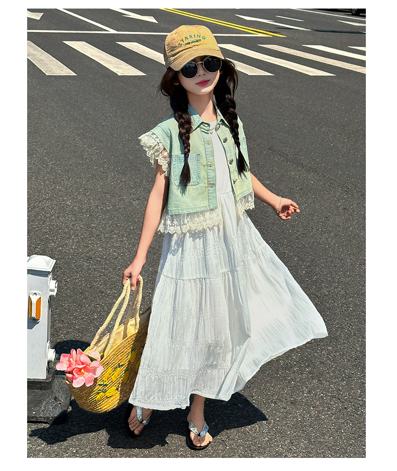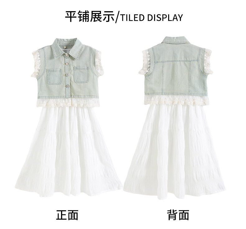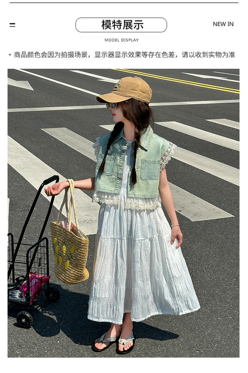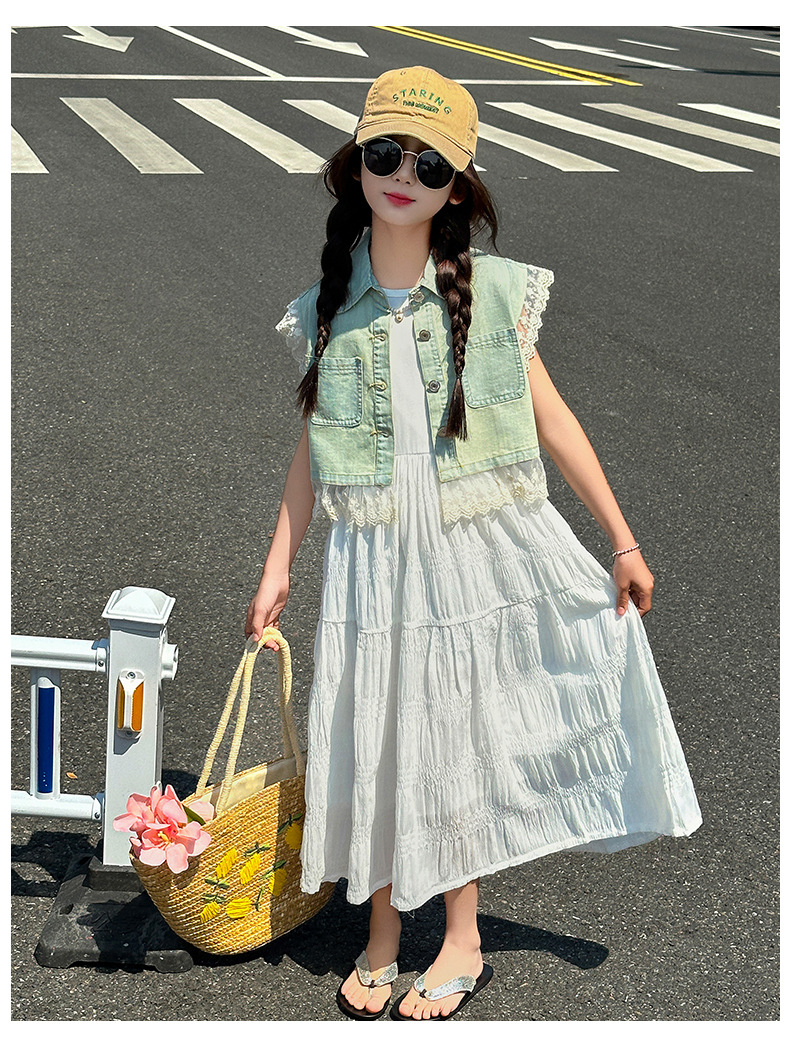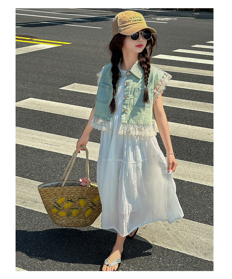 소녀의 여름 원피스 2025 새로운 한국 스타일 소녀의 여름 데님 조끼 원피스 투피스 세트