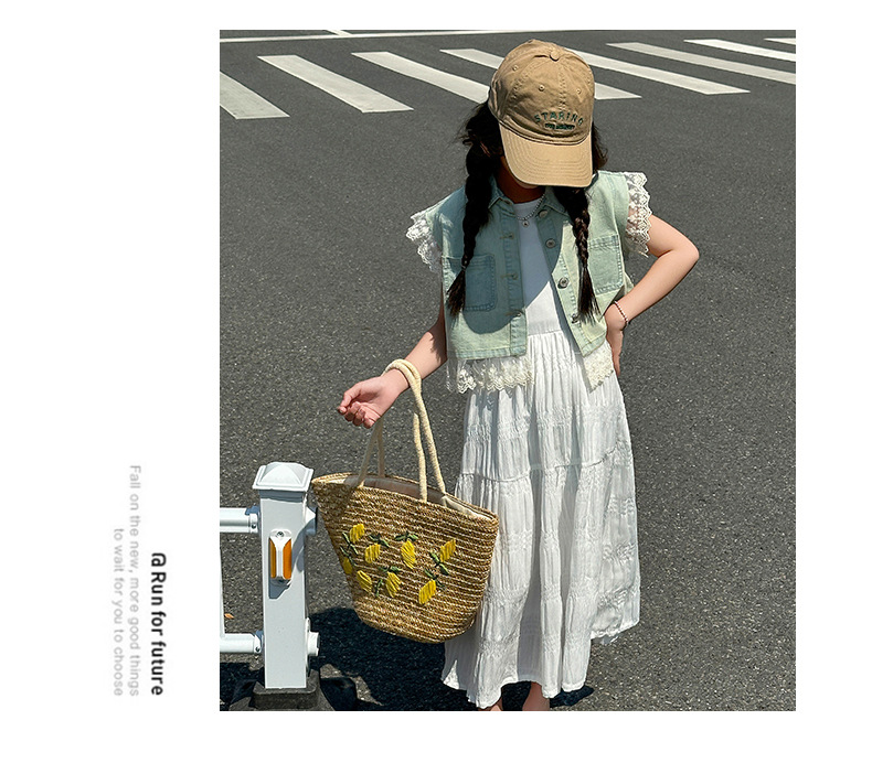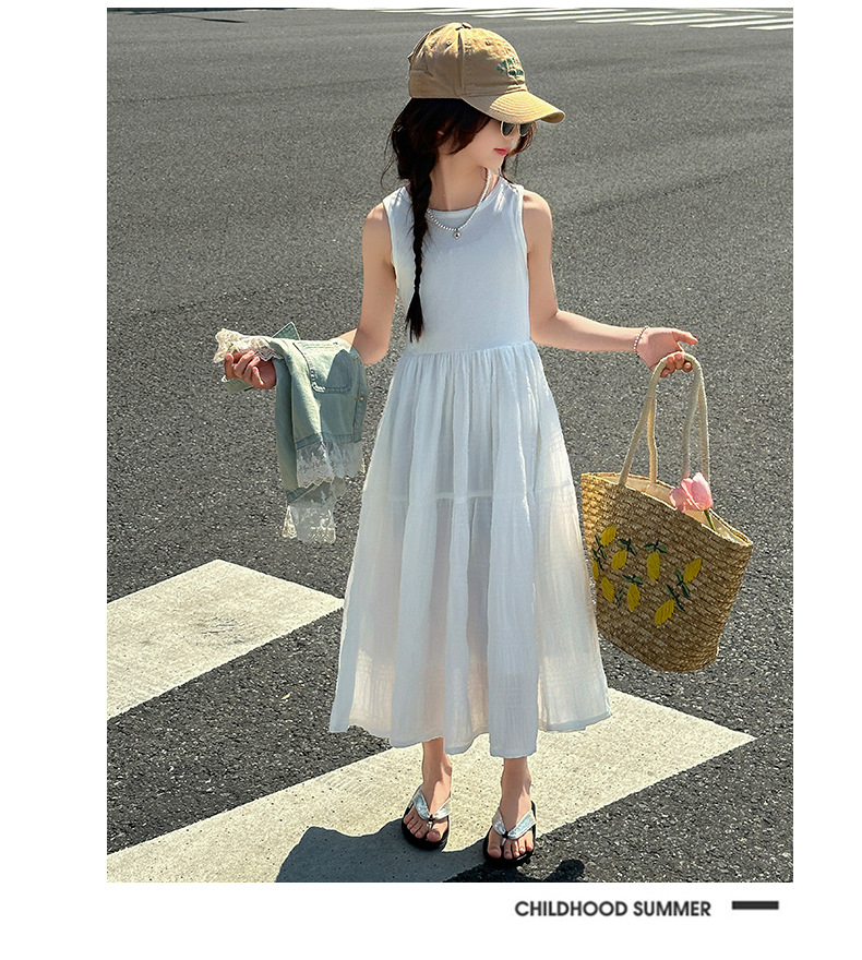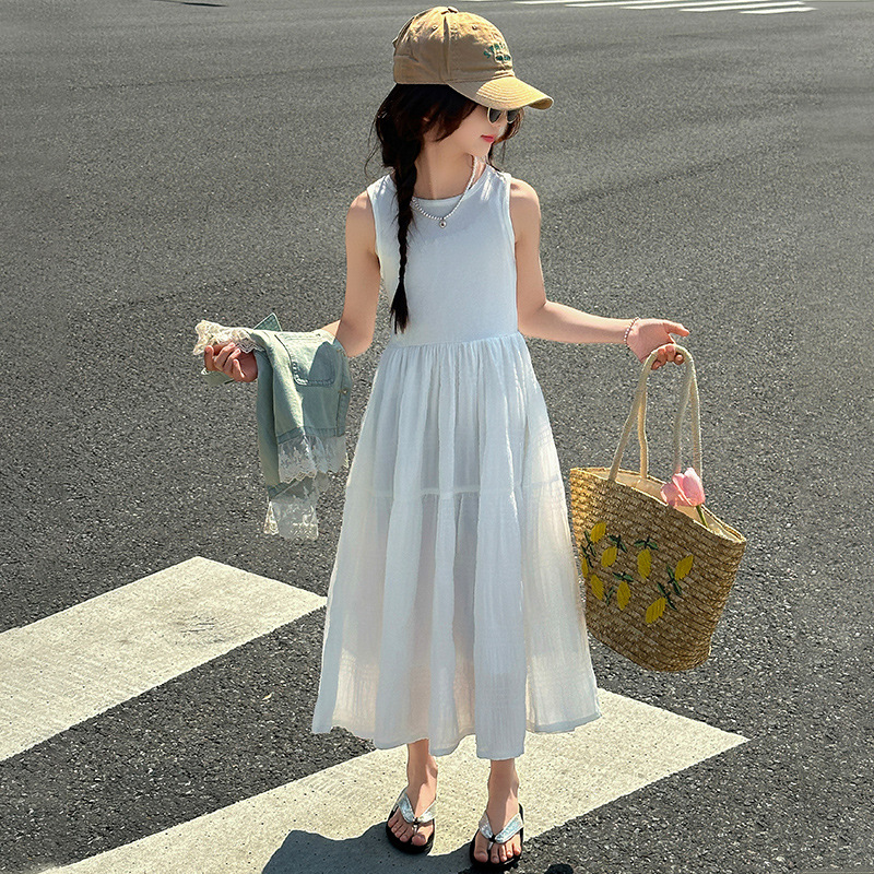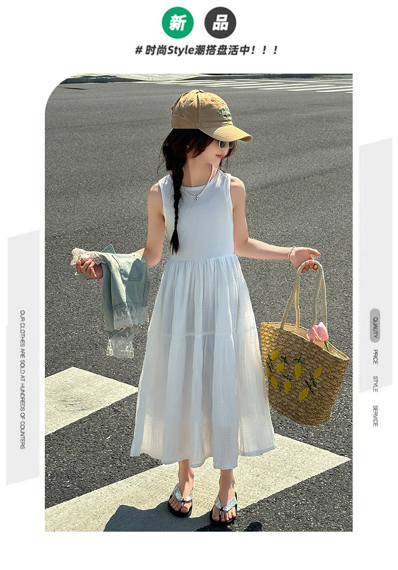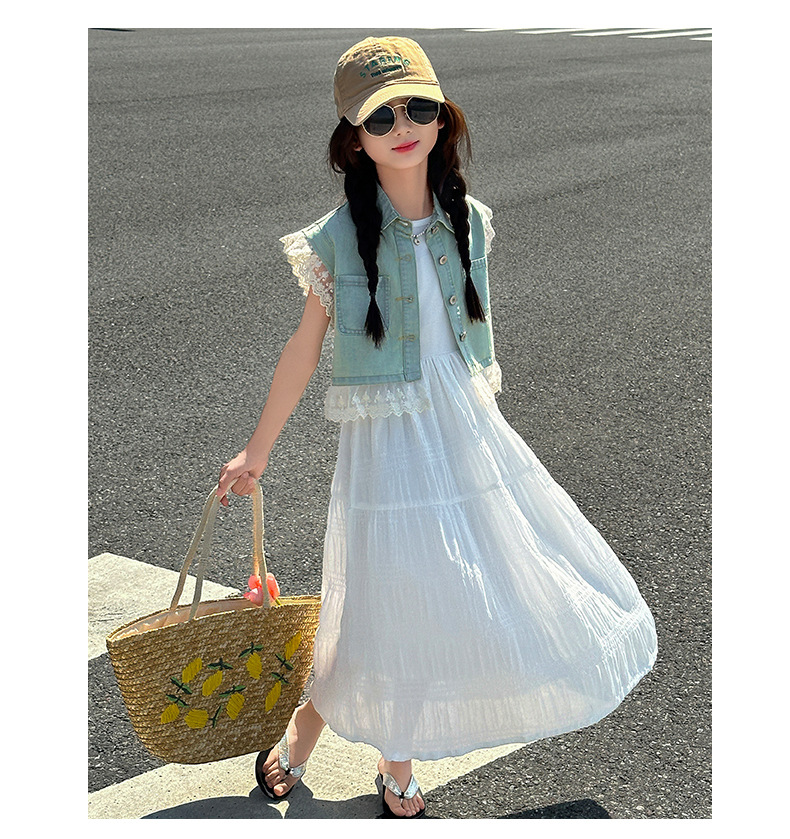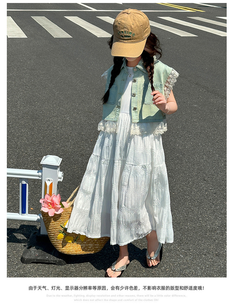 소녀의 여름 원피스 2025 새로운 한국 스타일 소녀의 여름 데님 조끼 원피스 투피스 세트