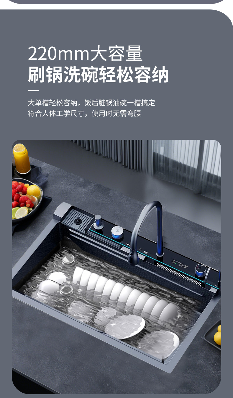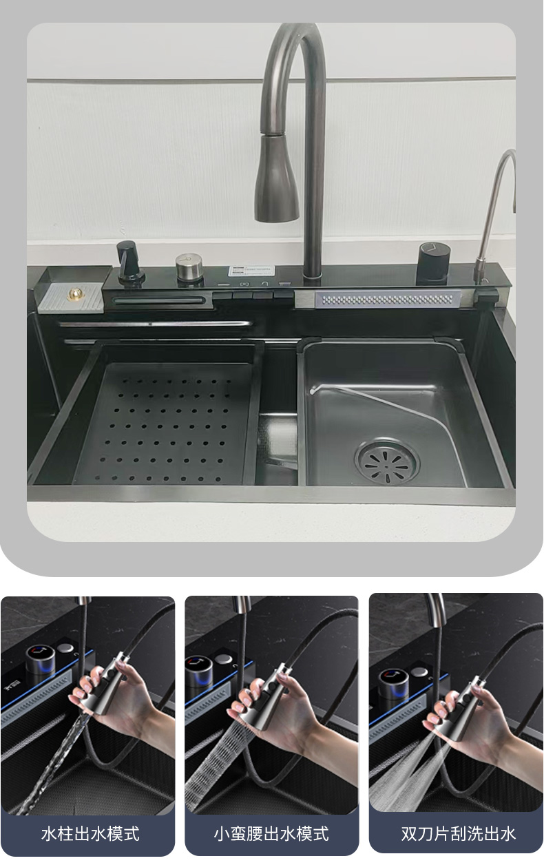 ✅ 고래 비 온천 폭포 싱크대 304 스테인레스 스틸 다기능 대형 단일 슬롯 식기 세척 싱크대 주방 가정용 식기 세척 싱크대스토어 가기