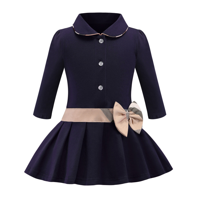 유럽과 미국 아동복 2025 봄 여름 새로운 스타일 옷깃 격자 무늬 대비 색상 피케 순수 코튼 여자 아기 긴팔 드레스 유행