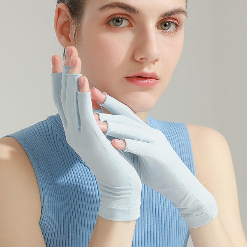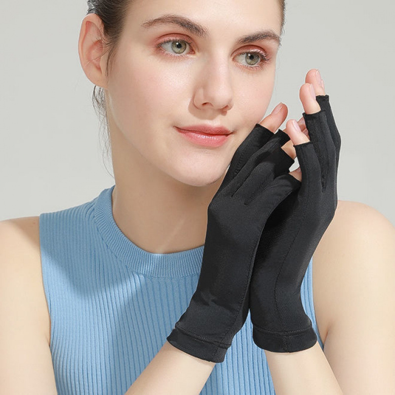 네일 아트 장갑, 자외선 차단, 여름 여성용 아이스 실크, 미끄럼 방지, 야외 통기성, 반 손가락, 안티 그릴 블랙스토어 가기