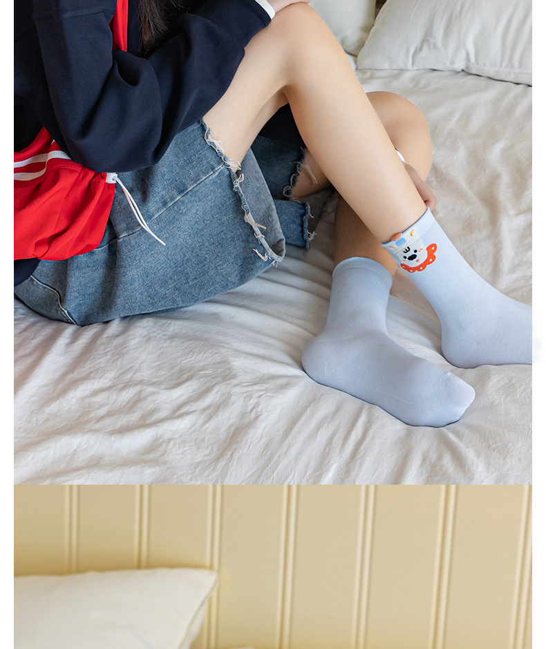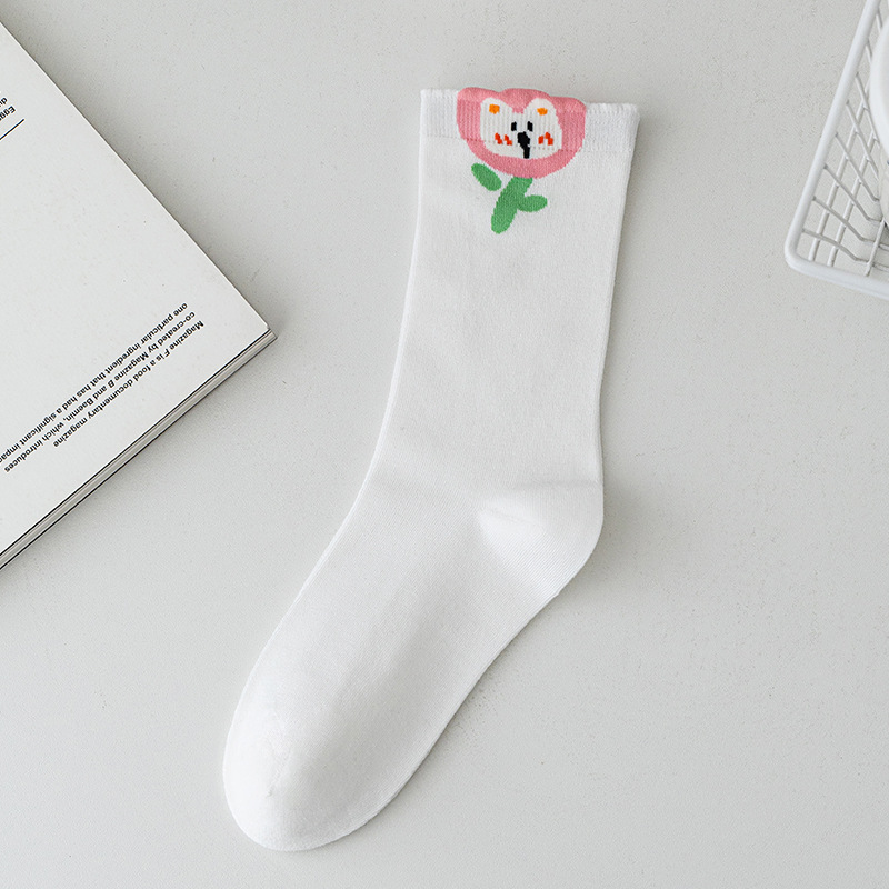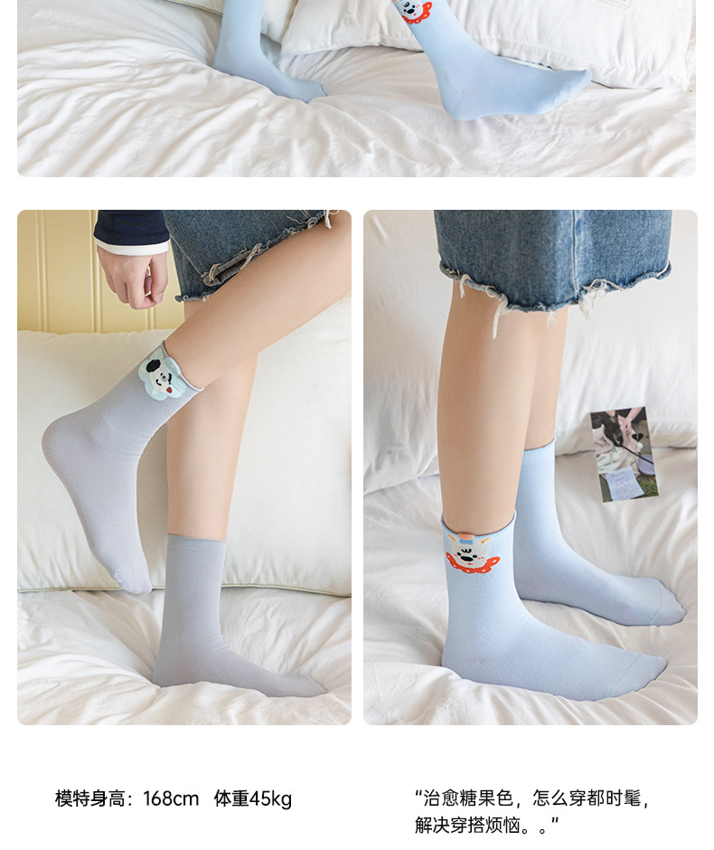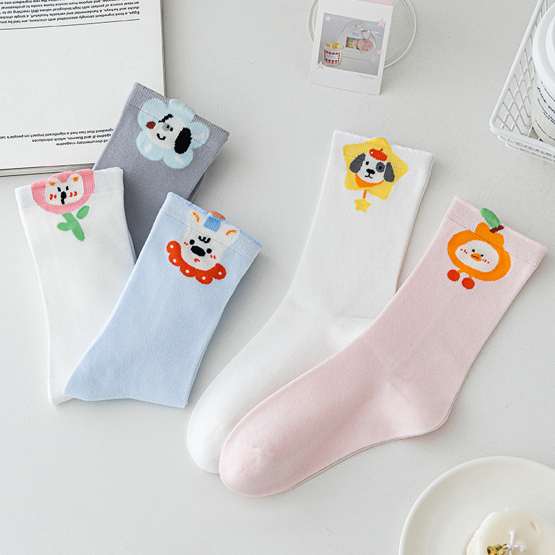 봄과 여름 겉옷을위한 대학 스타일 귀여운 강아지 양말 여성 모달 일본 ins 트렌디 만화 중간 튜브 양말 도매스토어 가기