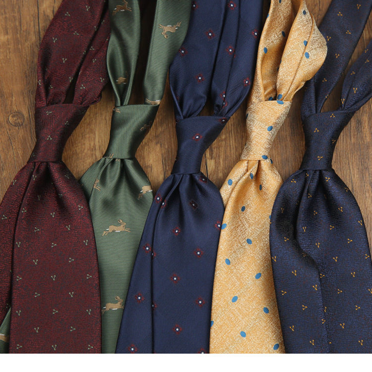 공장 재고 도매 레트로 한국 스타일 원피스 8CM 자카드 줄무늬 와인 커피 전문 비즈니스 인터뷰 타이