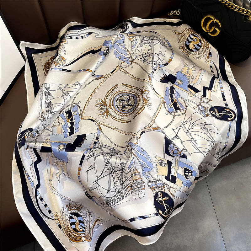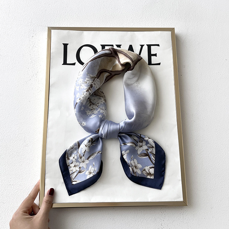 전국 스타일 실크 스카프 여자 2025 봄과 여름 올 매치 우아한 장식 스카프 70cm 대형 스퀘어 얇은 스카프스토어 가기