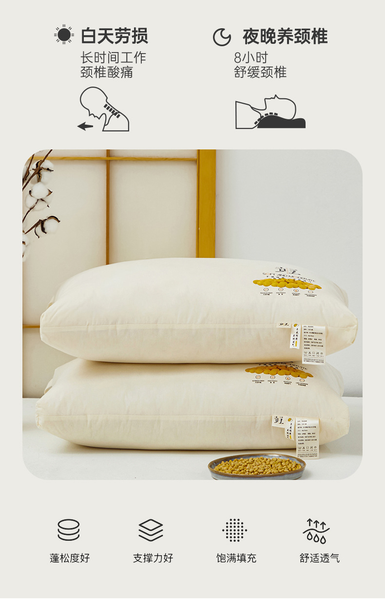 2025 새로운 클래스 A 면 콩 섬유 콩 베개 순수 면 콩 베개 코어 베개 수면 침구 4