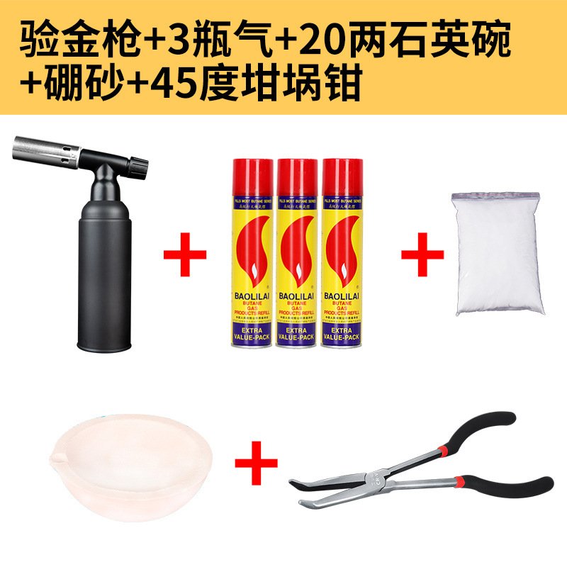 • 금 시험총 + 가스 3병 + 석영 그릇 1.0kg개 + 붕사 + 45도 도가니 펜치
