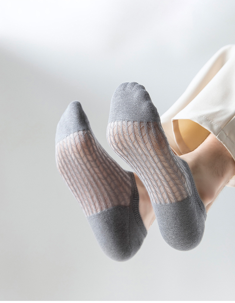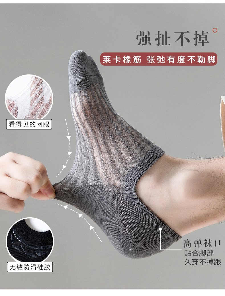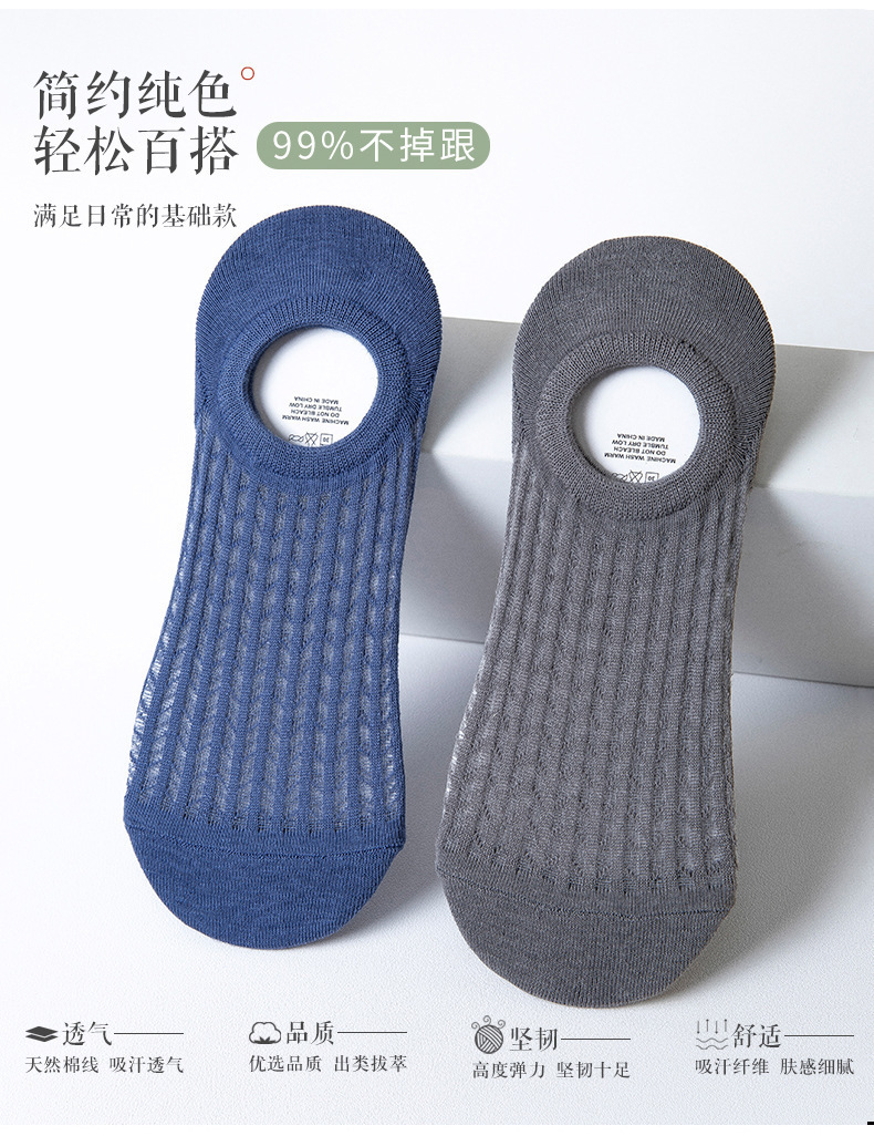 여름 보트 양말, 보이지 않는 메쉬 통기성 면 양말, 얇고 짧은, 탈취제, 미끄럼 방지, 떨어지지 않는 메쉬 보트 양말, 남성용 얕은 입