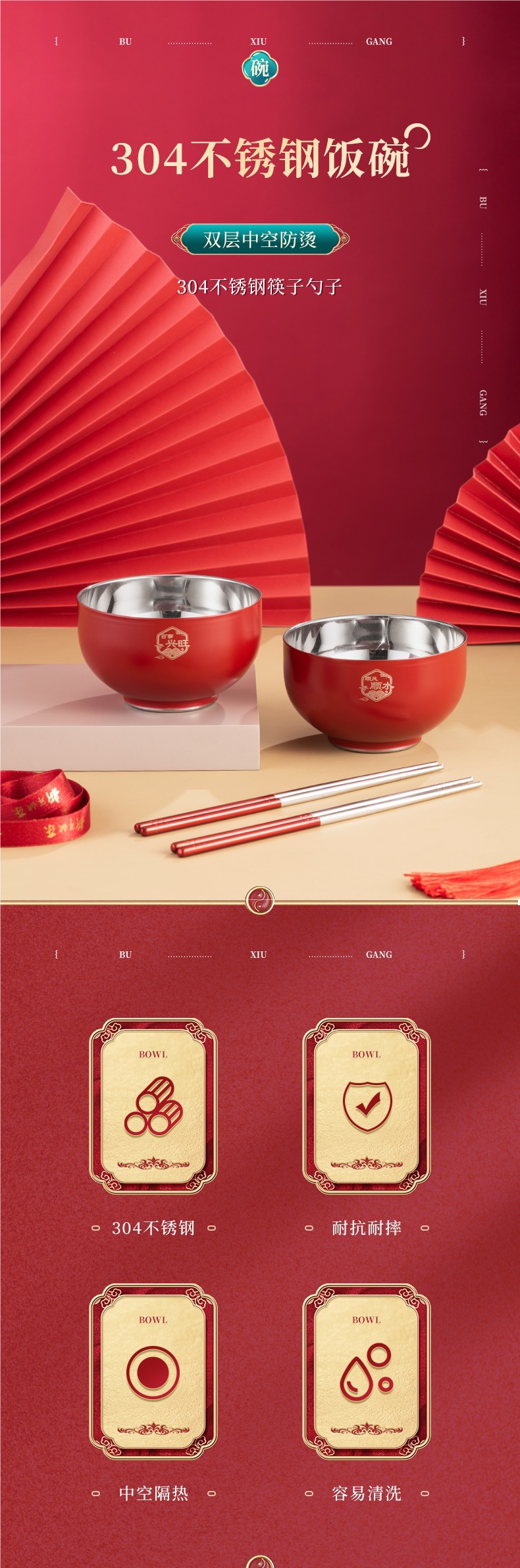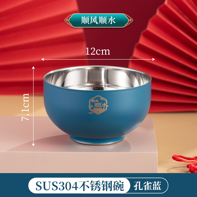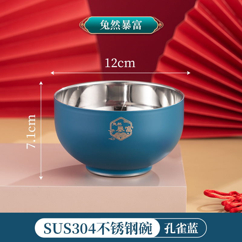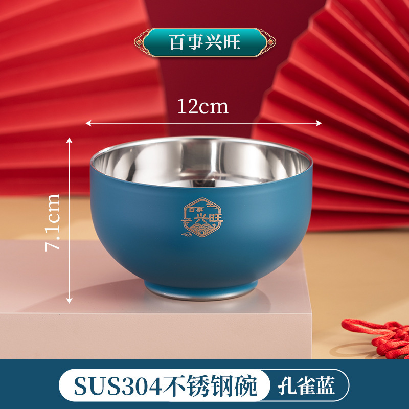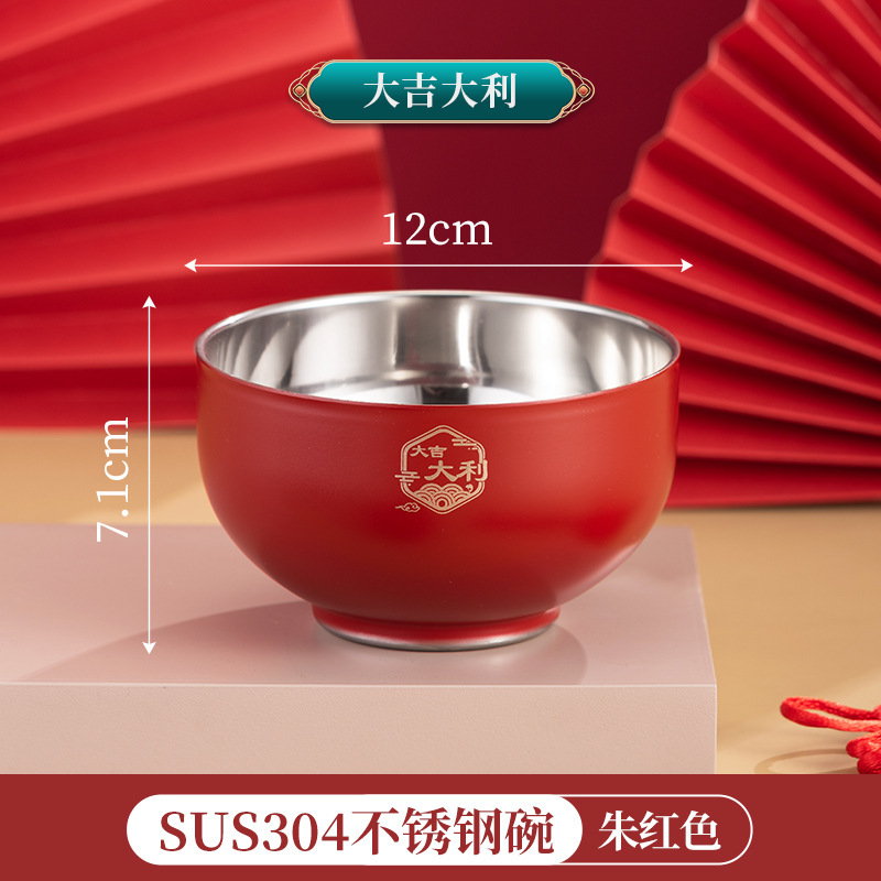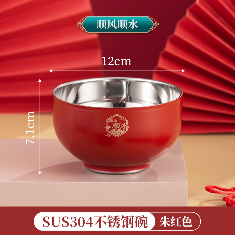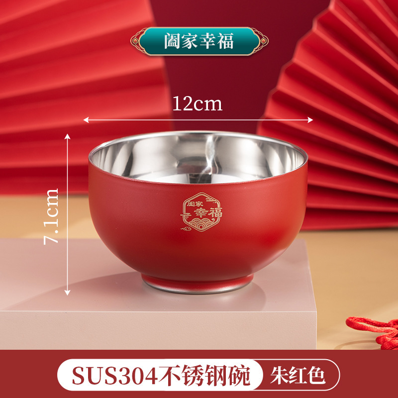 그릇 가정용 2024 신년 축제 축제 304 스테인레스 스틸 빨간색과 파란색 그릇, 젓가락 및 숟가락 세트 맞춤 선물 상자스토어 가기