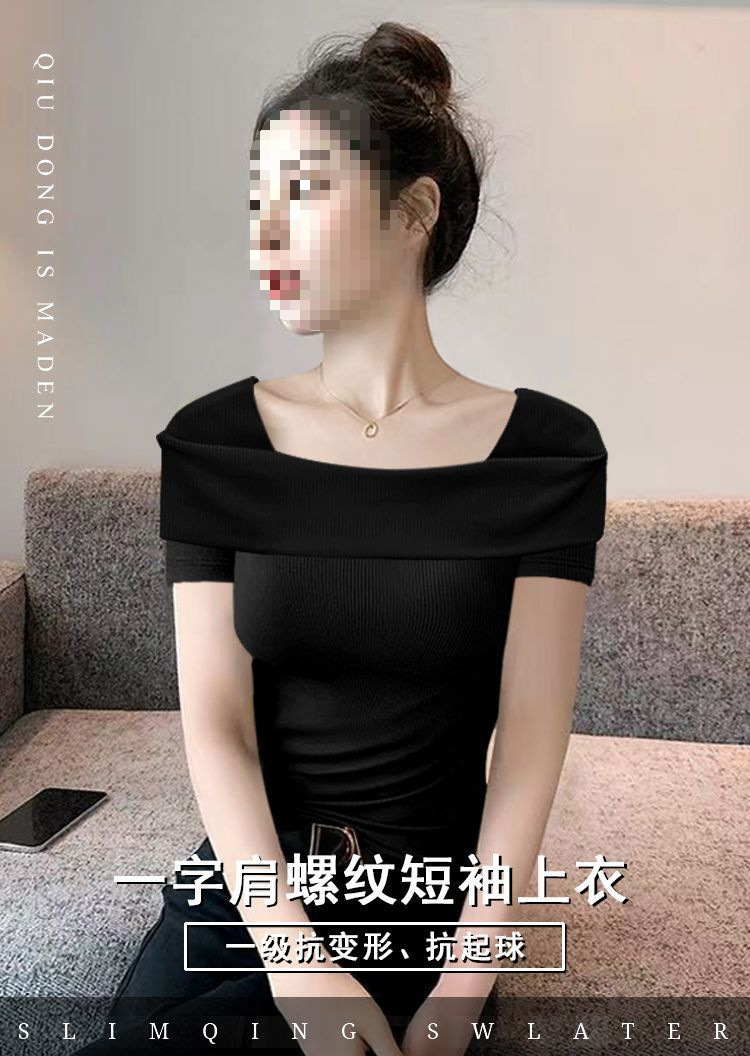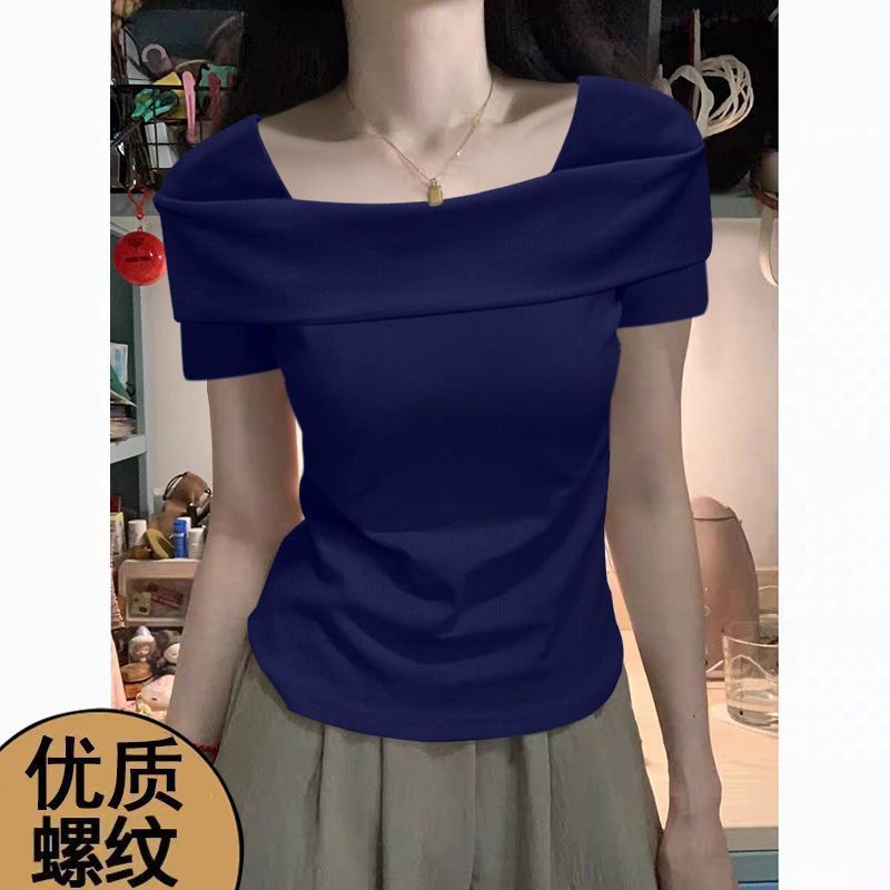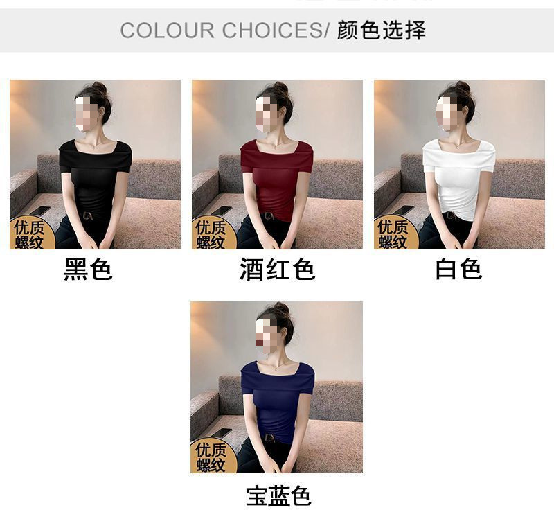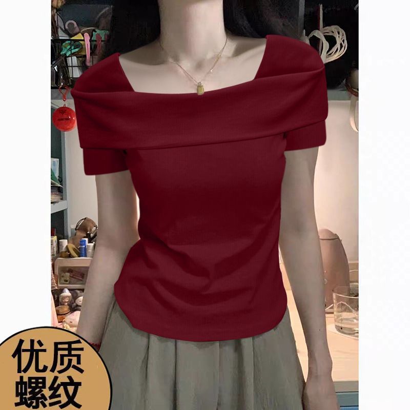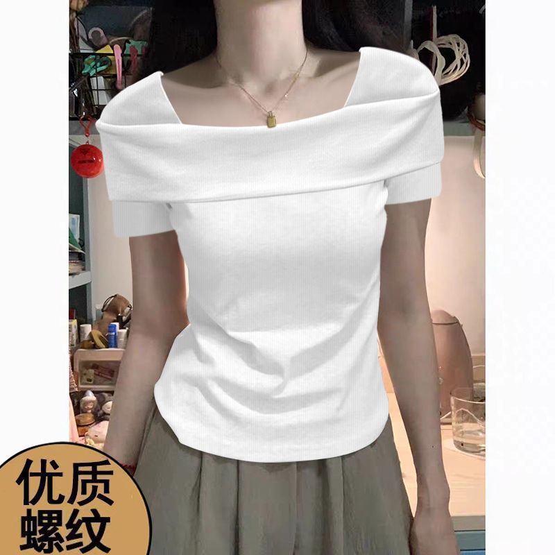 미국 스타일의 단색 고기-짧은 소매 최고 순수한 욕망 스파이스 소녀 스레드 오프-어깨베이스 셔츠 유행 슬림-적합 슬리밍스토어 가기