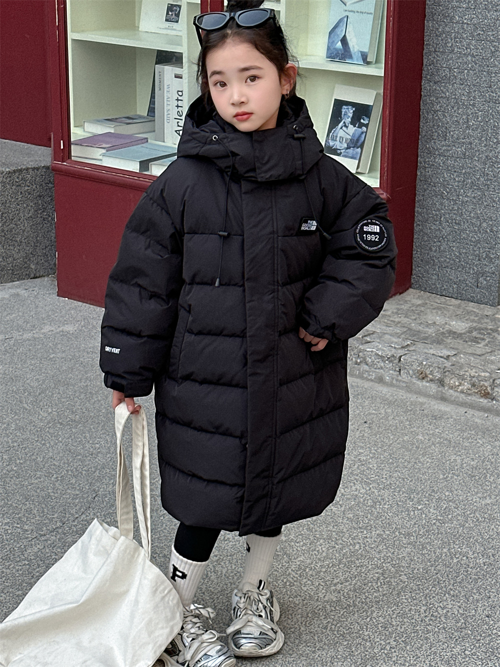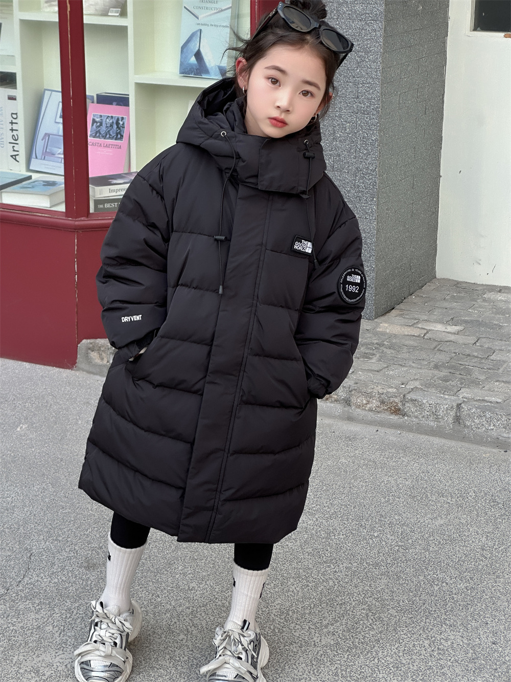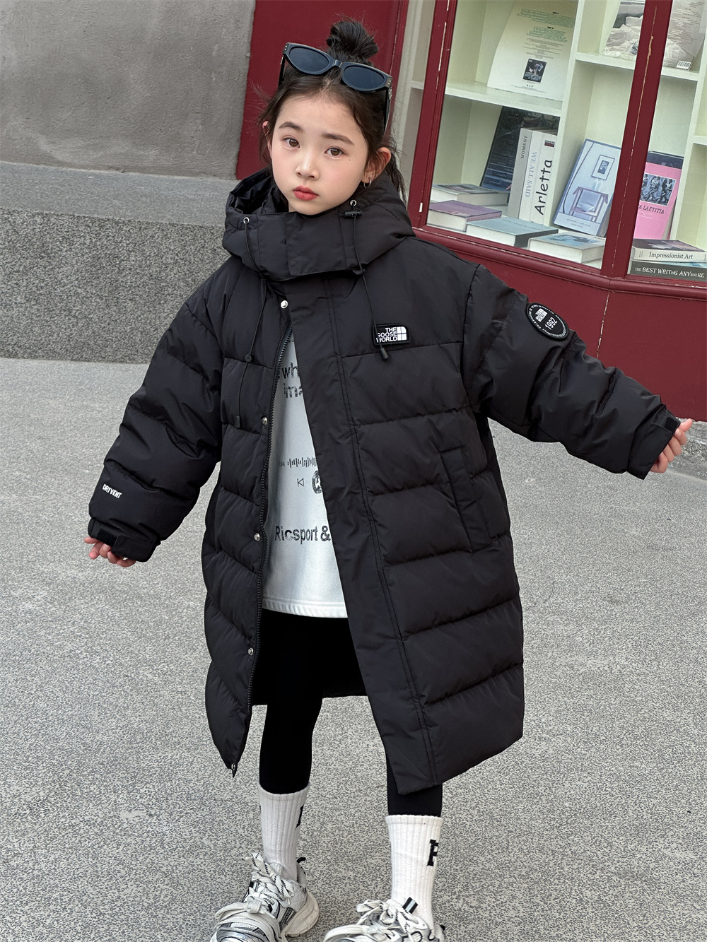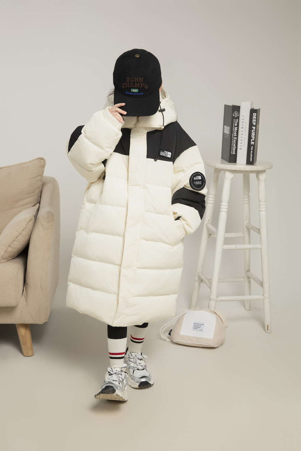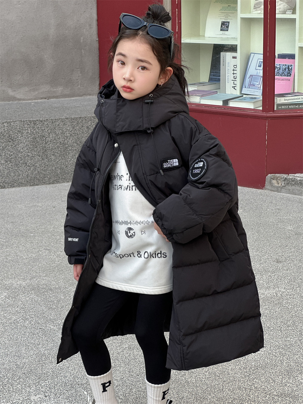 한국 스타일 파커 어린이 무릎 길이 다운 재킷 2025 소년과 소녀 작업복 두꺼운 야외 흰색 오리 다운 재킷스토어 가기