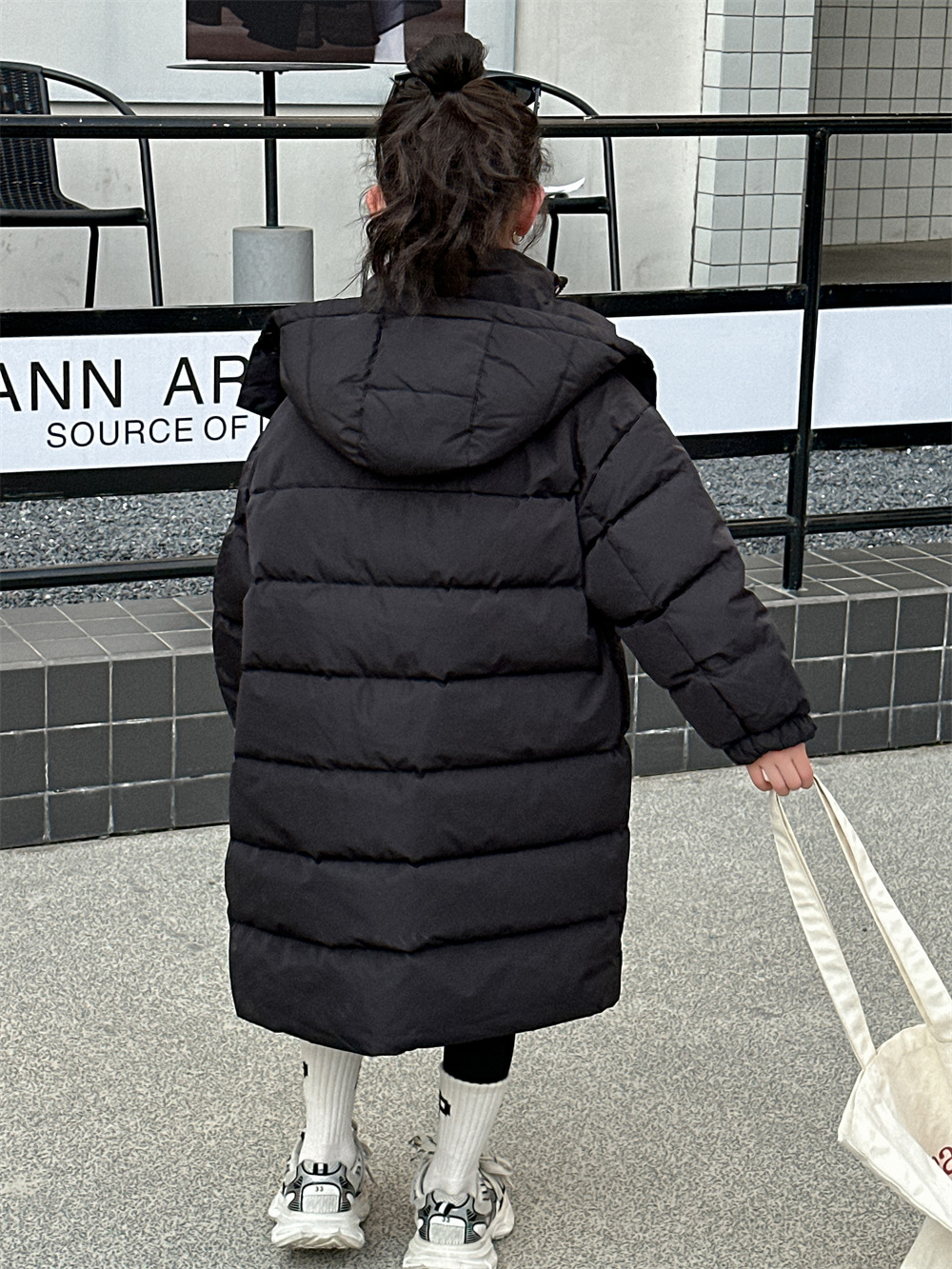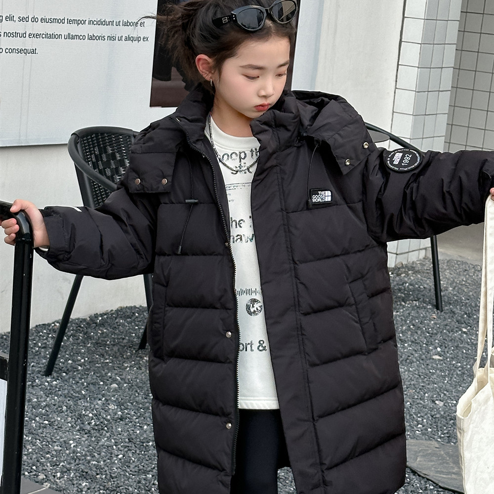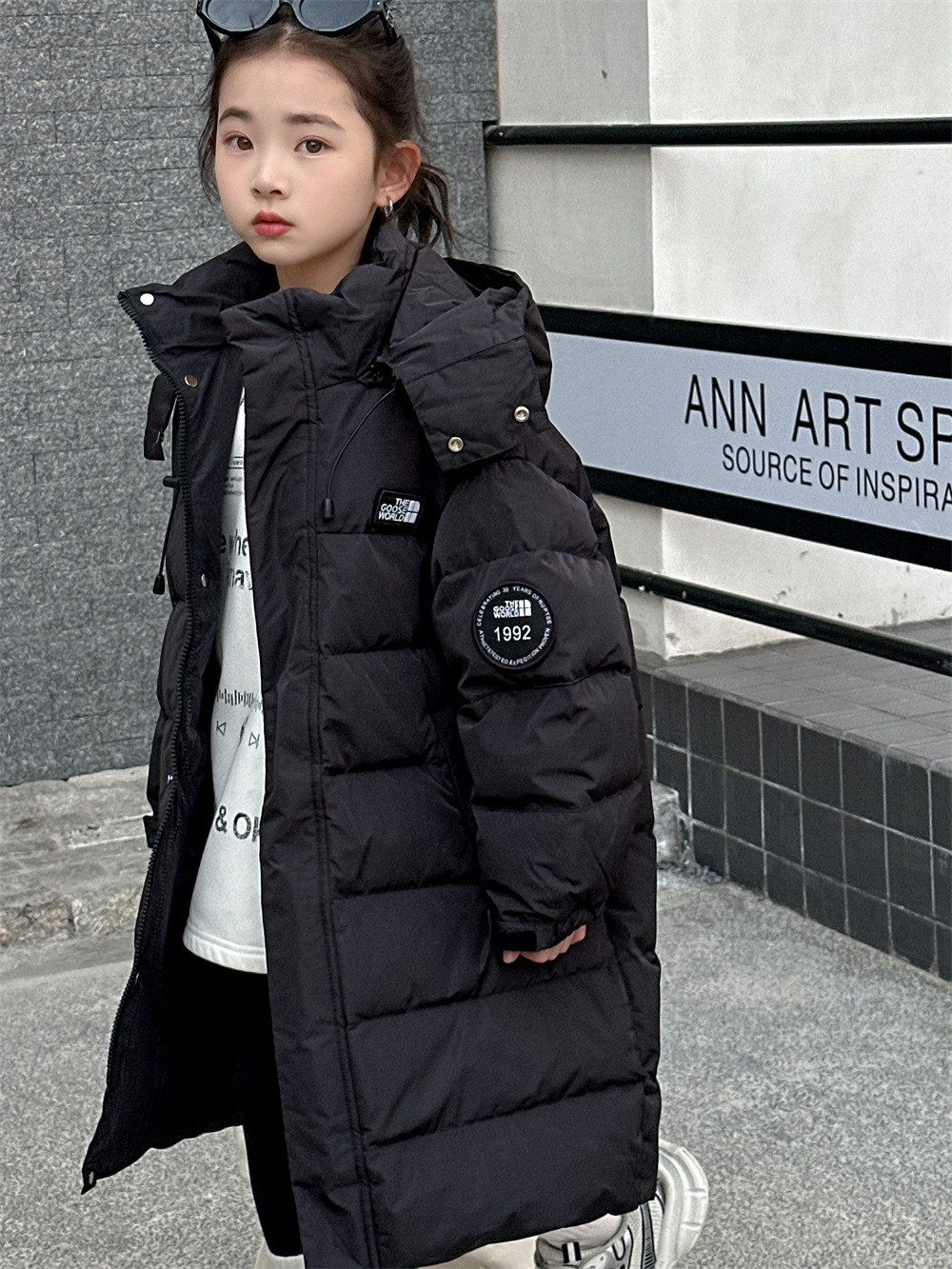 한국 스타일 파커 어린이 무릎 길이 다운 재킷 2025 소년과 소녀 작업복 두꺼운 야외 흰색 오리 다운 재킷