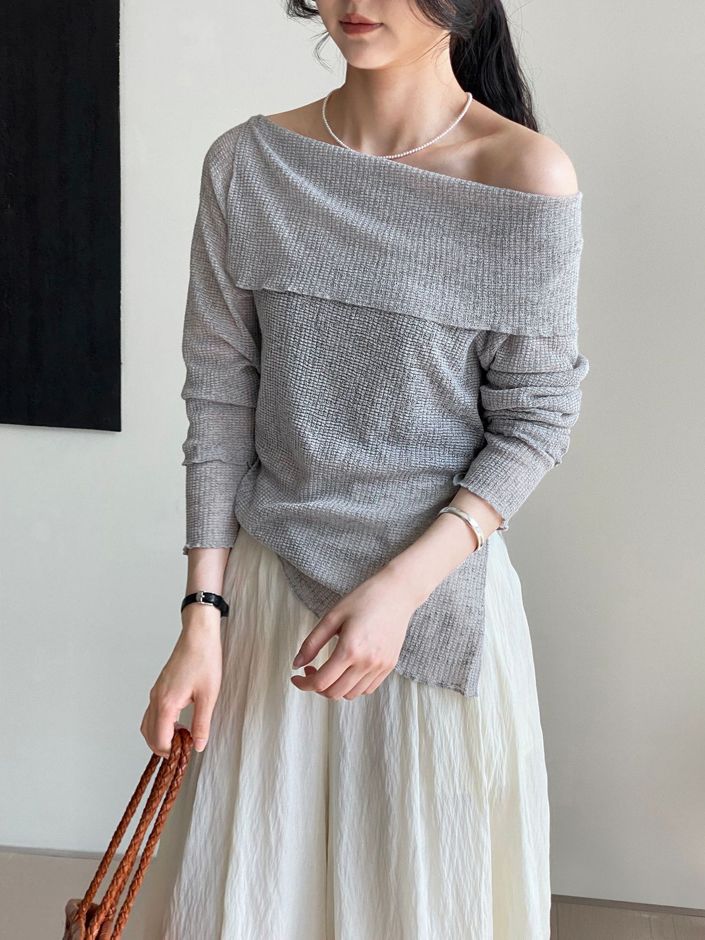 어깨 나무 귀 니트 스웨터 여성의 부드러운 오프 숄더 탑 F9051 감각을 통해 작은 셔츠 ~ 한국어 라인의 심장 끝에스토어 가기