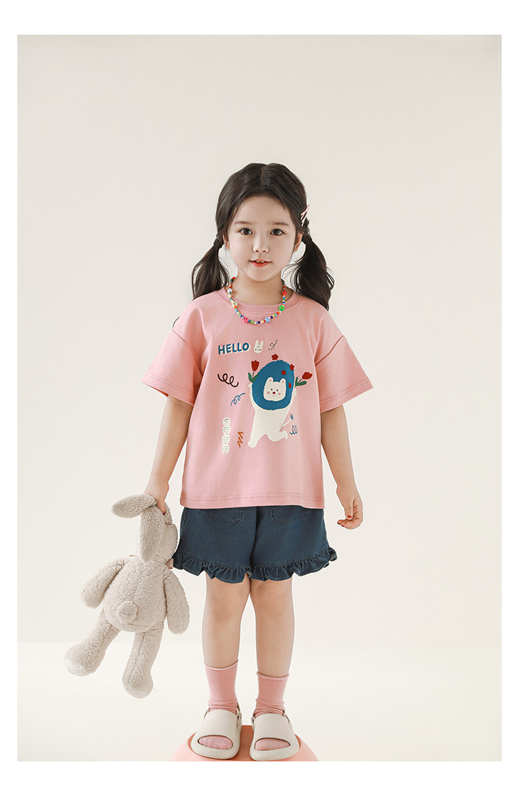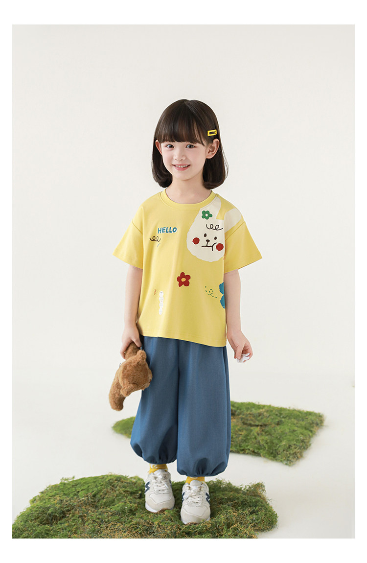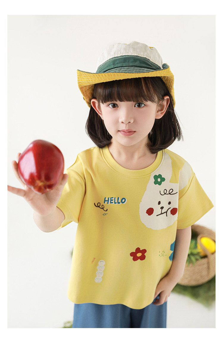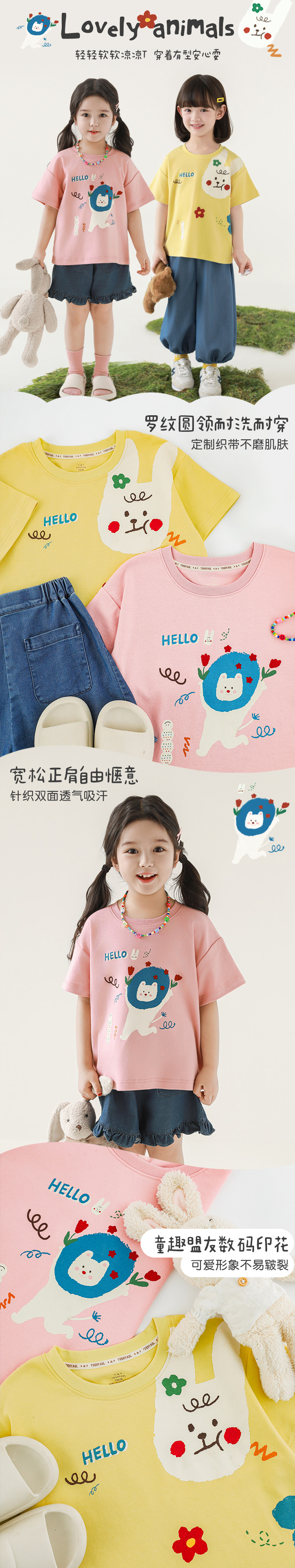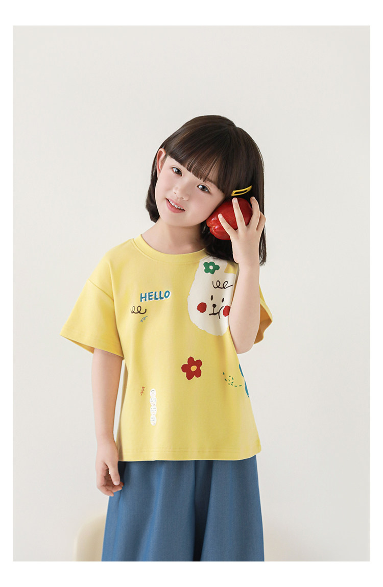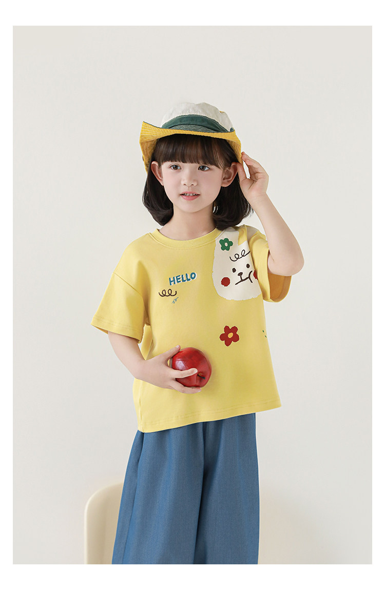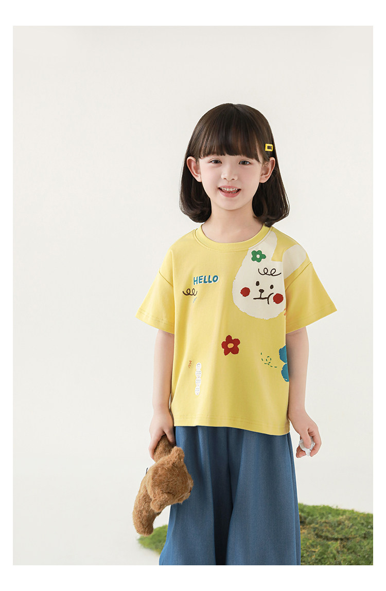 Wulibuyi 소녀의 귀엽고 귀여운 프린트 반팔 티셔츠 여름 어린이 부드럽고 통기성이 뛰어나며 루즈한 캐주얼 티셔츠