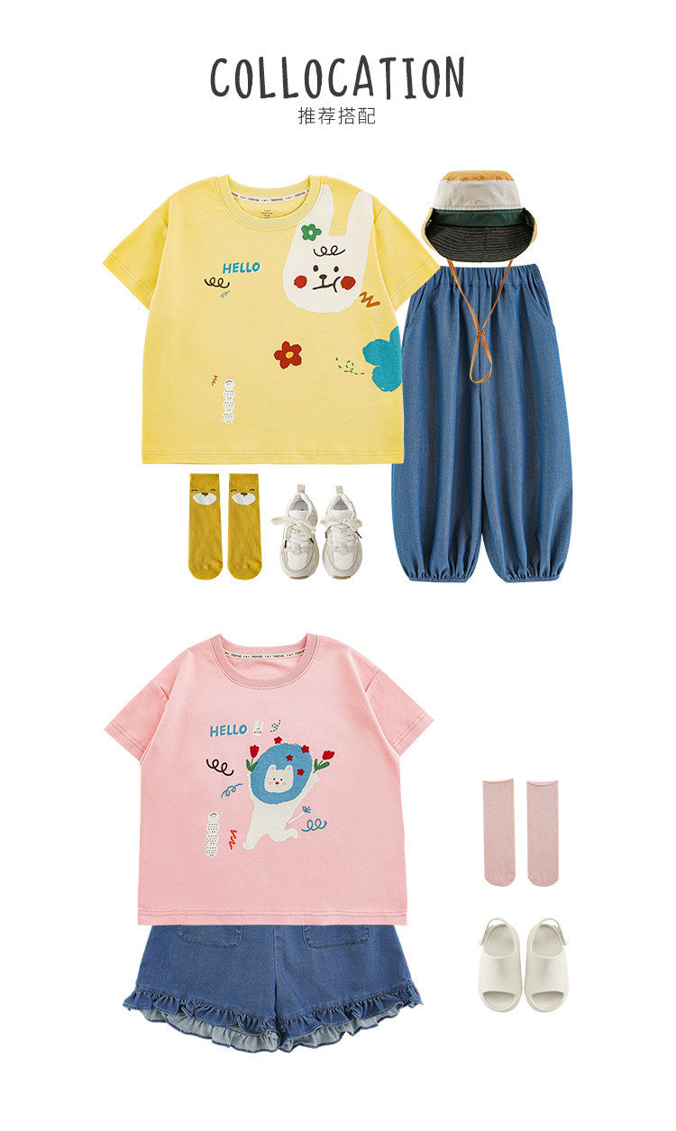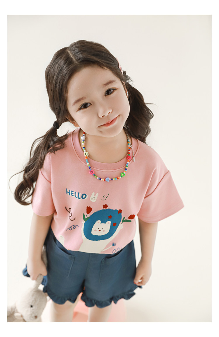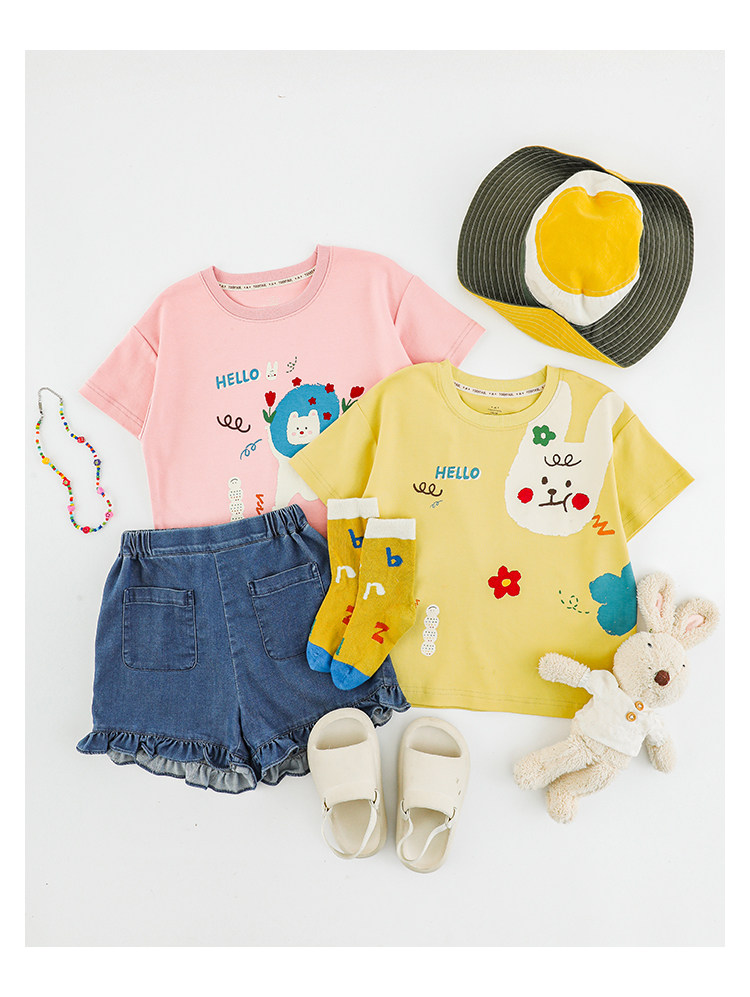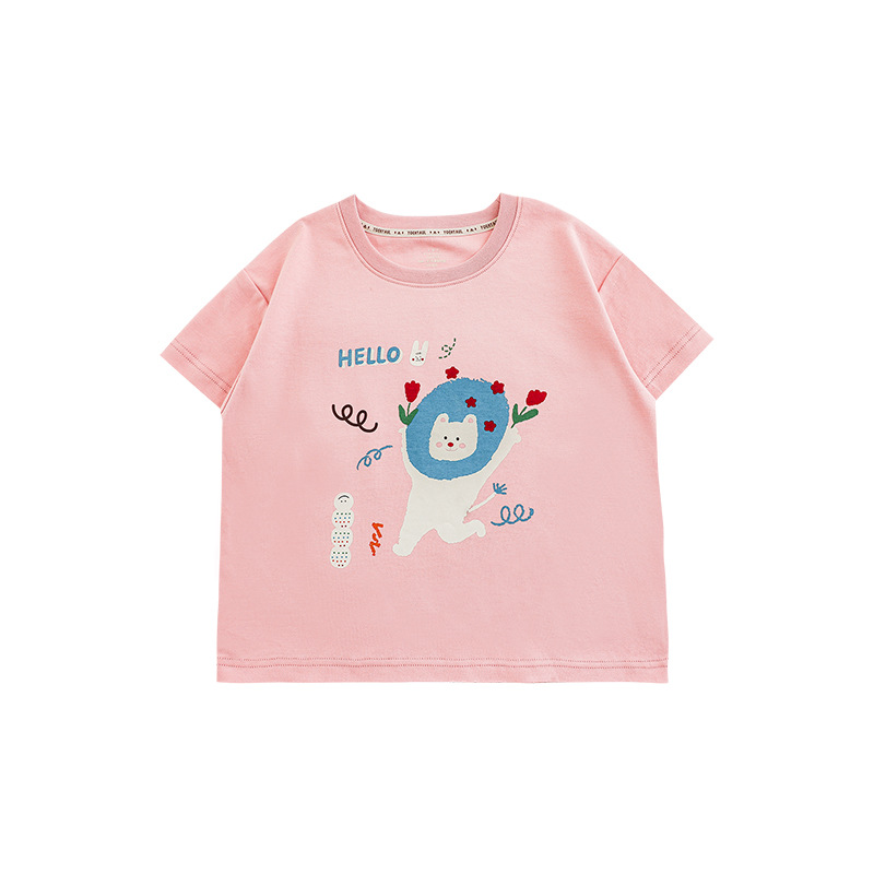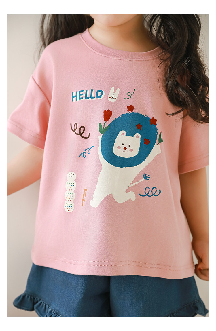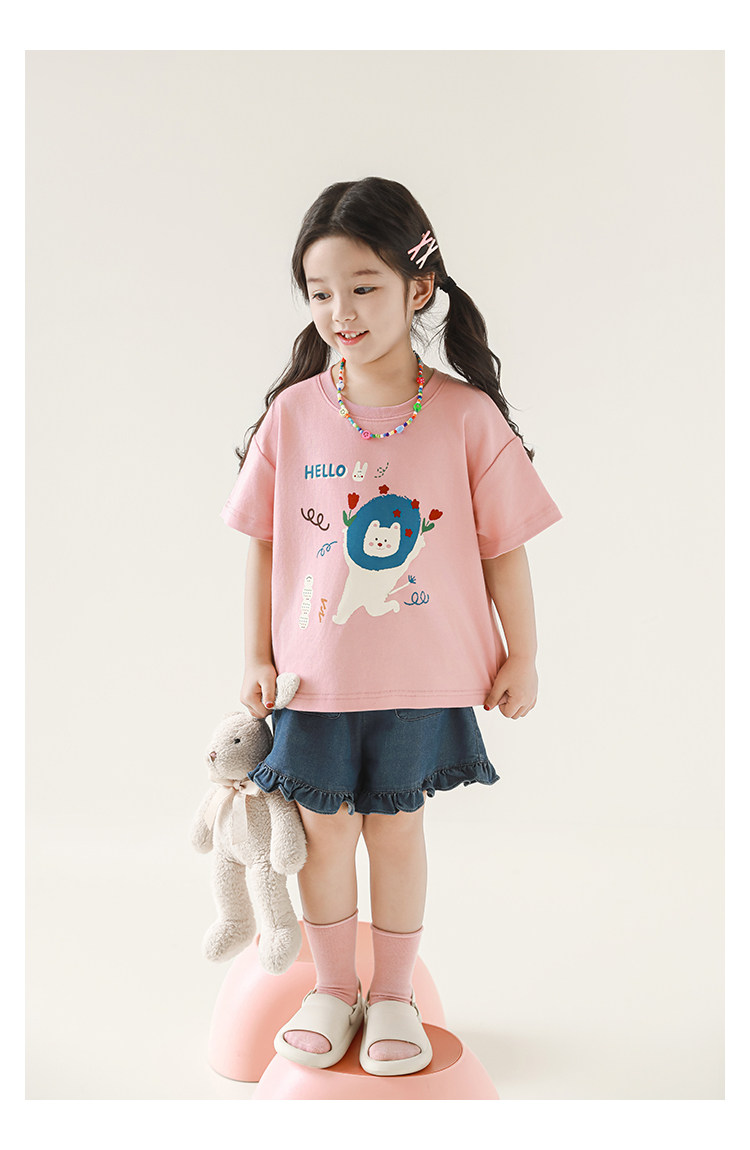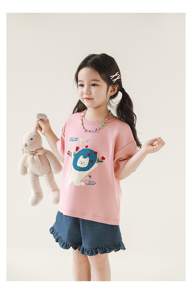 Wulibuyi 소녀의 귀엽고 귀여운 프린트 반팔 티셔츠 여름 어린이 부드럽고 통기성이 뛰어나며 루즈한 캐주얼 티셔츠
