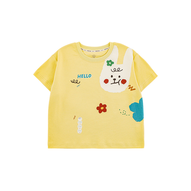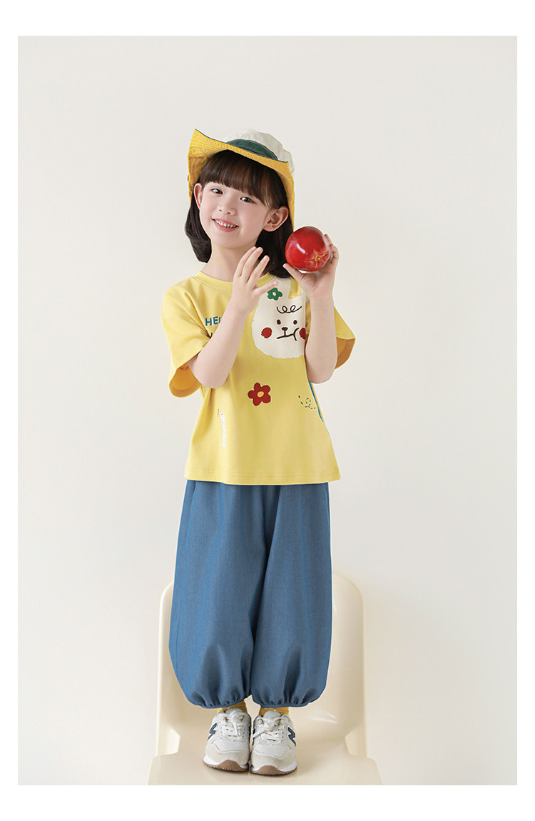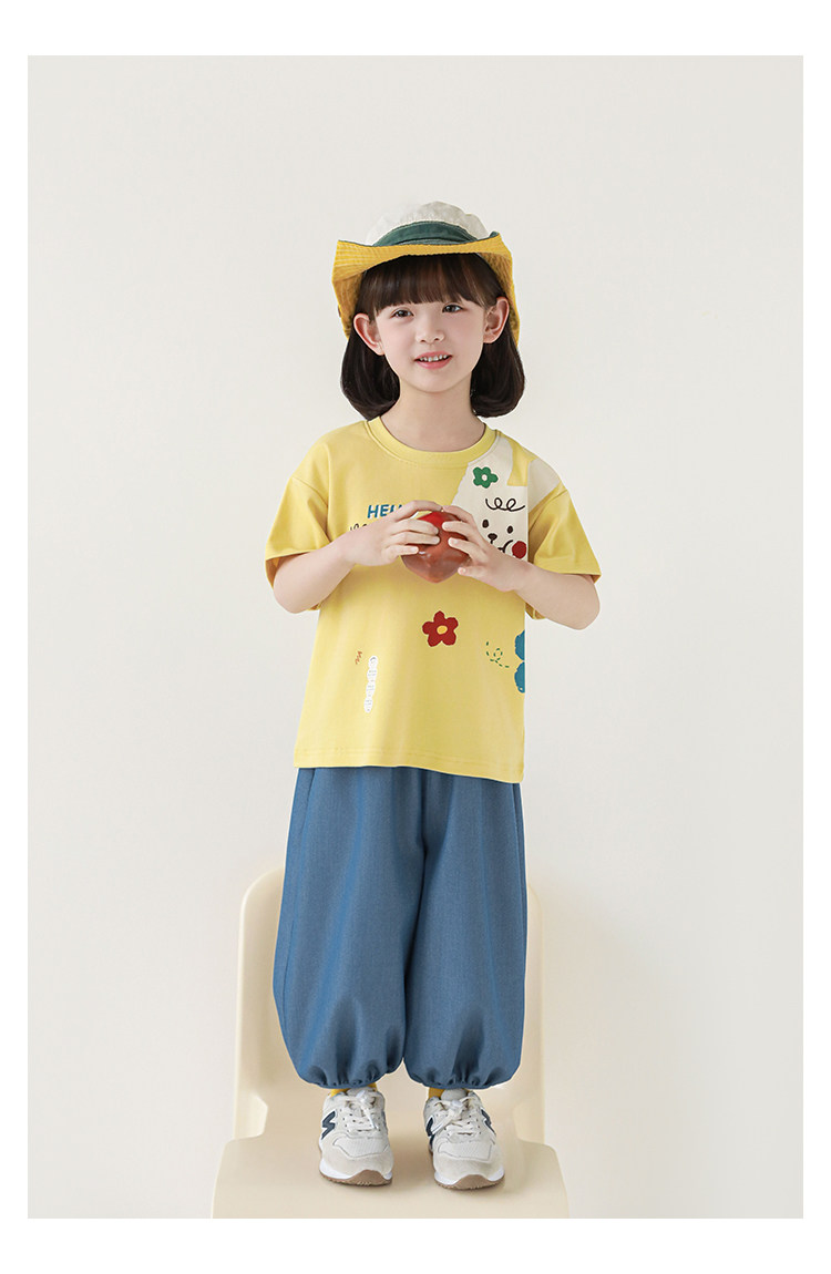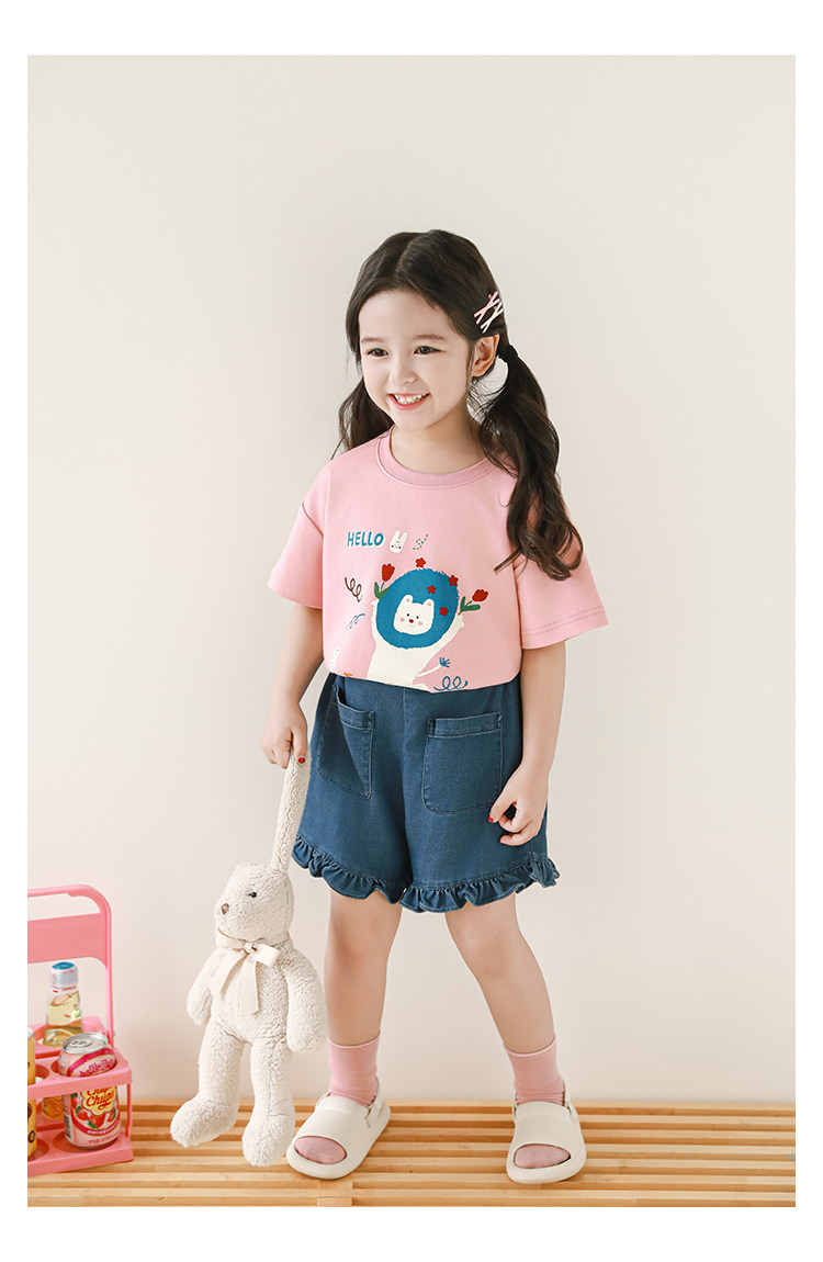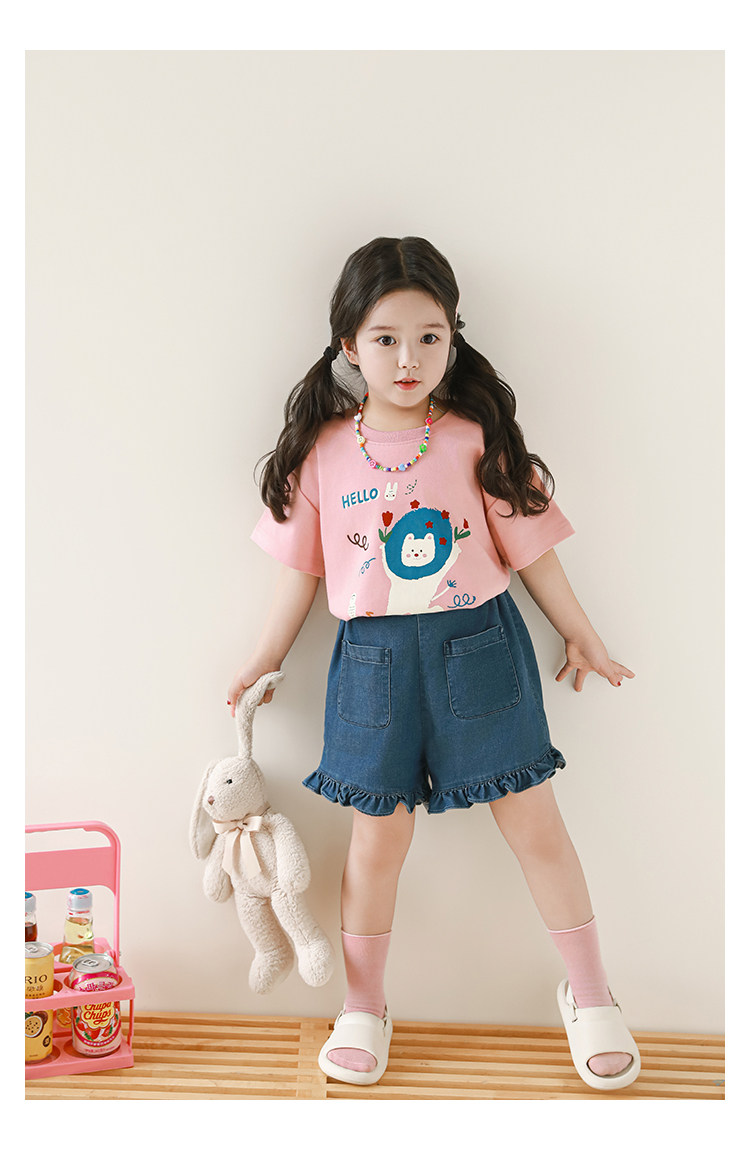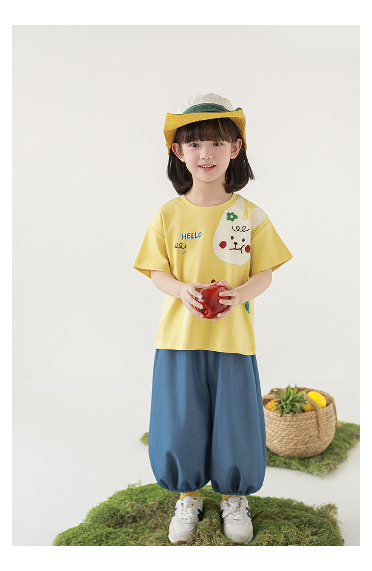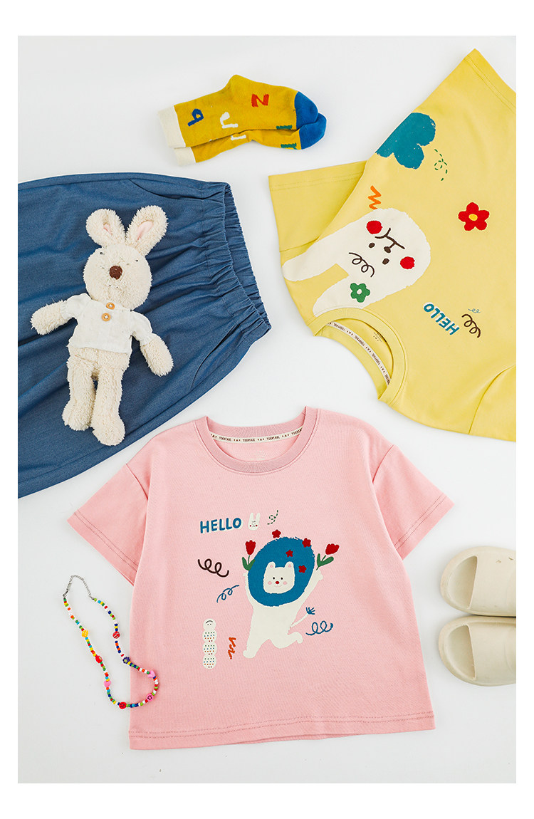 Wulibuyi 소녀의 귀엽고 귀여운 프린트 반팔 티셔츠 여름 어린이 부드럽고 통기성이 뛰어나며 루즈한 캐주얼 티셔츠
