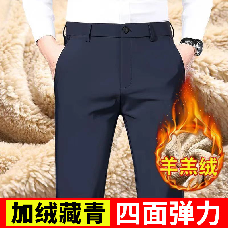 가을 겨울 아빠용 두꺼운 기모 남성 바지 고탄력 스트레이트 루즈핏 따뜻한 신상 남성 캐주얼 바지스토어 가기