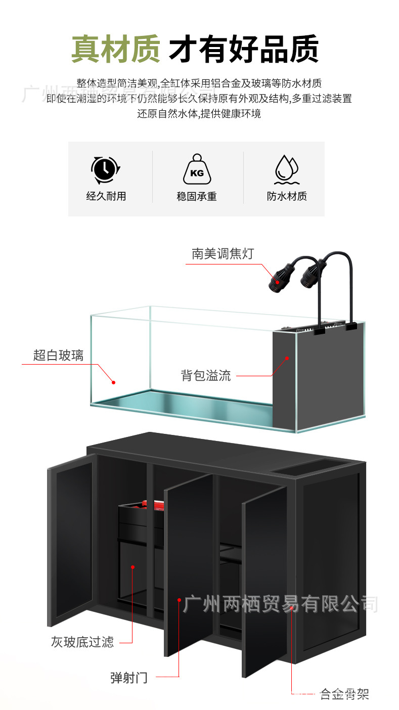 스트림 탱크 울트라 화이트 유리 알루미늄 합금 바닥 여과 순환 원래 야생 광산 생태 조경 특수 어항 대형