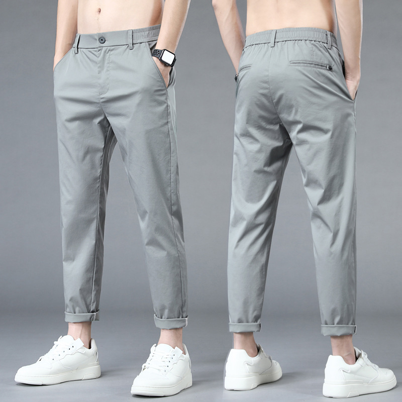 아이스 실크 캐주얼 바지 남자 여름 얇은 스포츠 소년 작은 바지 스트레이트 느슨한 남자 자른 바지 여름스토어 가기