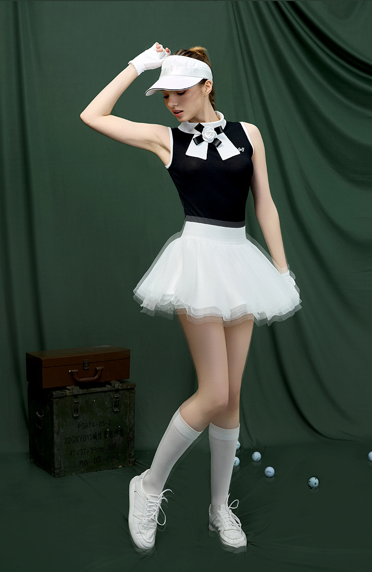 MG 골프 의류 여성 정장 한국 스타일 골프 반팔 탄성 골프 노출 방지 테니스 거즈 스커트