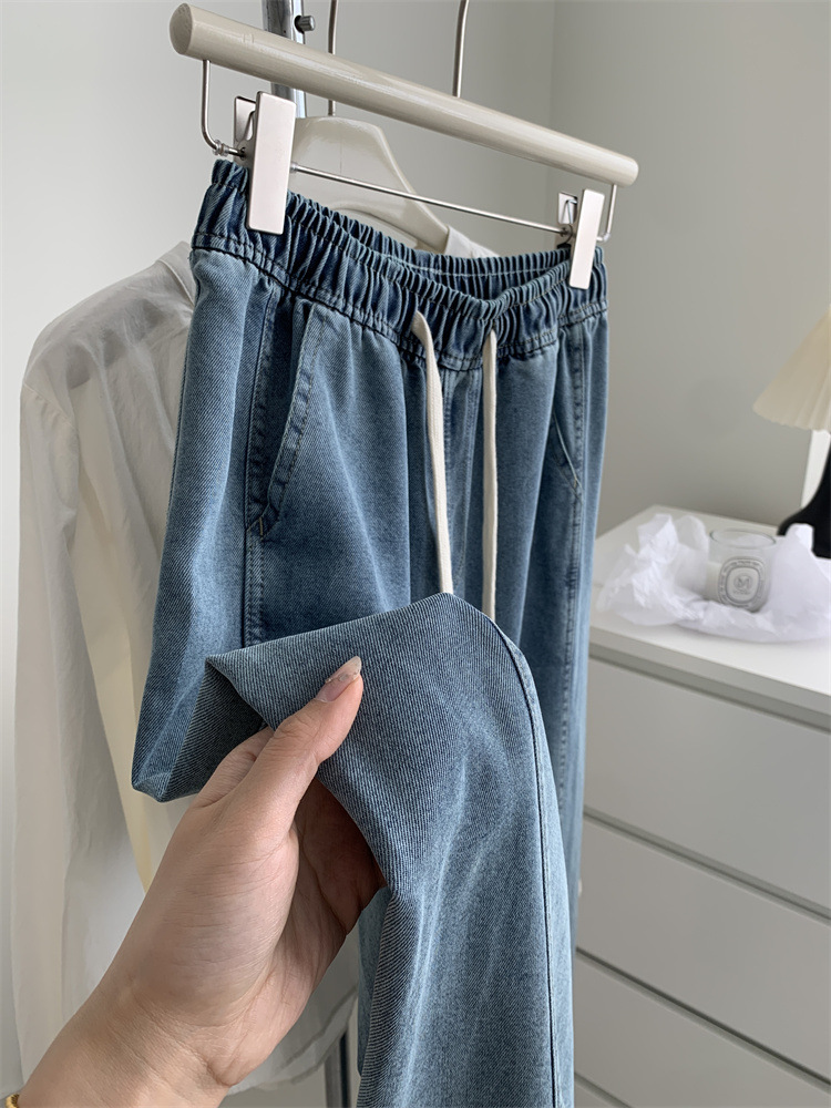슬림 가랑이 커버 ~ Lyocell 세탁 스트레이트 청바지 여성 봄과 여름 높은 허리 느슨한 드로 스트링 걸레 바지
